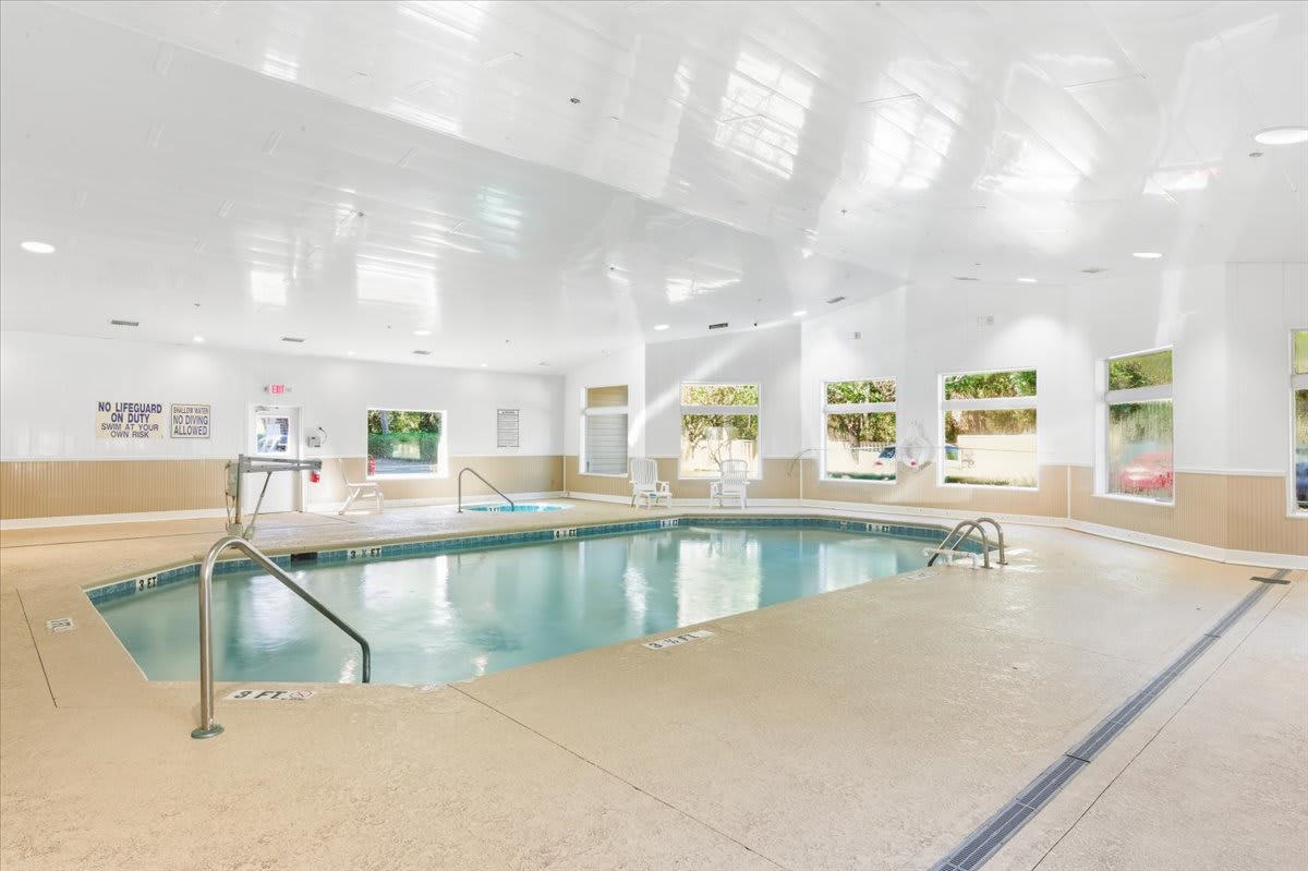 • Community amenities: indoor and outdoor pools, hot tub, sauna, gym, tennis courts, BBQ area
