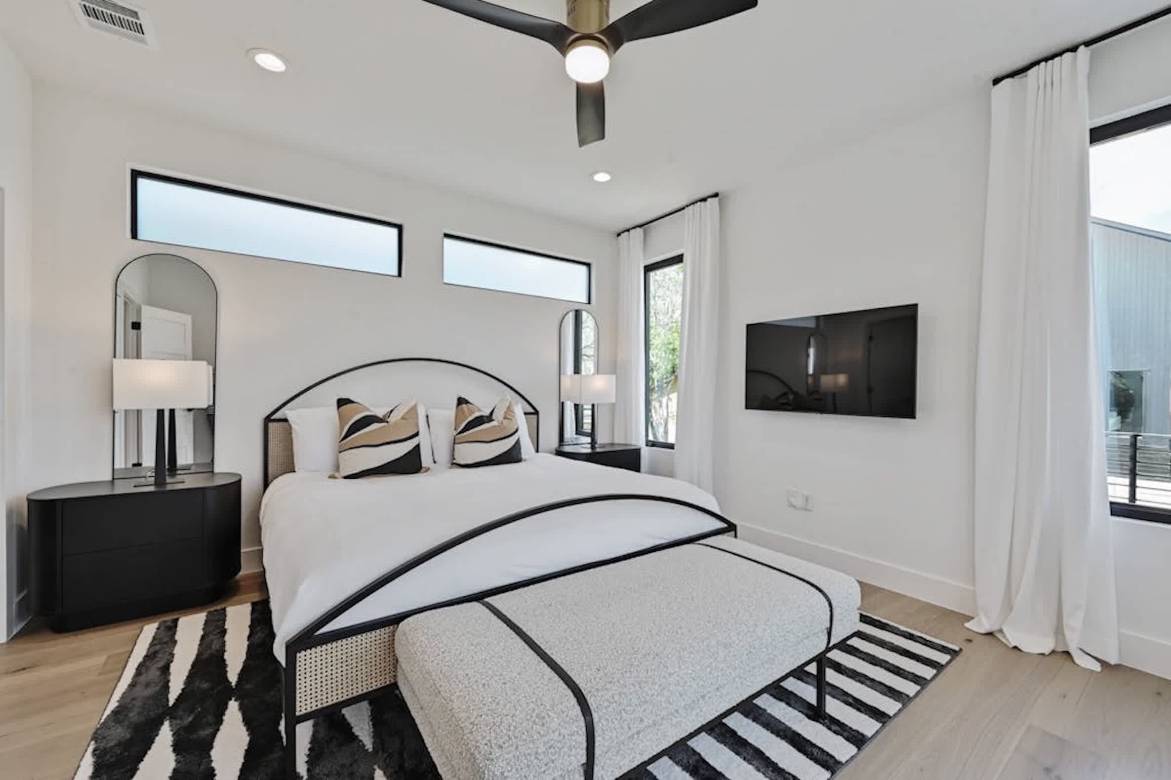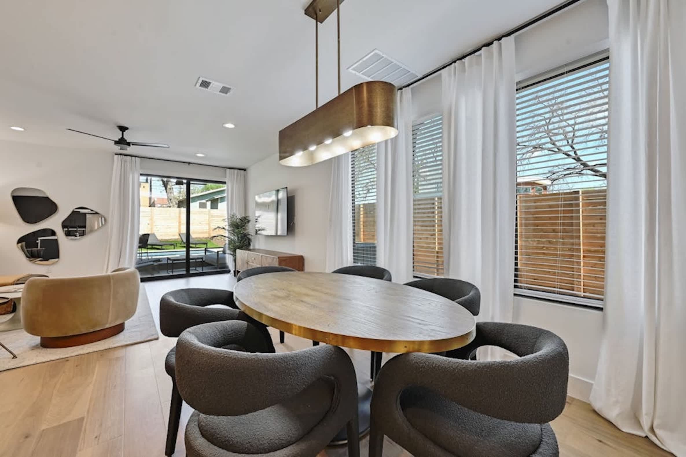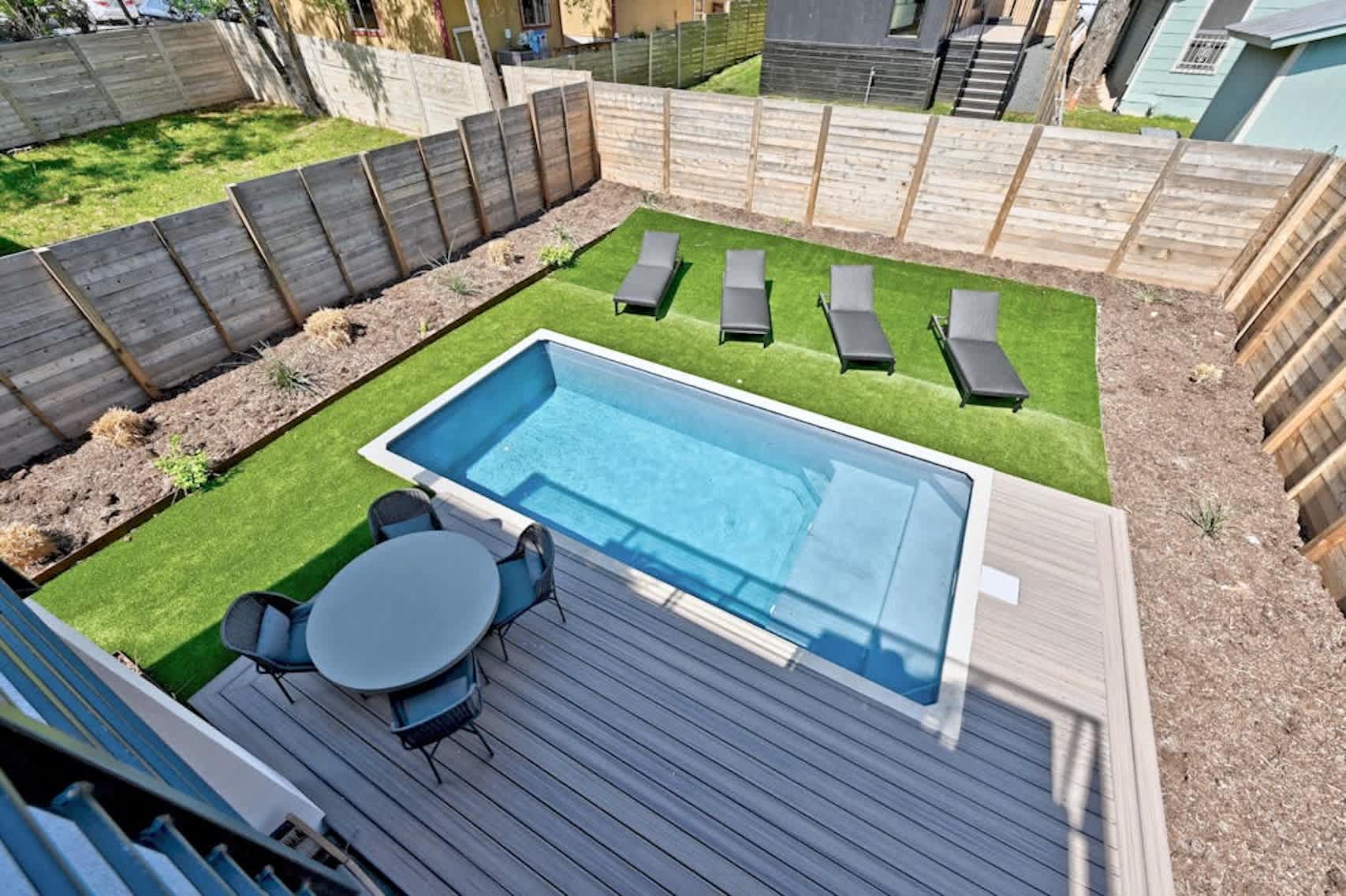 Welcome to Chic Austin Oasis! This modern 5-bedroom townhouse sleeps up to 11 and puts you minutes from local restaurants, live music, and iconic Austin landmarks—plus a private 4-ft pool and a rooftop patio with city views.