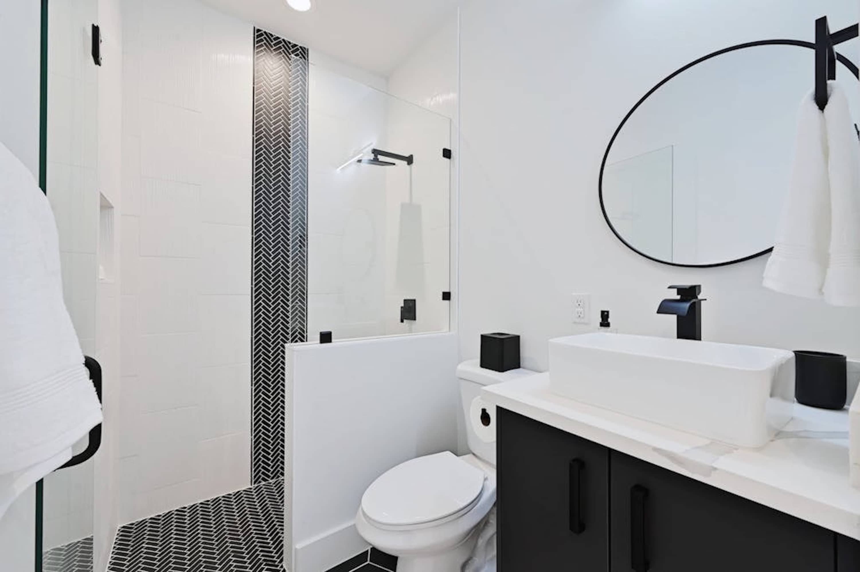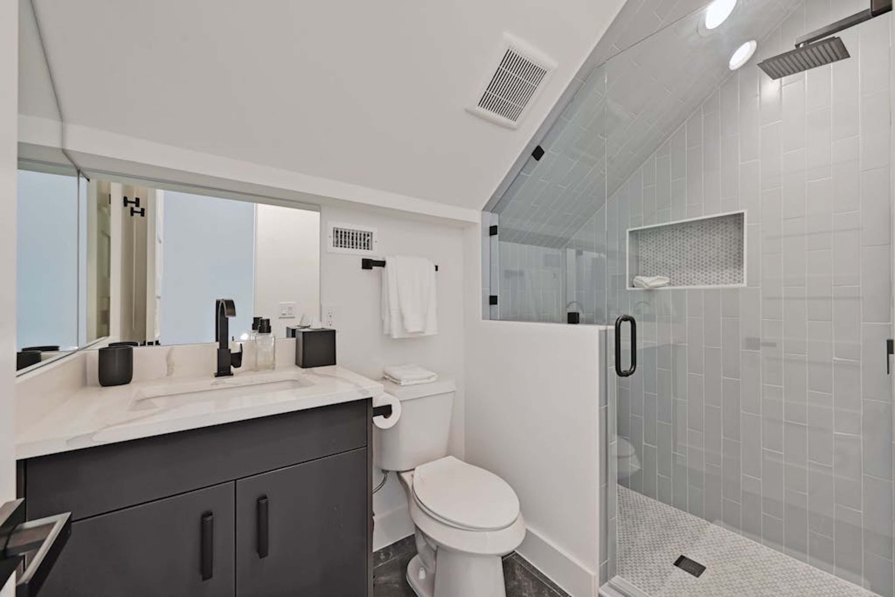 • Shared Bathroom 1 (1st floor): Walk-in shower