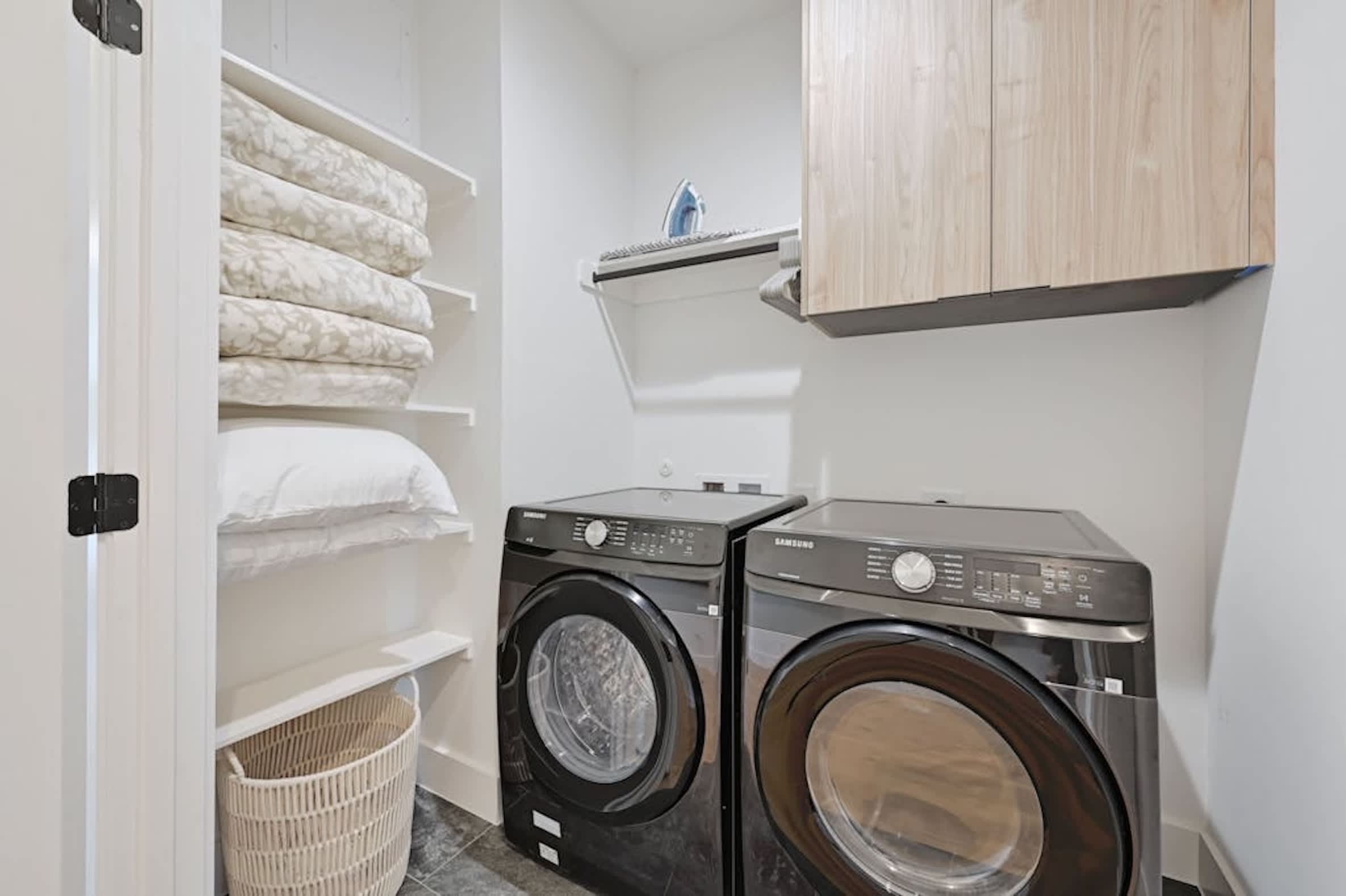 • Full kitchen with basic cookware and serveware, Keurig coffee maker, and pantry