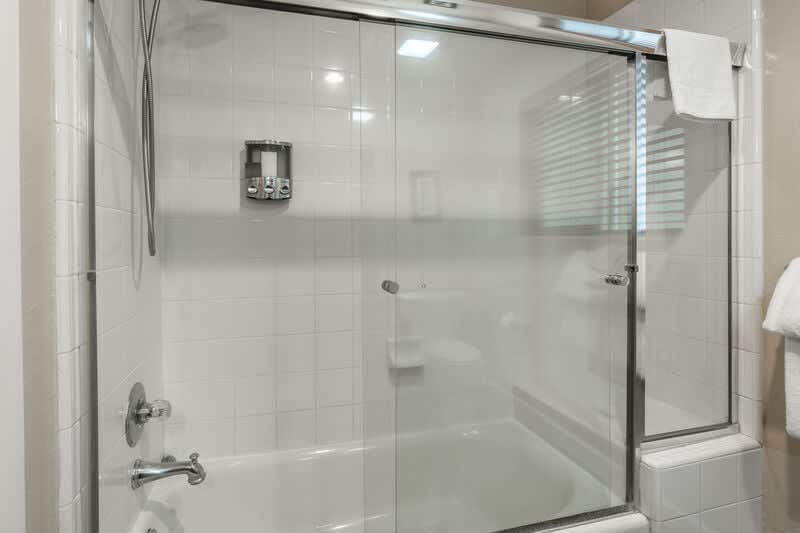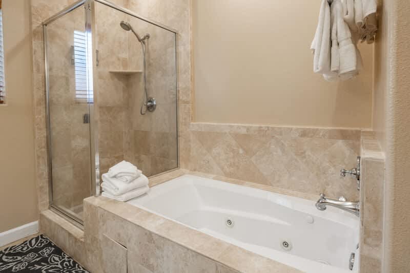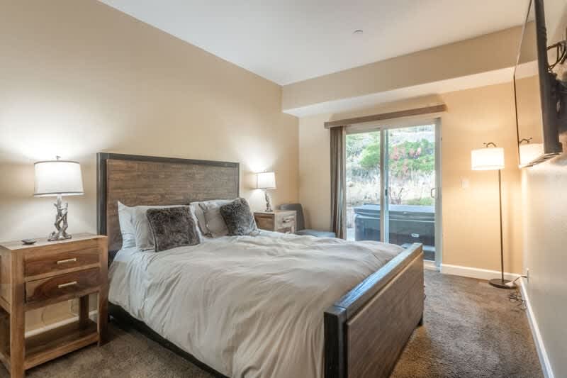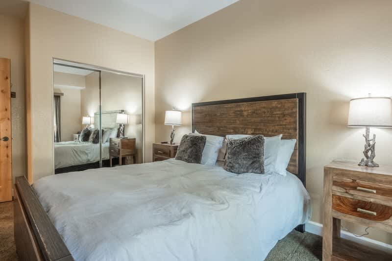• Bedroom 1: King bed; sleeps 2; ensuite full bathroom