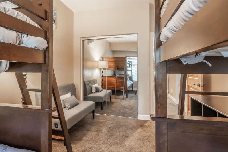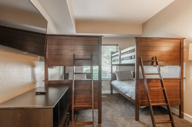 • Bedroom 2: Two bunk beds (4 twin beds total); sleeps 4