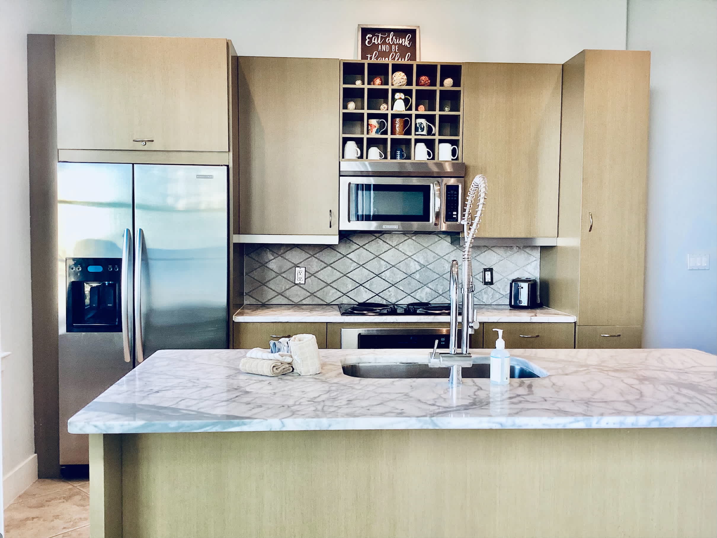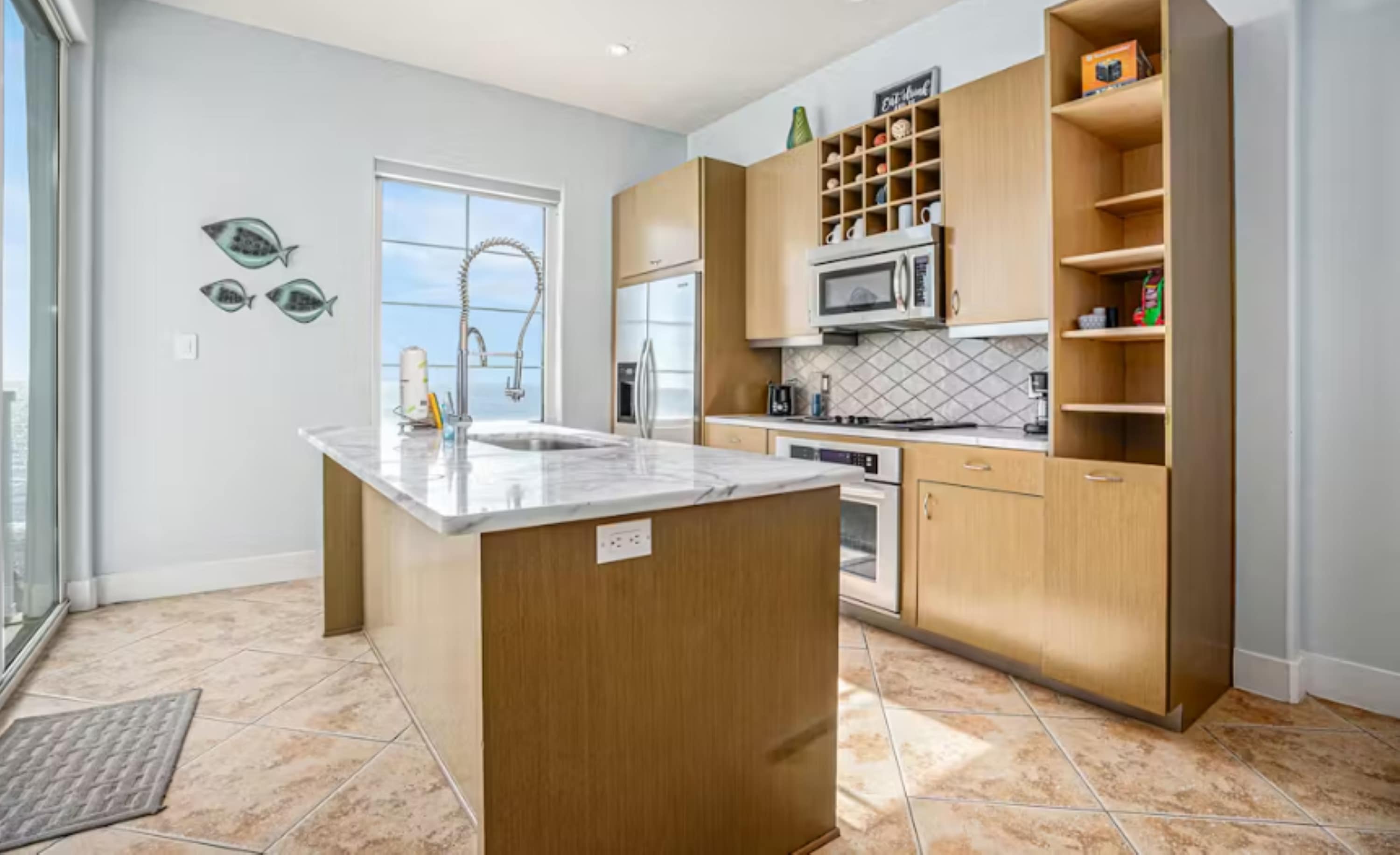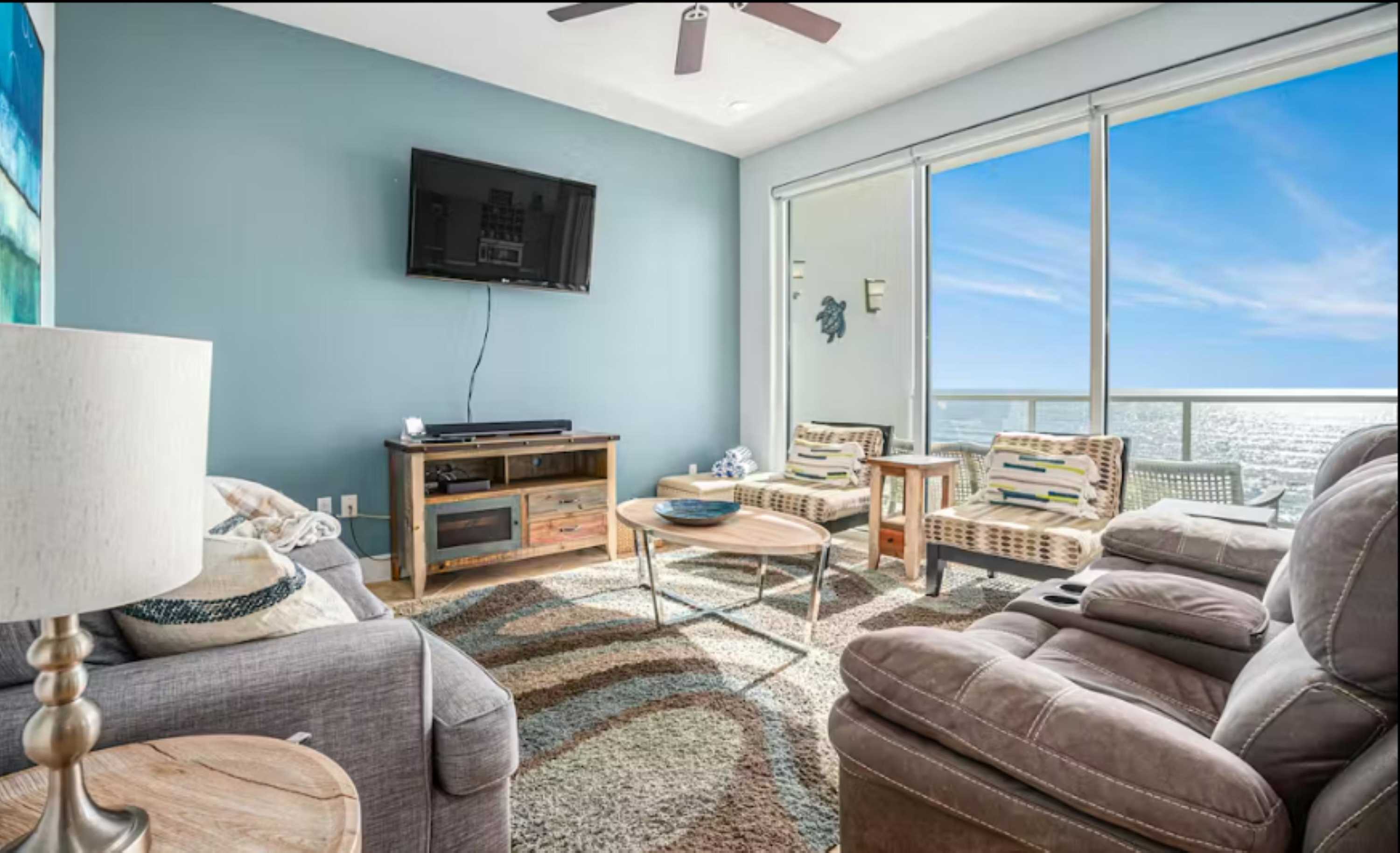 Step inside and be immediately drawn to the expansive glass windows and patio doors, perfectly positioned to showcase incredible oceanfront views throughout the living space. The living room is designed for comfort, featuring a couch, dual recliners, two chairs, and a TV—ideal for relaxing after a day in the sun. The beautiful open-concept kitchen feels sleek yet warm, fully equipped with everything you need, including a Keurig coffee maker, and offers sweeping views of the ocean and resort pool as you cook or gather with loved ones. Just steps away, the dining table for six creates a welcoming space for shared meals, game nights, or planning the next day’s adventures.
