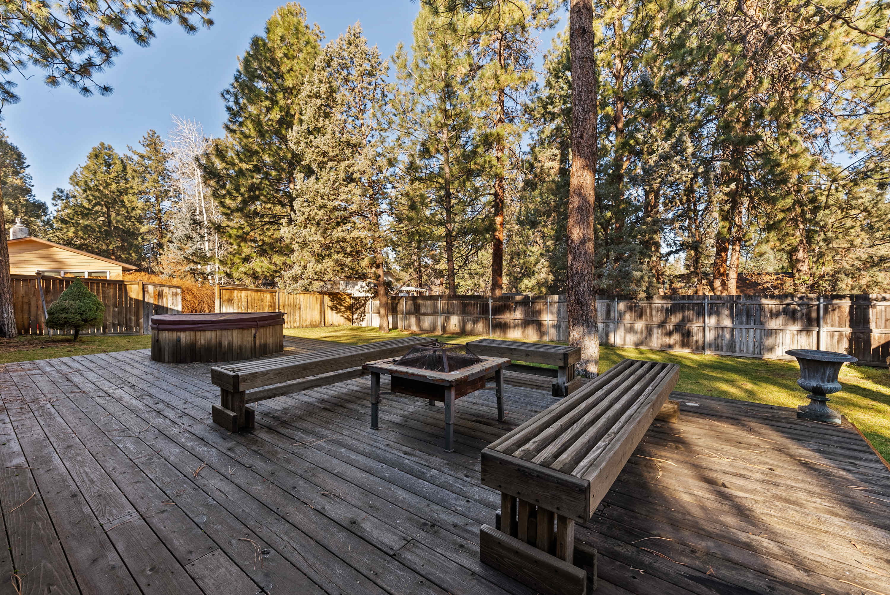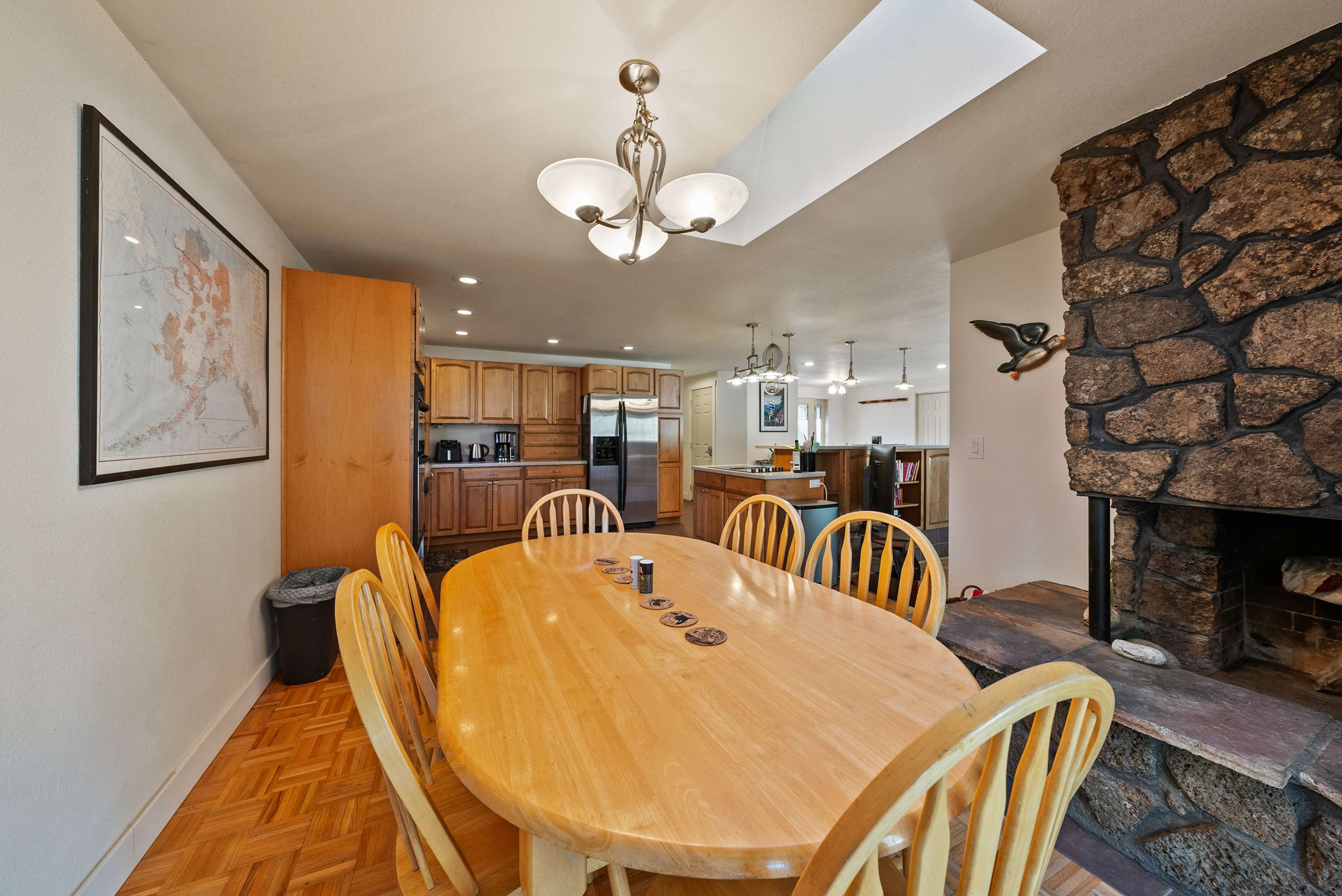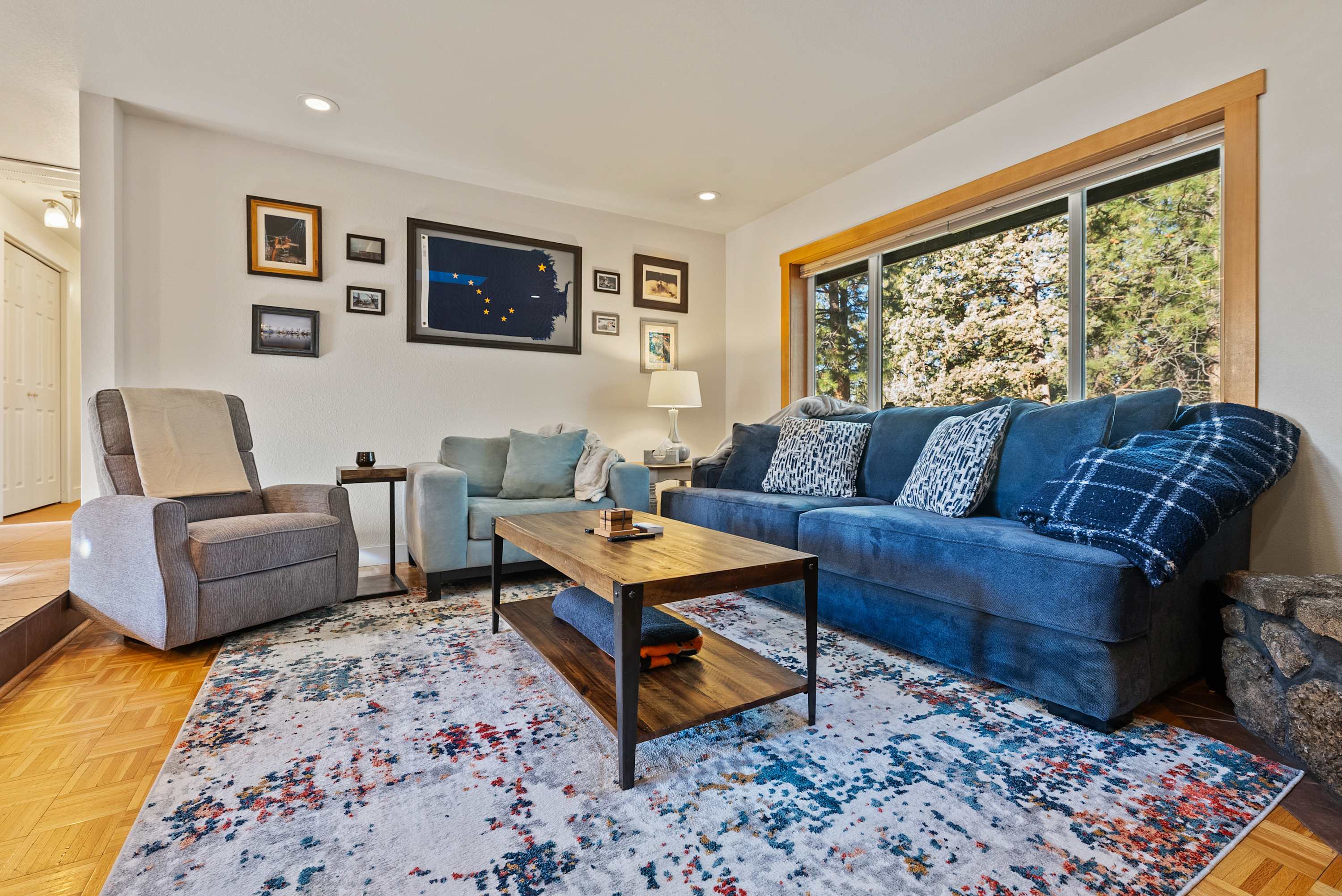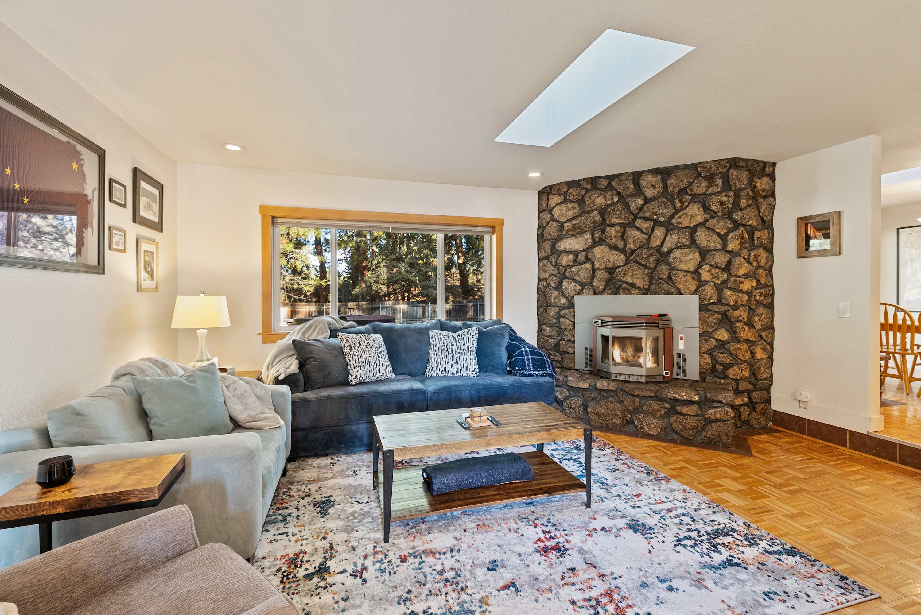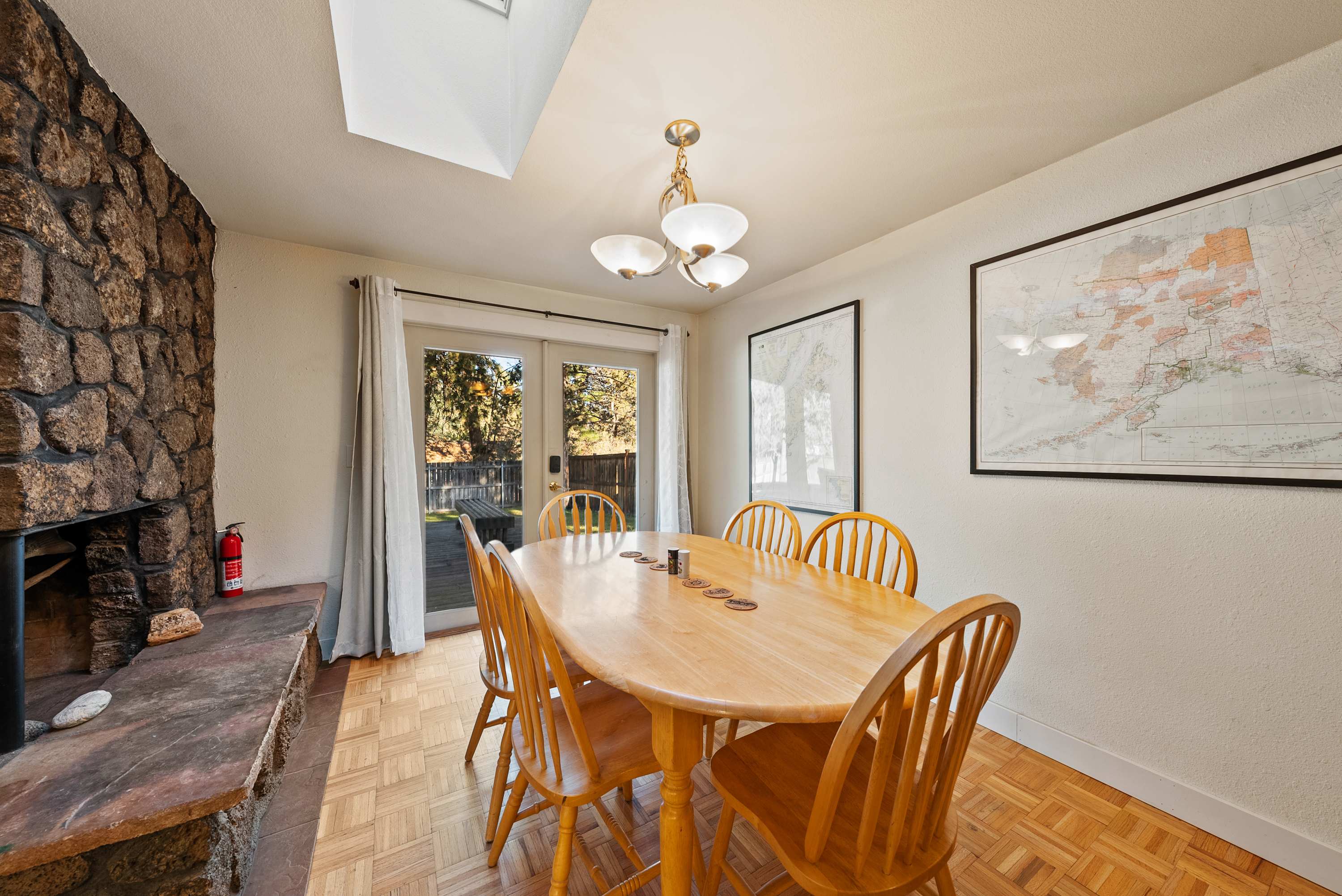 Inside, the home welcomes you with warmth and comfort designed for everyday living. The living room is the heart of the space, featuring plenty of comfortable seating, a smart TV, and an indoor fireplace that’s perfect for cool evenings or relaxed nights in. The kitchen flows seamlessly into the living area, making it easy to cook, entertain, or simply enjoy your daily routine, with warm cabinetry, stainless steel appliances, and counter seating for four. A dining table for six provides plenty of space for shared meals, work-from-home flexibility, or hosting friends. Step outside onto the deck to enjoy your morning coffee or unwind after the day with the grill and firepit surrounded by bench seating—an inviting outdoor extension of the home. Comfortable, well-equipped, and thoughtfully laid out, Kodiak Clubhouse offers everything you need to truly settle in and enjoy Bend for the long haul.