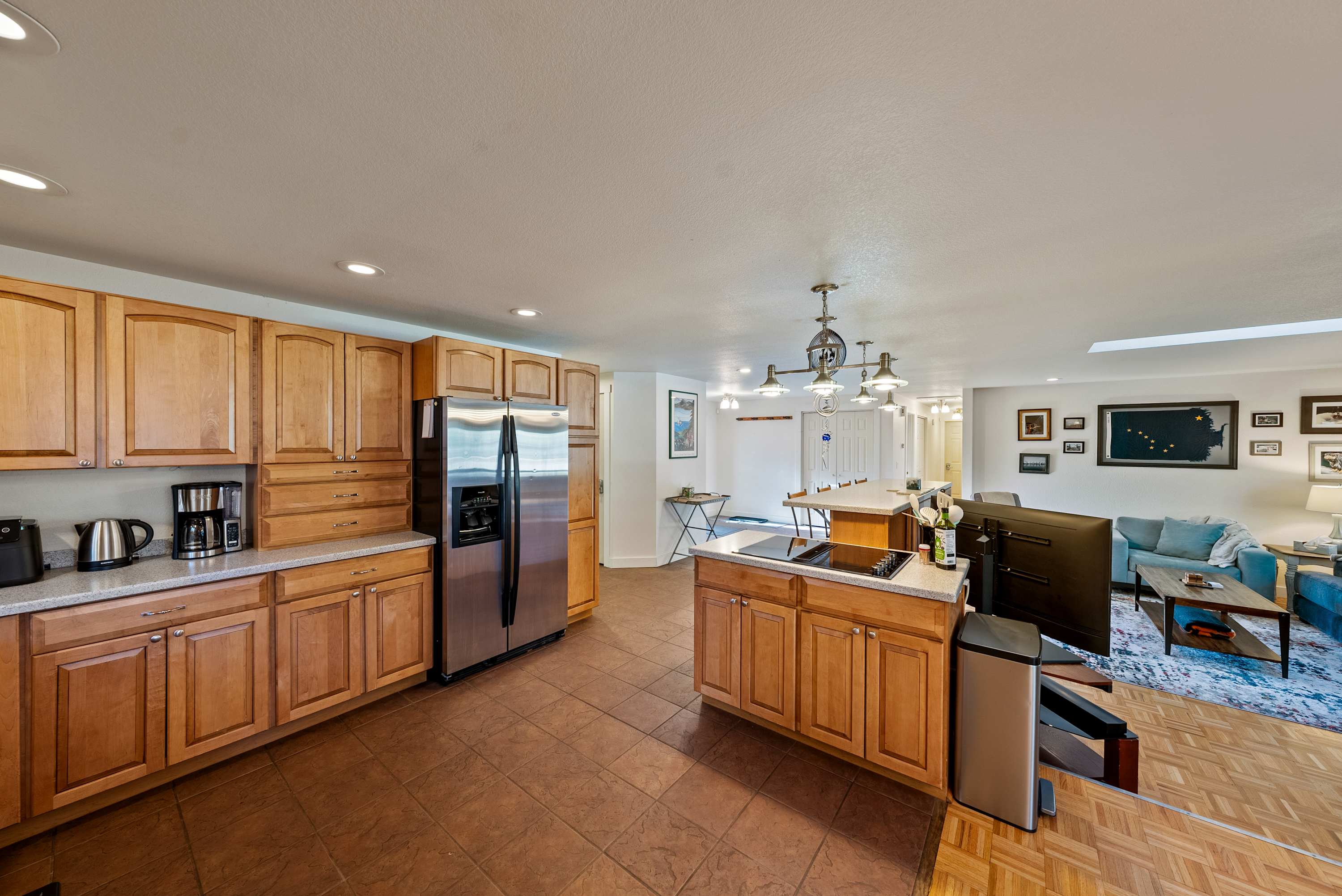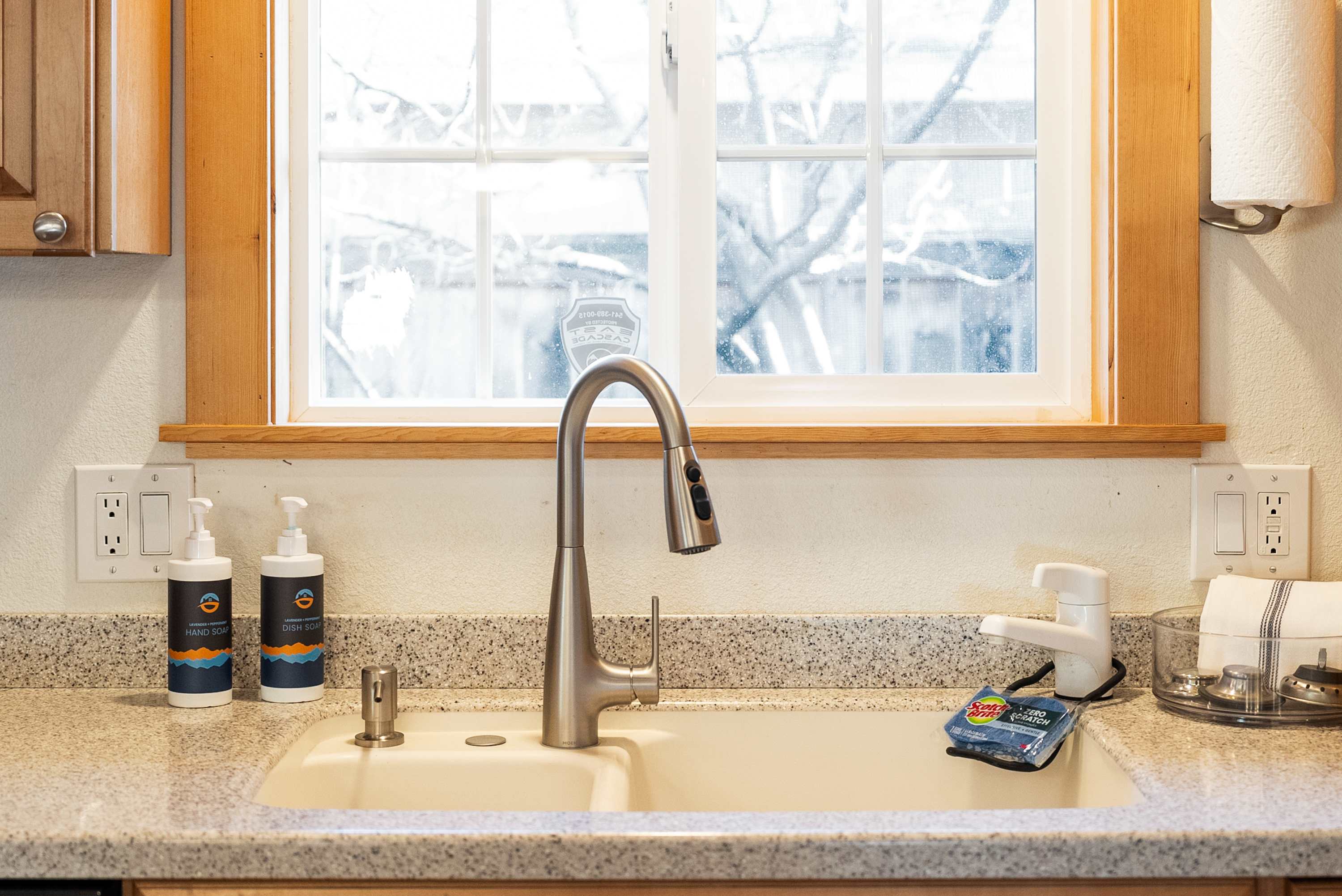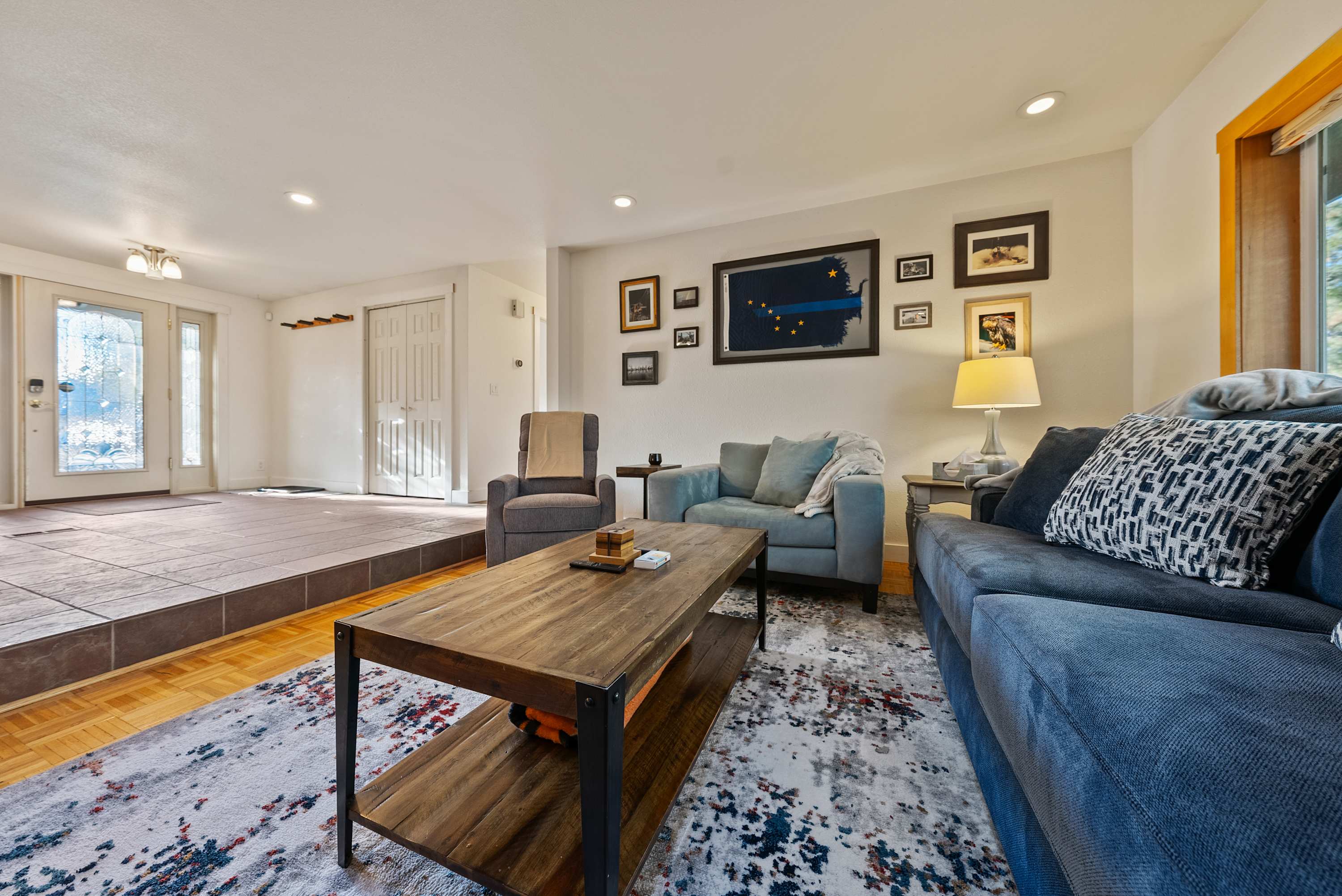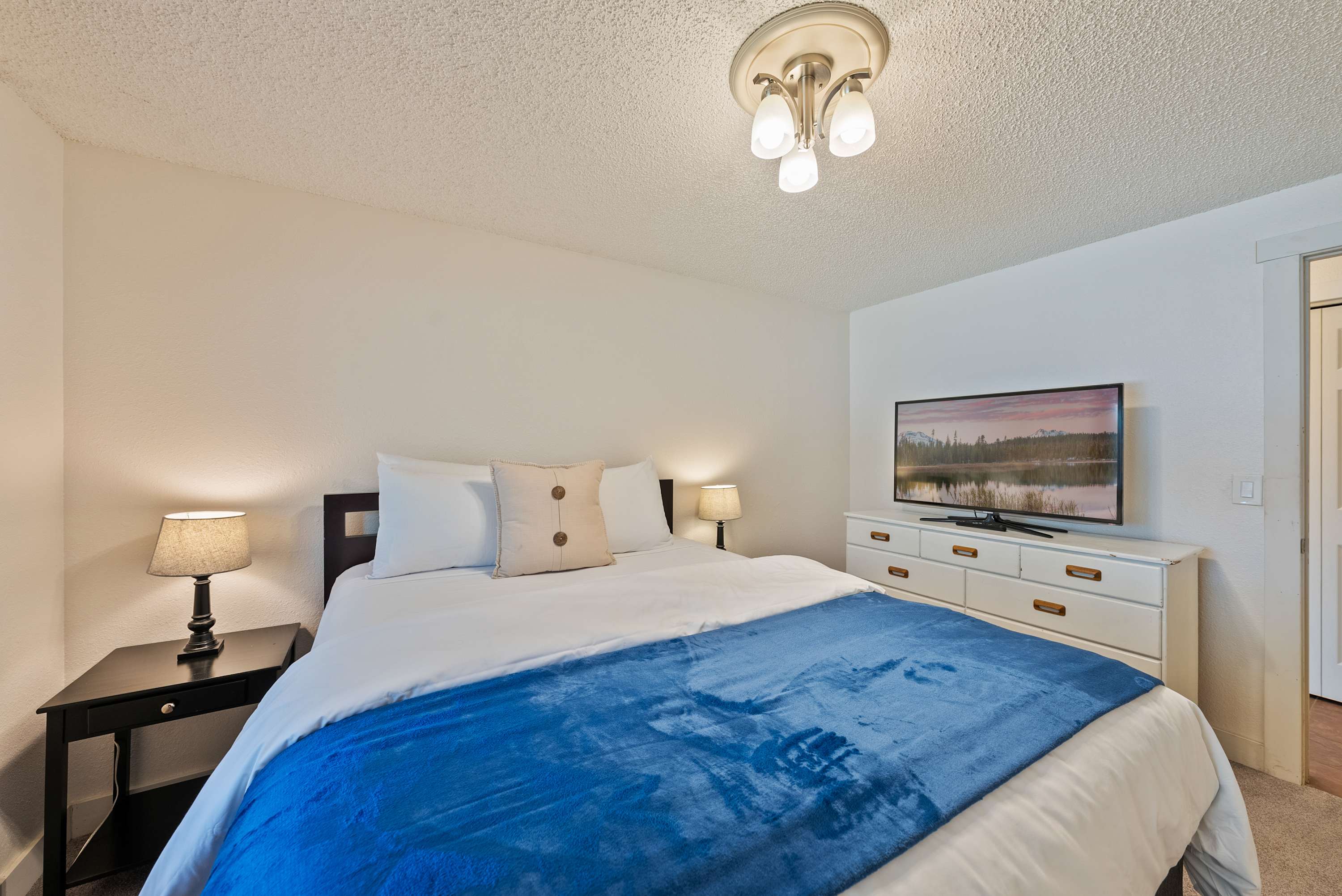 Inside, the home welcomes you with warmth and comfort designed for everyday living. The living room is the heart of the space, featuring plenty of comfortable seating, a smart TV, and an indoor fireplace that’s perfect for cool evenings or relaxed nights in. The kitchen flows seamlessly into the living area, making it easy to cook, entertain, or simply enjoy your daily routine, with warm cabinetry, stainless steel appliances, and counter seating for four. A dining table for six provides plenty of space for shared meals, work-from-home flexibility, or hosting friends. Step outside onto the deck to enjoy your morning coffee or unwind after the day with the grill and firepit surrounded by bench seating—an inviting outdoor extension of the home. Comfortable, well-equipped, and thoughtfully laid out, Kodiak Clubhouse offers everything you need to truly settle in and enjoy Bend for the long haul.