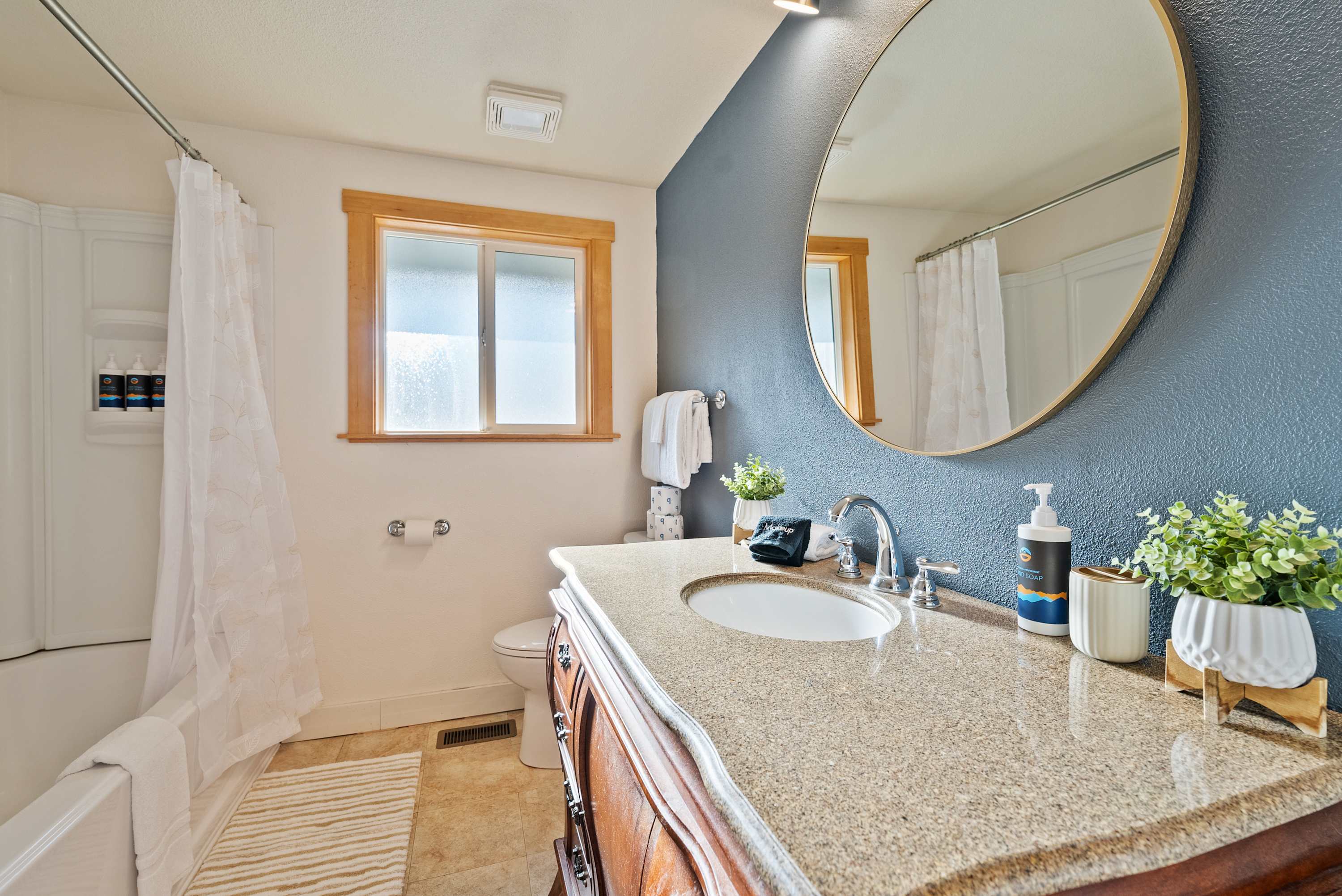This home also includes a full guest bathroom with a single vanity and a shower/tub combo.
