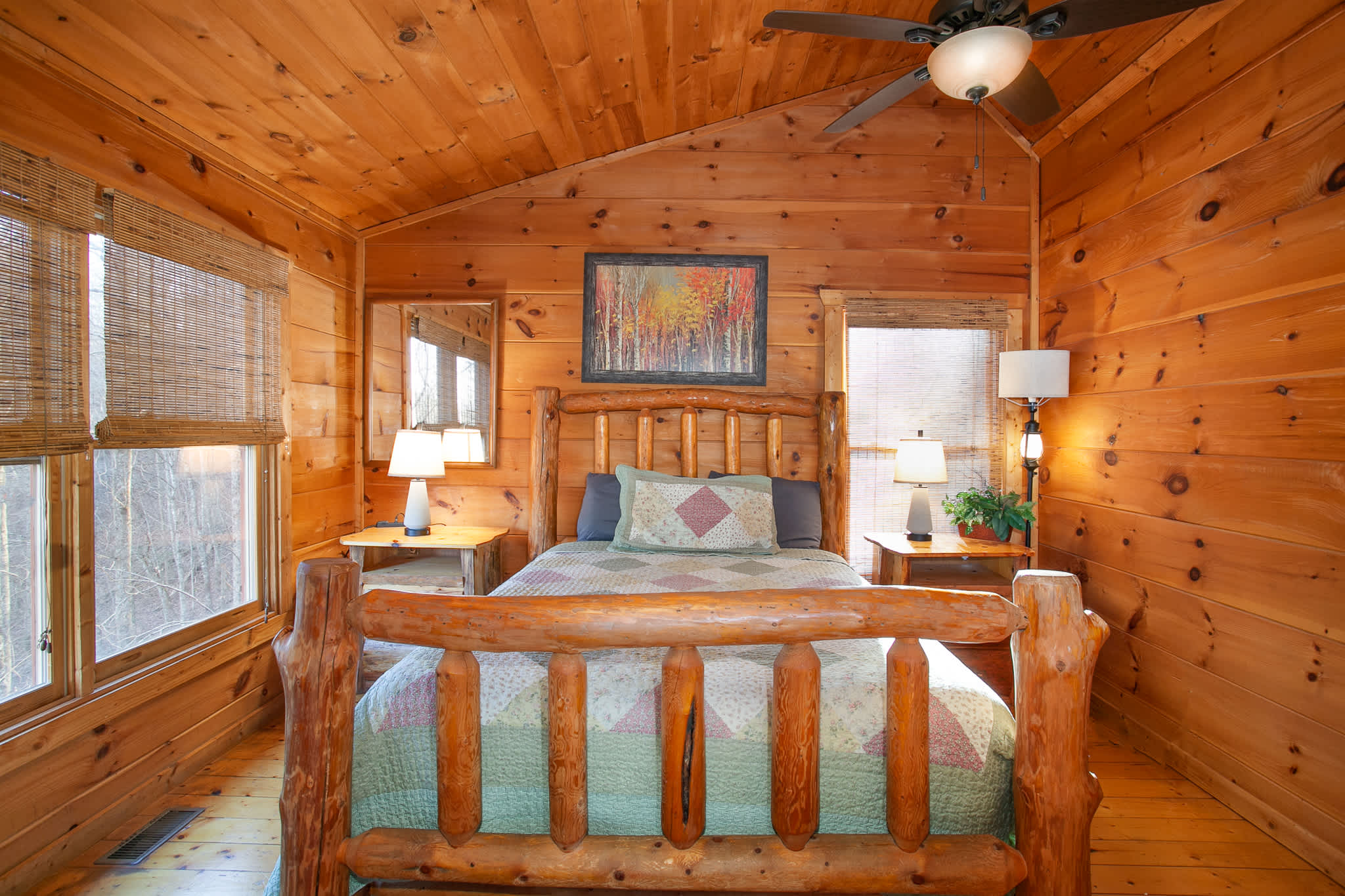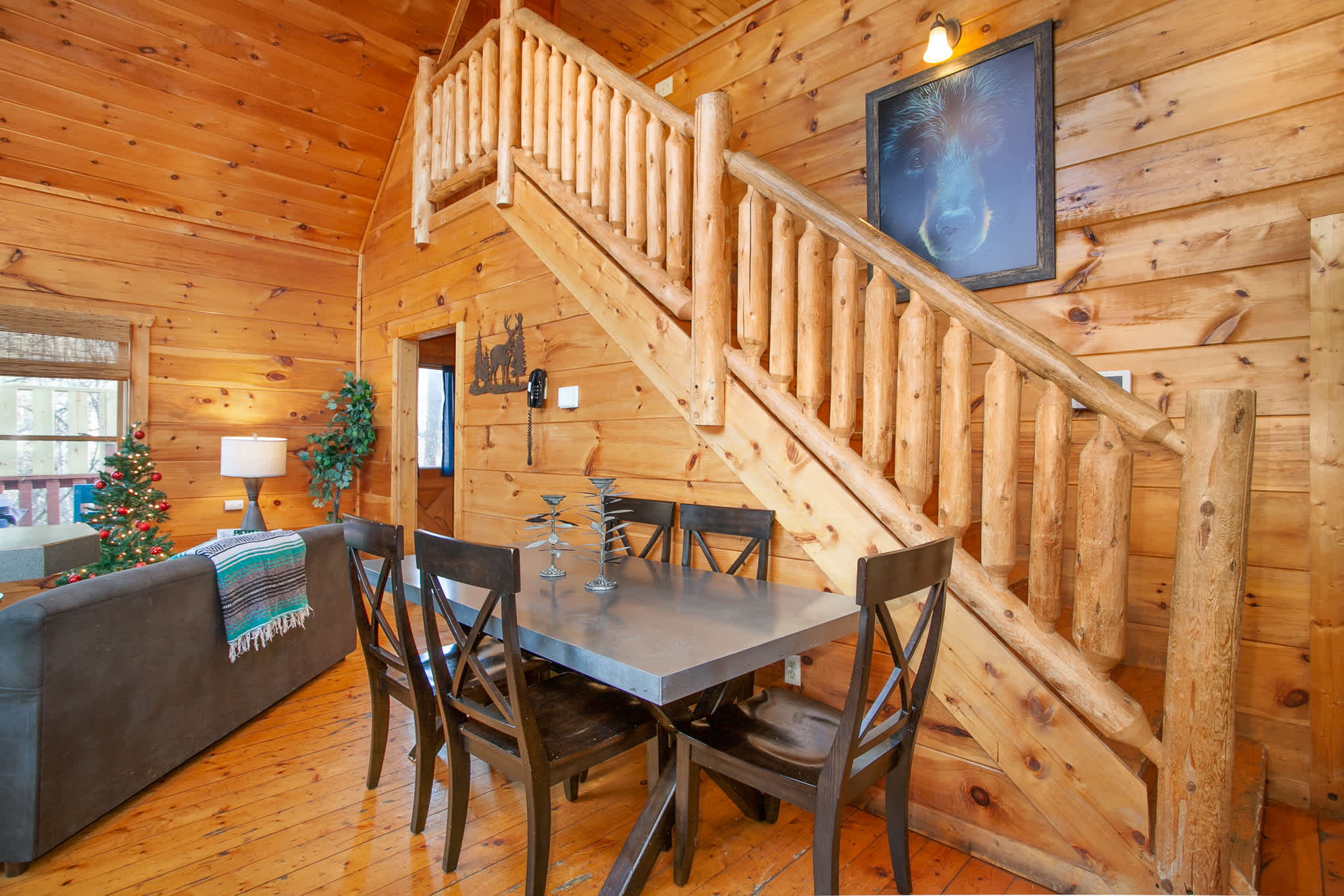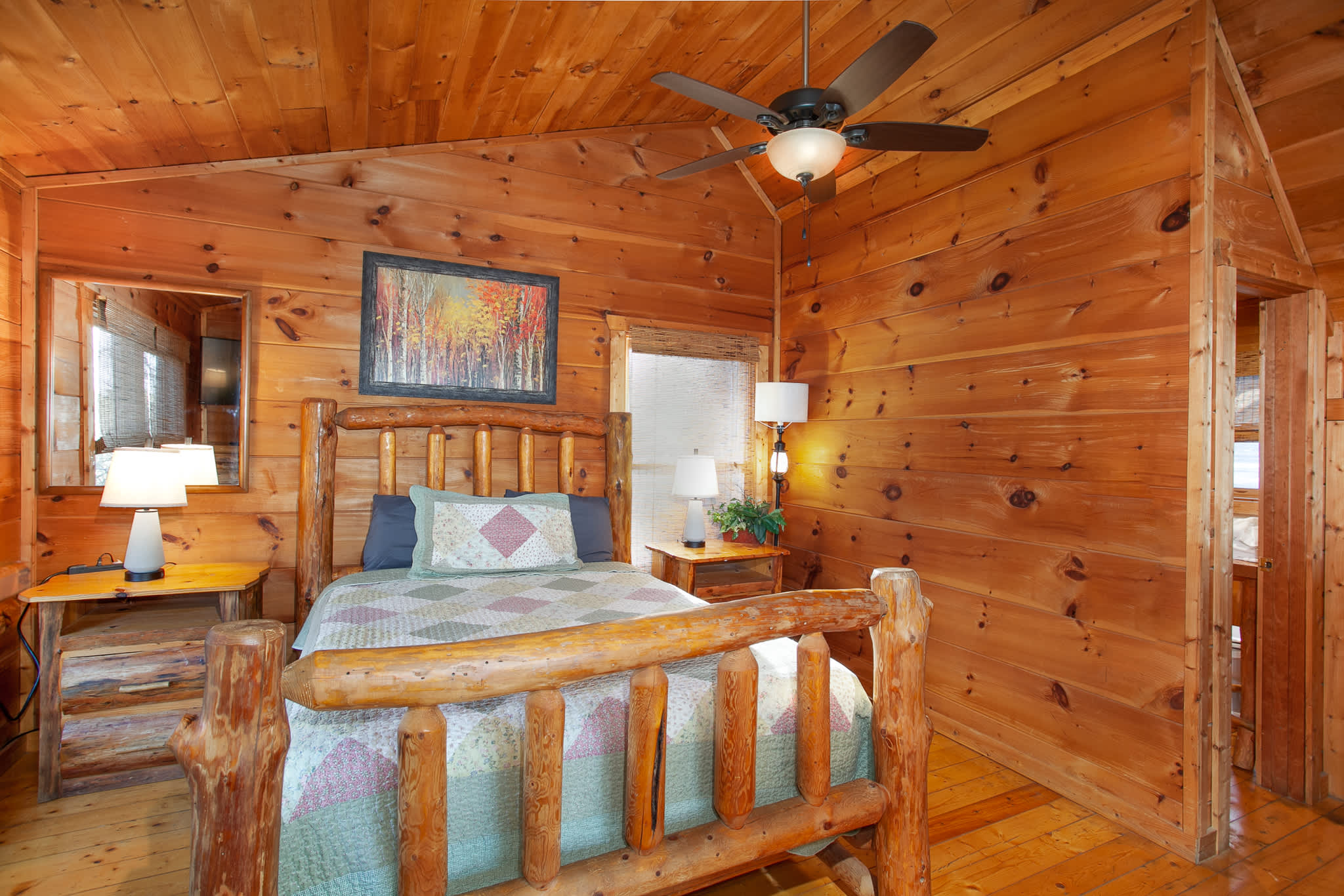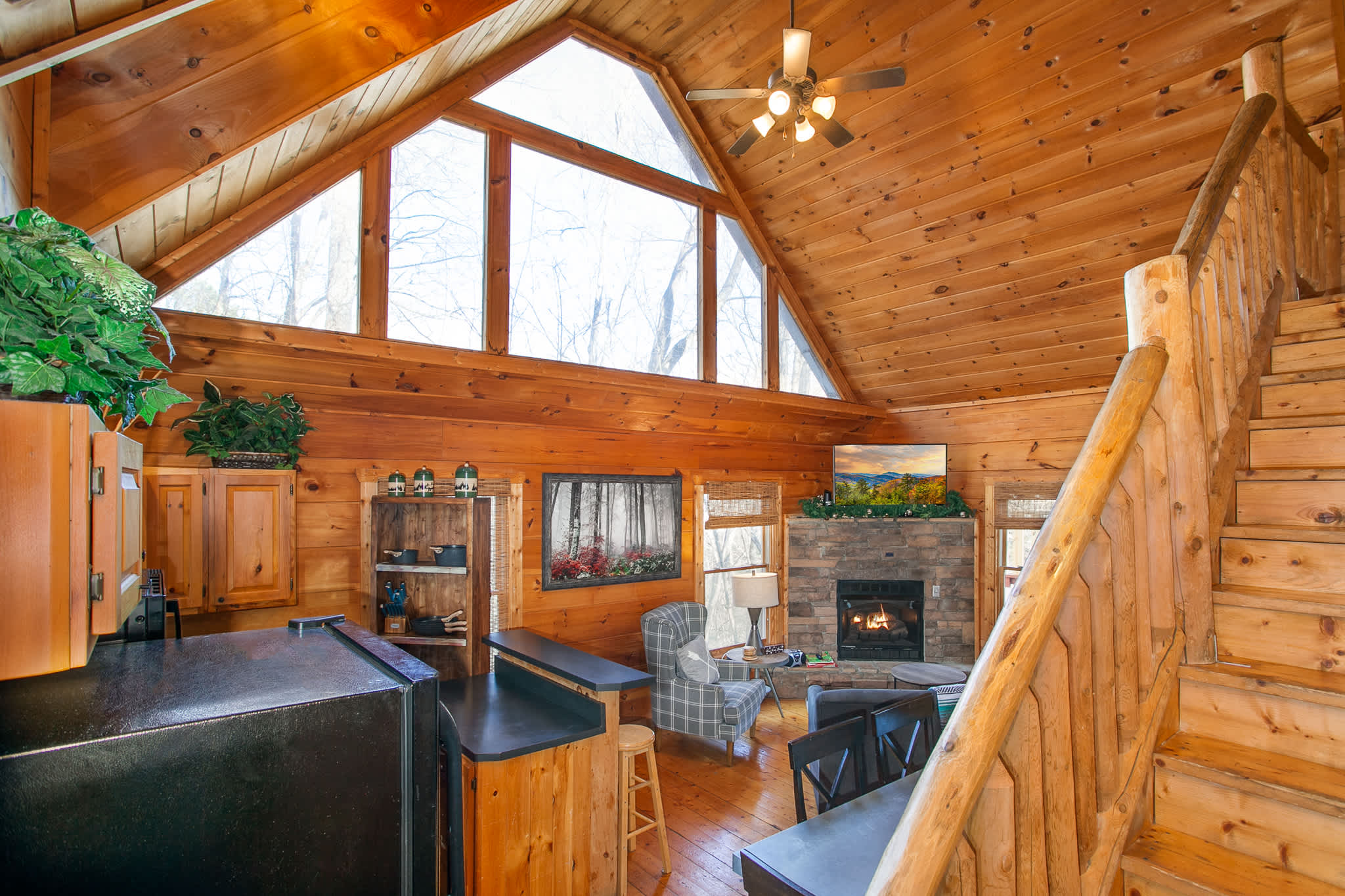 •Loft (2nd floor): Queen bed, smart TV, ensuite bathroom with single vanity and shower. Sleeps 2.