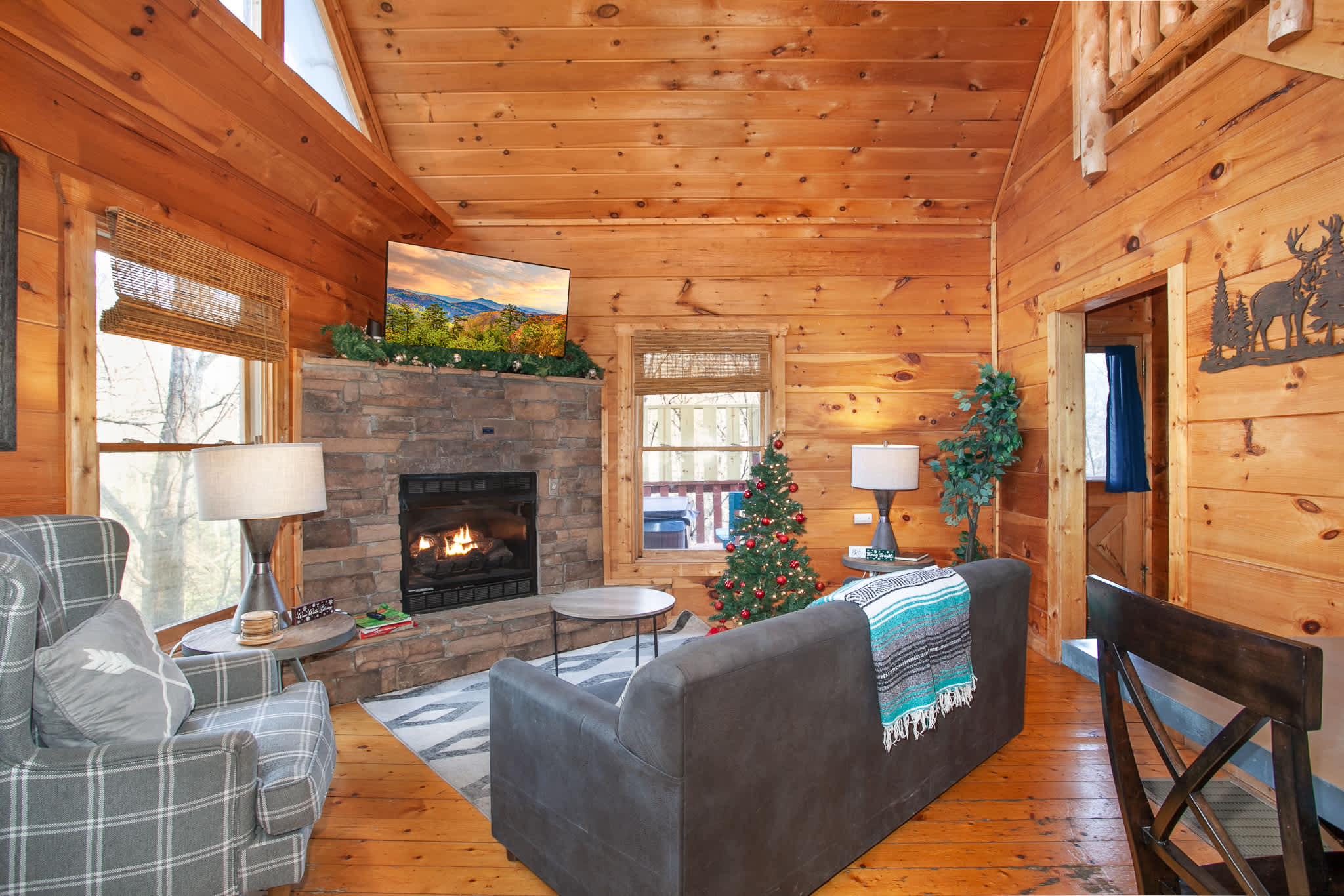 • Open-concept living with smart TVs and an electric fireplace
