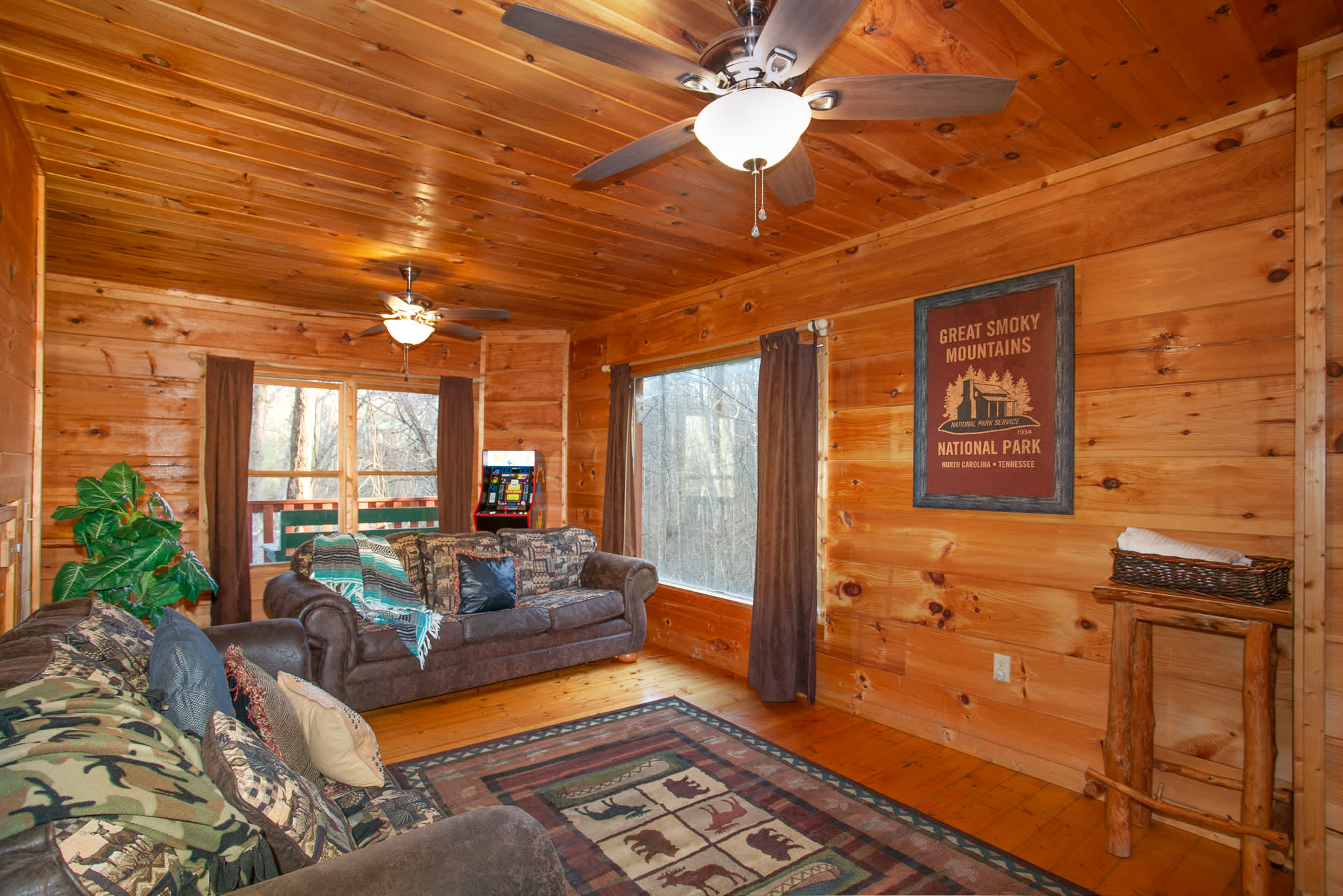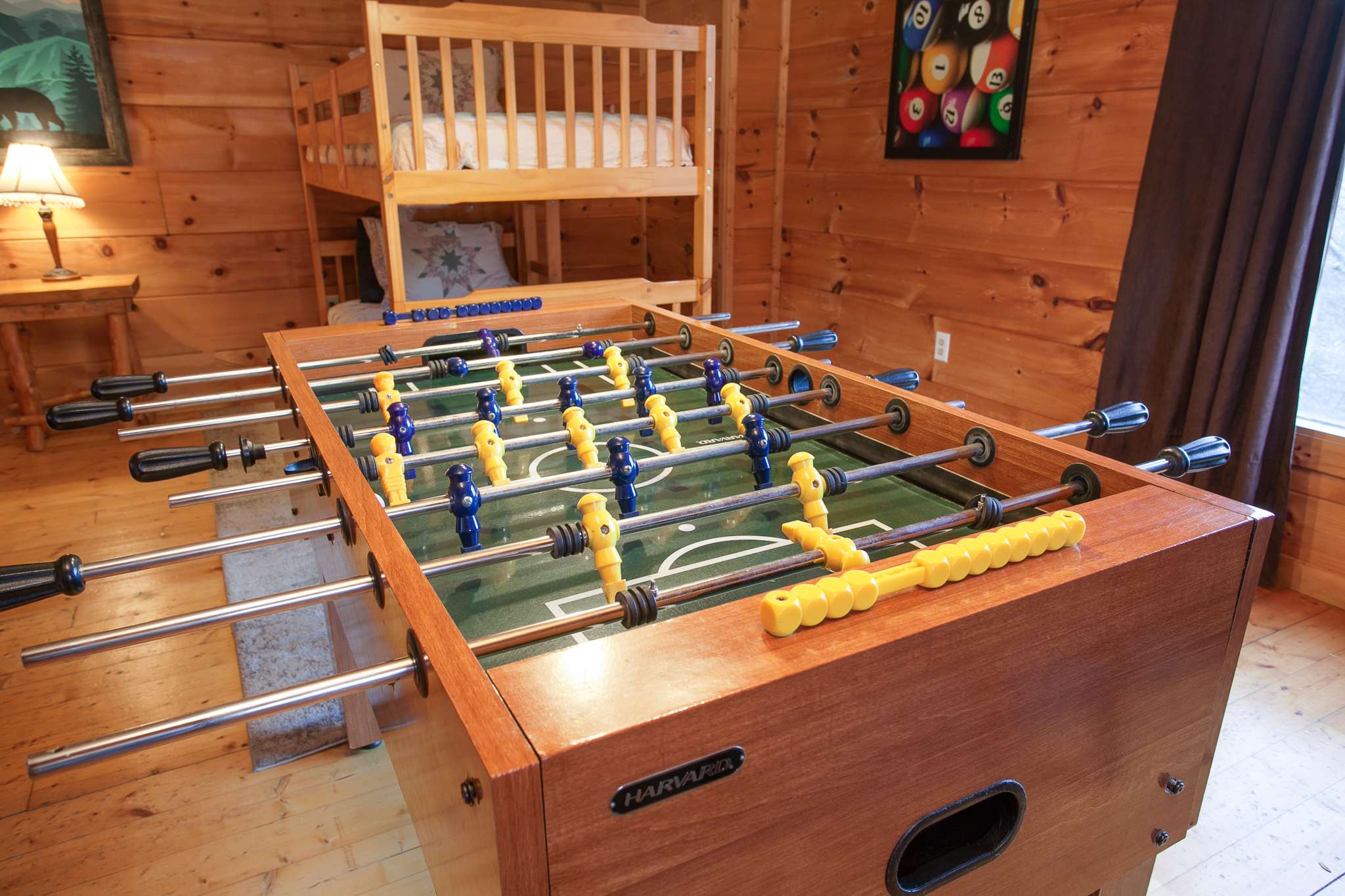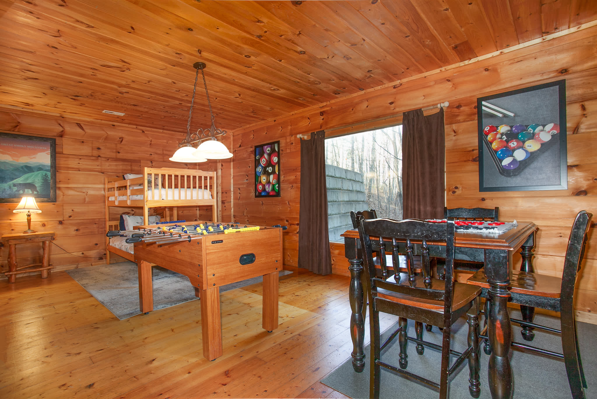 • Game Room (Basement): Twin-over-twin bunk bed and two queen sleeper sofas. Sleeps up to 6.