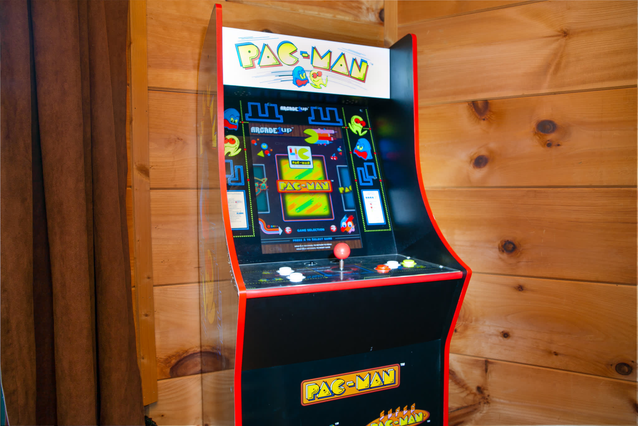 Head to the basement game room for foosball, a Pac-Man arcade game, checkers, and another smart TV. It’s a great hangout zone with additional sleeping options. Upstairs, a loft bedroom provides a bit more privacy with its own ensuite bath. A laundry closet with a washer and dryer on the second floor makes longer stays easy.