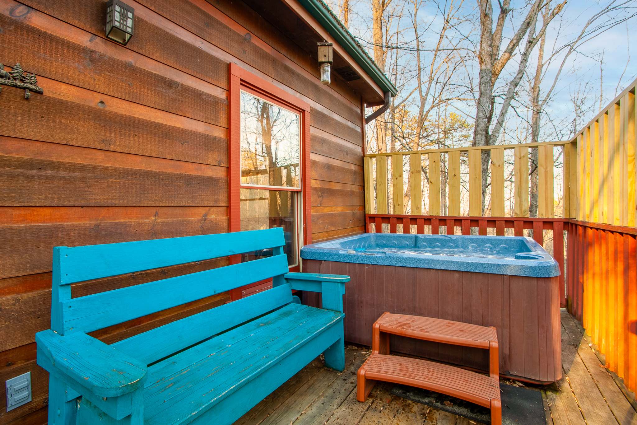 • Private hot tub on the upper deck with scenic views