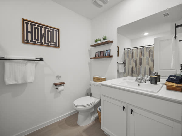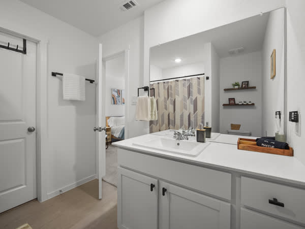 This home also includes a half bathroom and a full guest bathrooms with a single vanity and a walk-in shower.