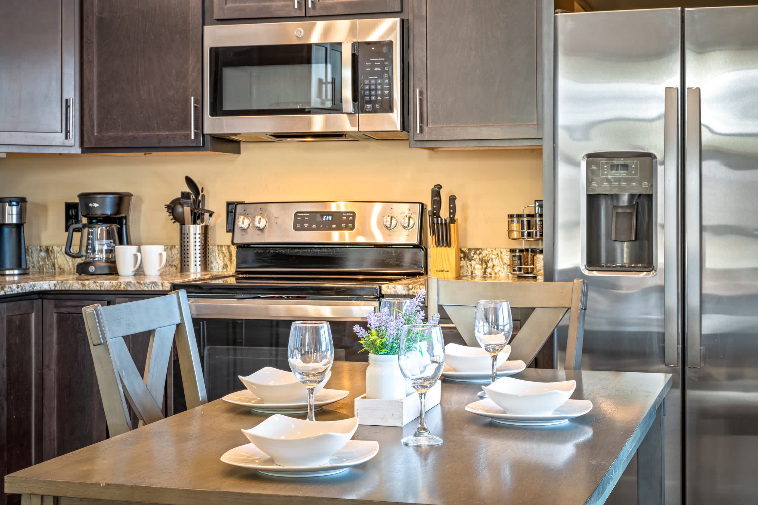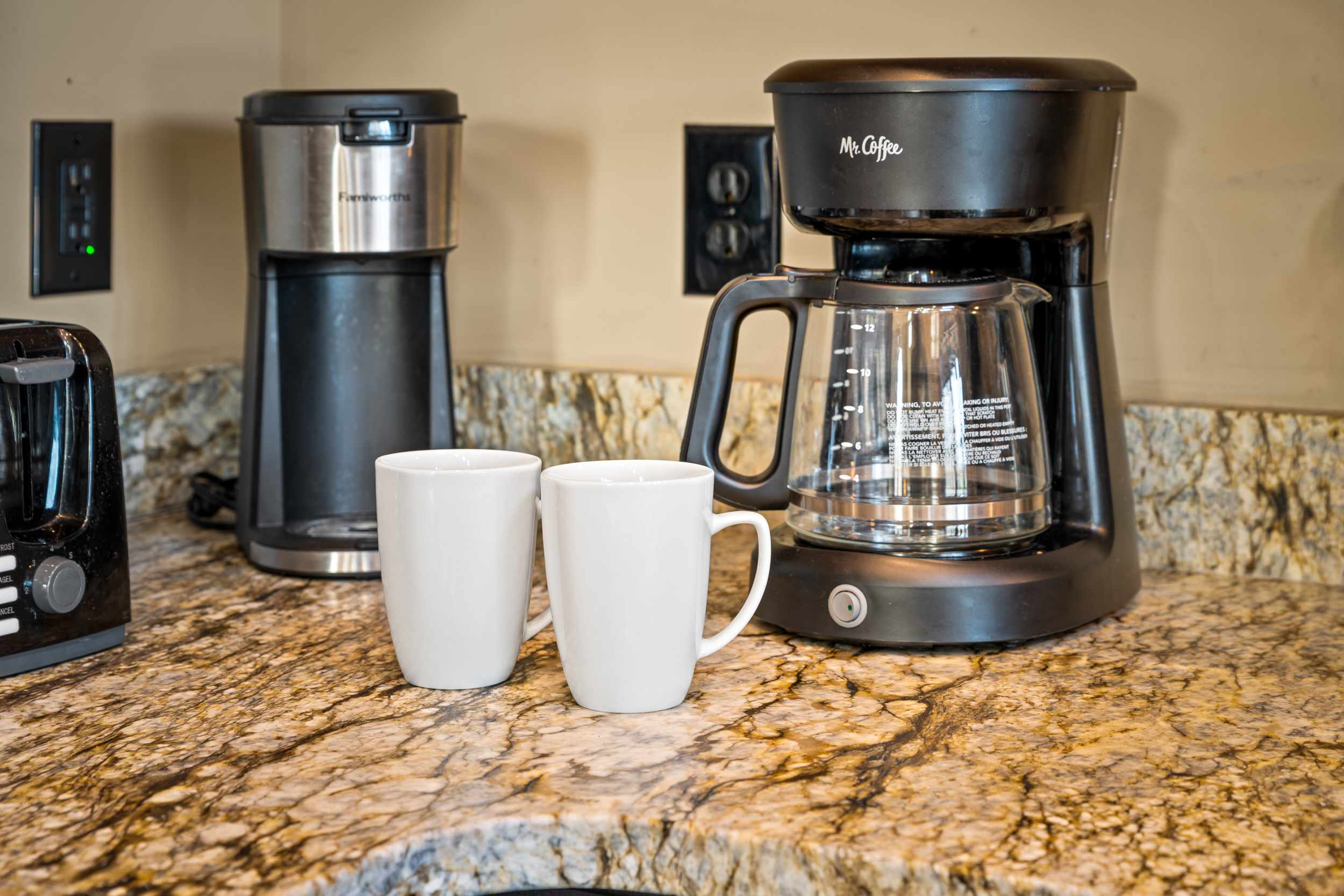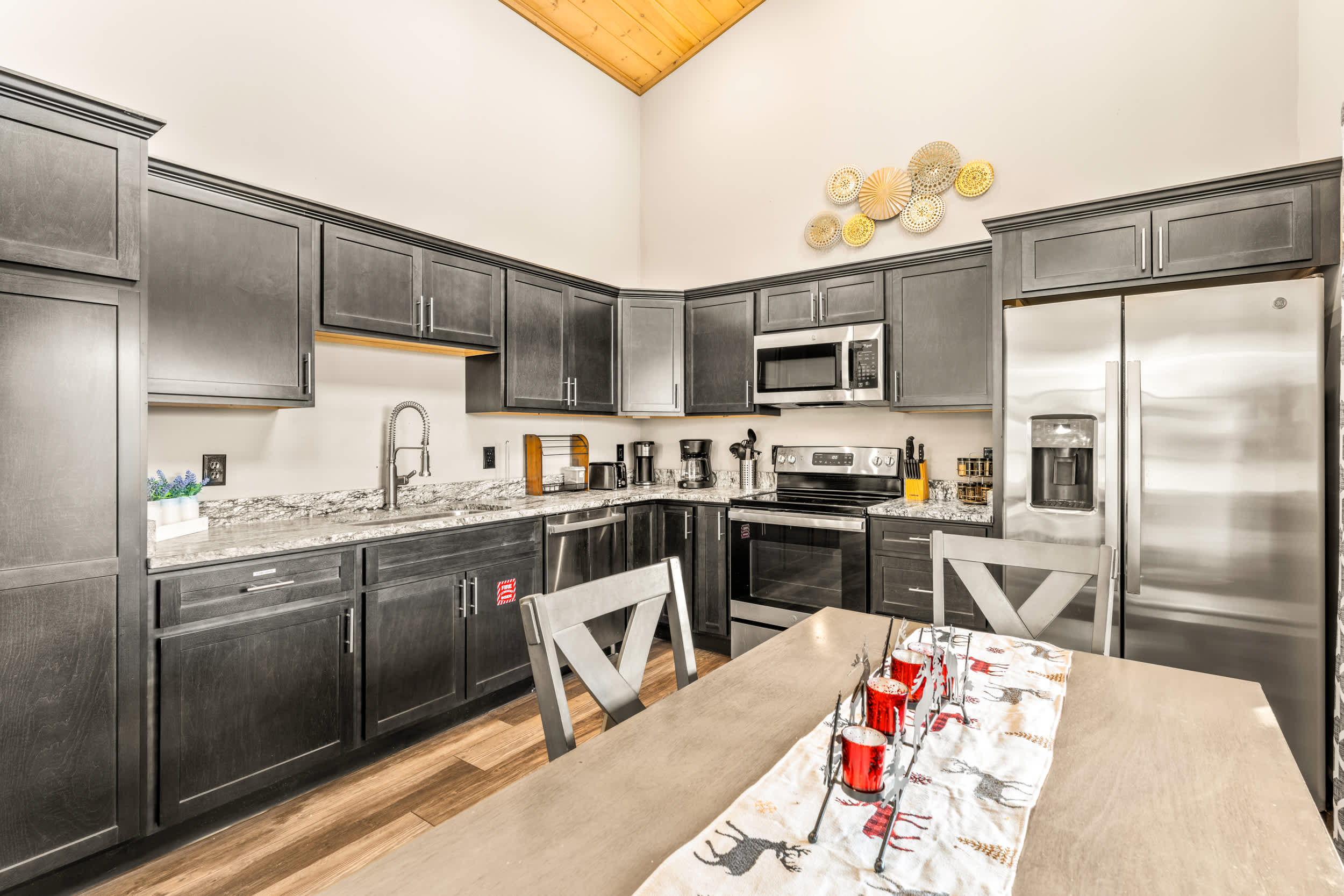 The kitchen has what you need for simple meals, including a coffee maker to kickstart your day, and the dining table seats 4. Step out to the covered front porch to soak in the hot tub, fire up the BBQ grill, or lounge with a cup of coffee. The front yard offers a wood-burning fire pit with seating, corn hole and seating for laid-back afternoons and evenings, plus a backyard for a bit of extra space to spread out.