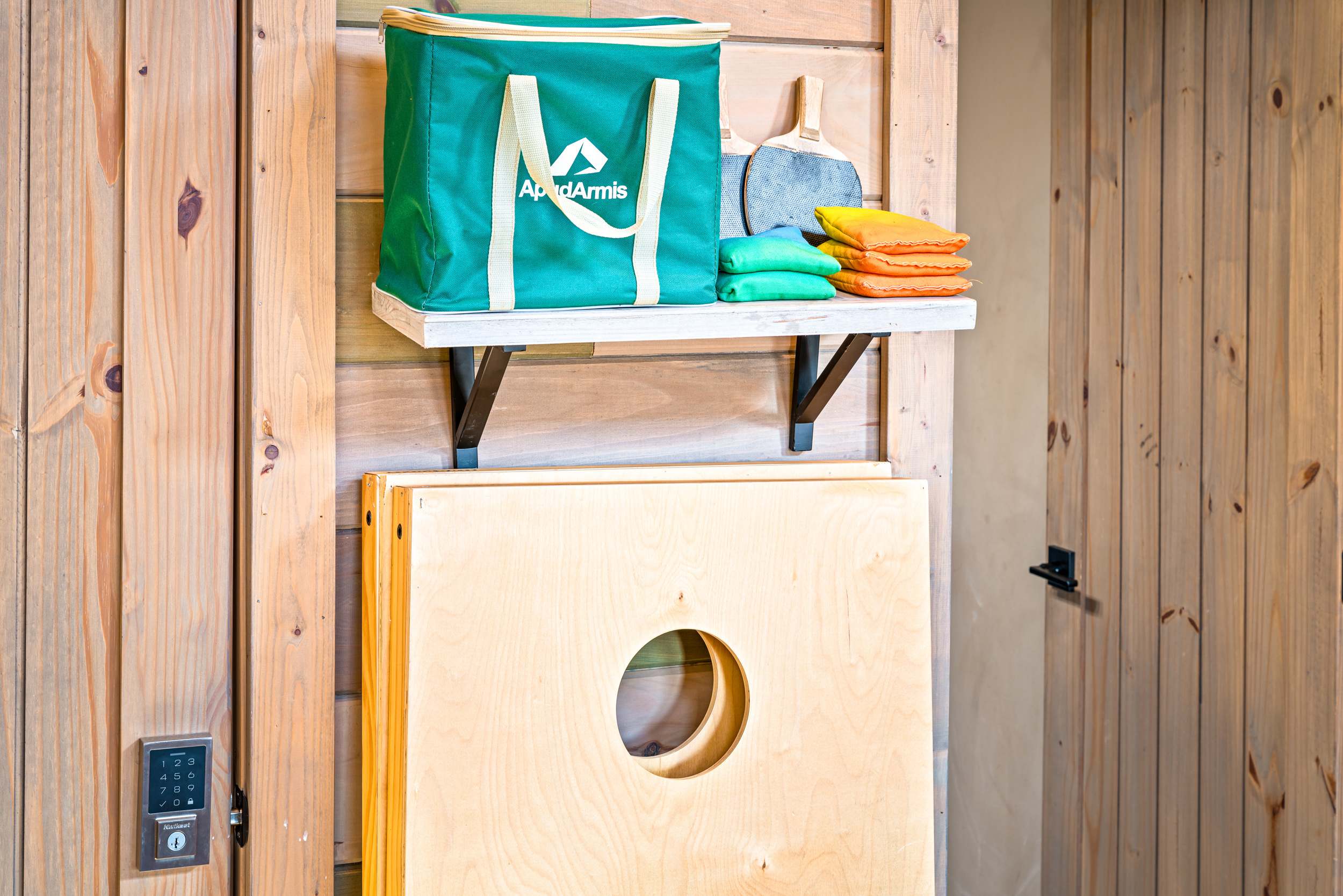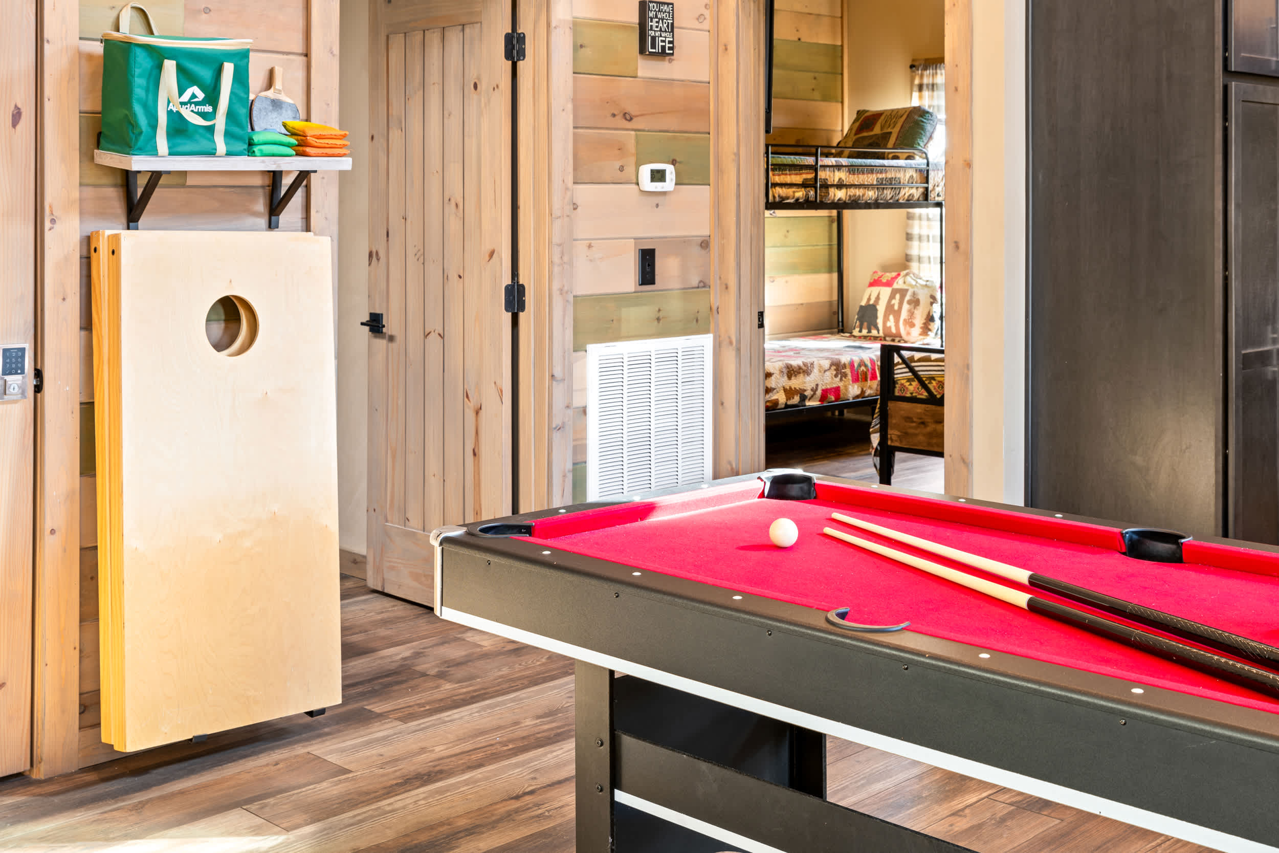 • Game time: combo ping pong/pool table inside, plus cornhole outside