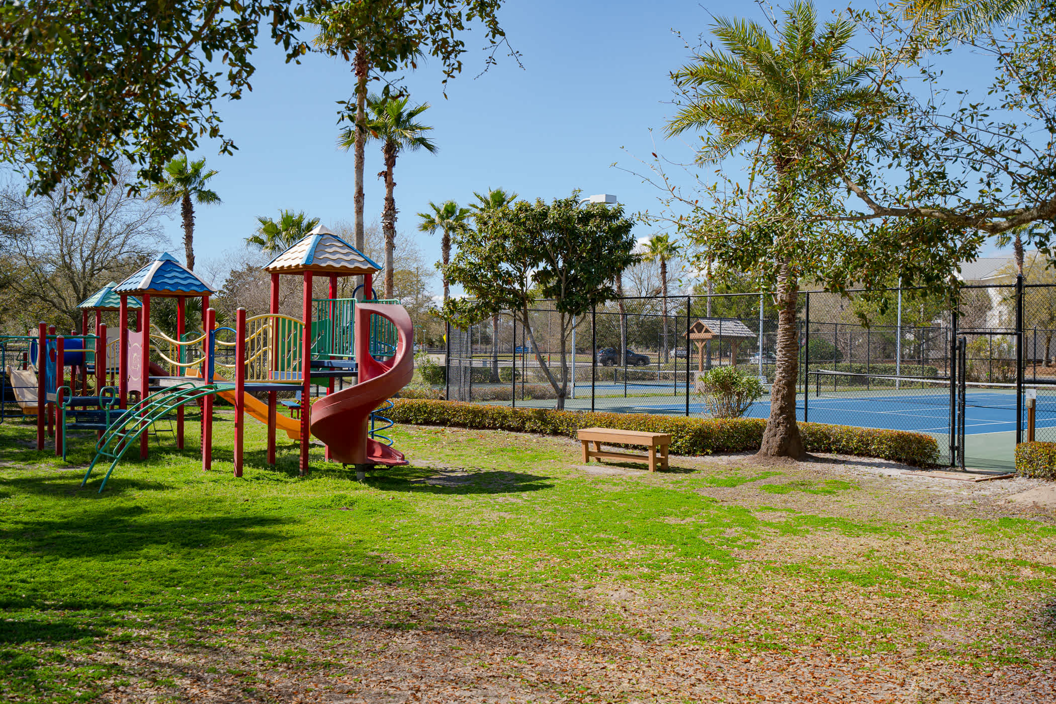 Sports Courts & Playground: Enjoy basketball, tennis, and pickleball courts, along with a playground for all ages. The playground area also features outdoor charcoal grills available for guest use, making it a great spot for family cookouts and relaxed afternoons.
