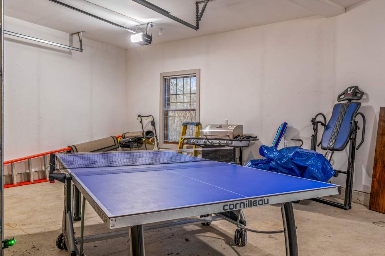 Step inside to a bright, inviting living space filled with natural light from abundant windows. A cozy sitting area centered around a decorative fireplace sets the tone for easy conversation, while the smart TV and collection of board games create a welcoming spot for movie nights or rainy-day fun. For extra fun, the garage transforms into a game zone complete with a ping pong table, making it an easy crowd-pleaser for guests of all ages. If you’re looking for a quieter retreat, a charming den with plush couches offers the perfect spot for reading, lounging, or catching up over morning coffee.