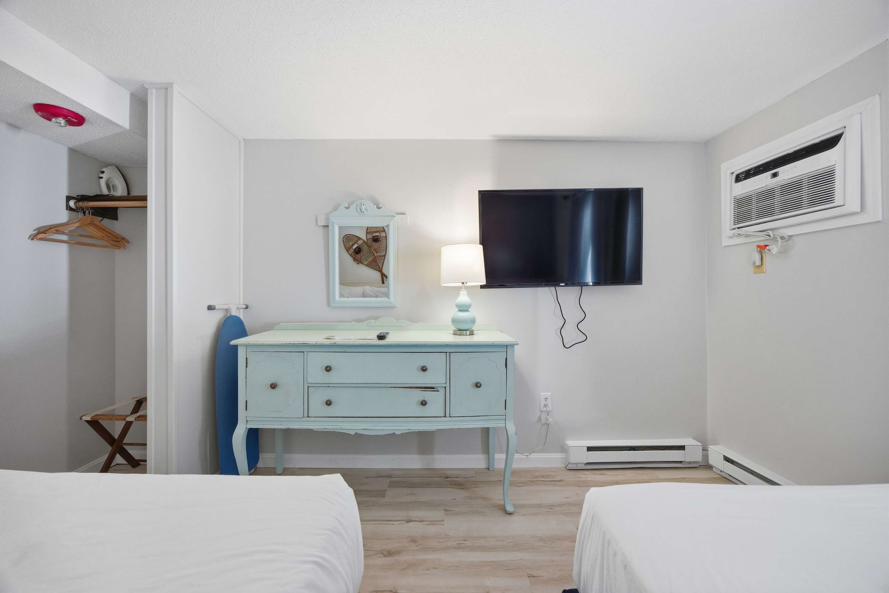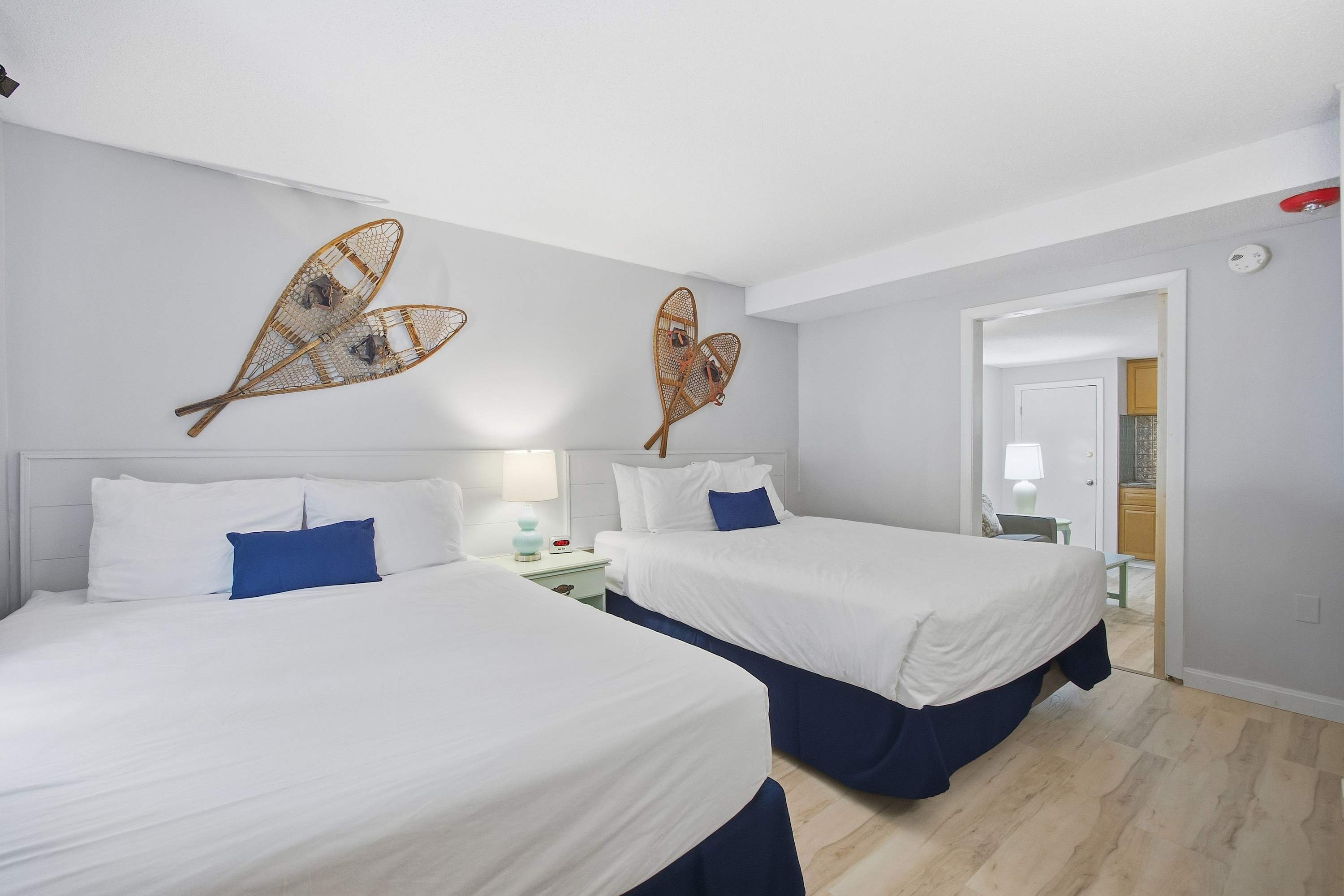The bedroom includes 2 queen size beds and a smart TV.