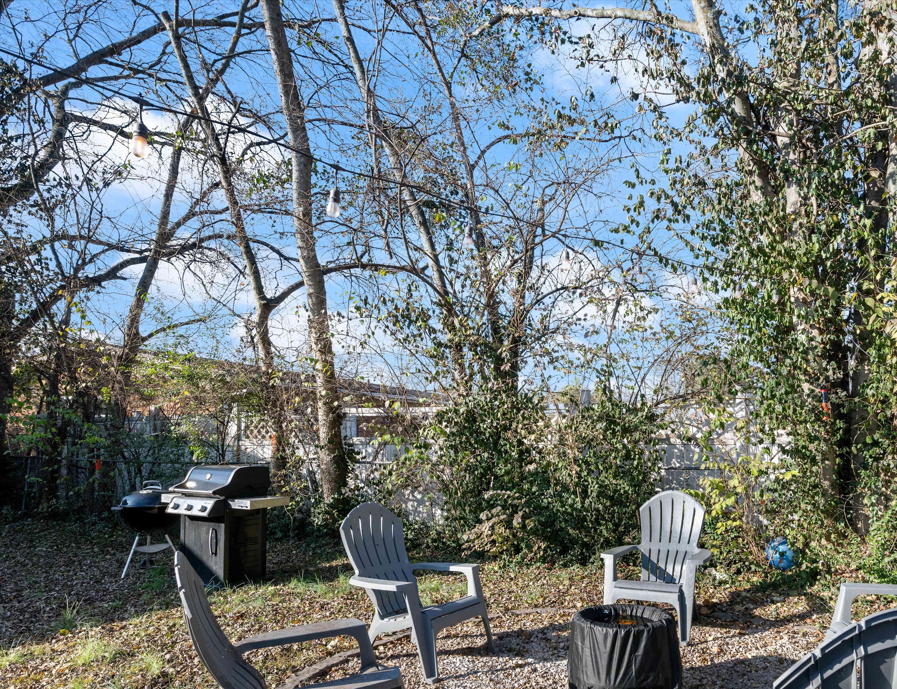 Step inside to a welcoming living room furnished with a cozy couch, chair, and smart TV—your go-to spot for unwinding after exploring the town. The spacious kitchen offers room to cook and gather, featuring stainless steel appliances, white cabinetry, and ample counter space for prepping meals or brewing morning coffee. Just off the kitchen, a separate dining room with a table for six makes space for shared meals and lingering conversations. For slower mornings or quiet afternoons, retreat to the screened-in porch, a peaceful nook perfect for reading, sipping tea, or simply enjoying a cross-breeze. Outside, the backyard invites relaxation and easy entertainment with a grill and fire pit—ideal for casual cookouts, roasting marshmallows, or ending the evening under the Tennessee sky.