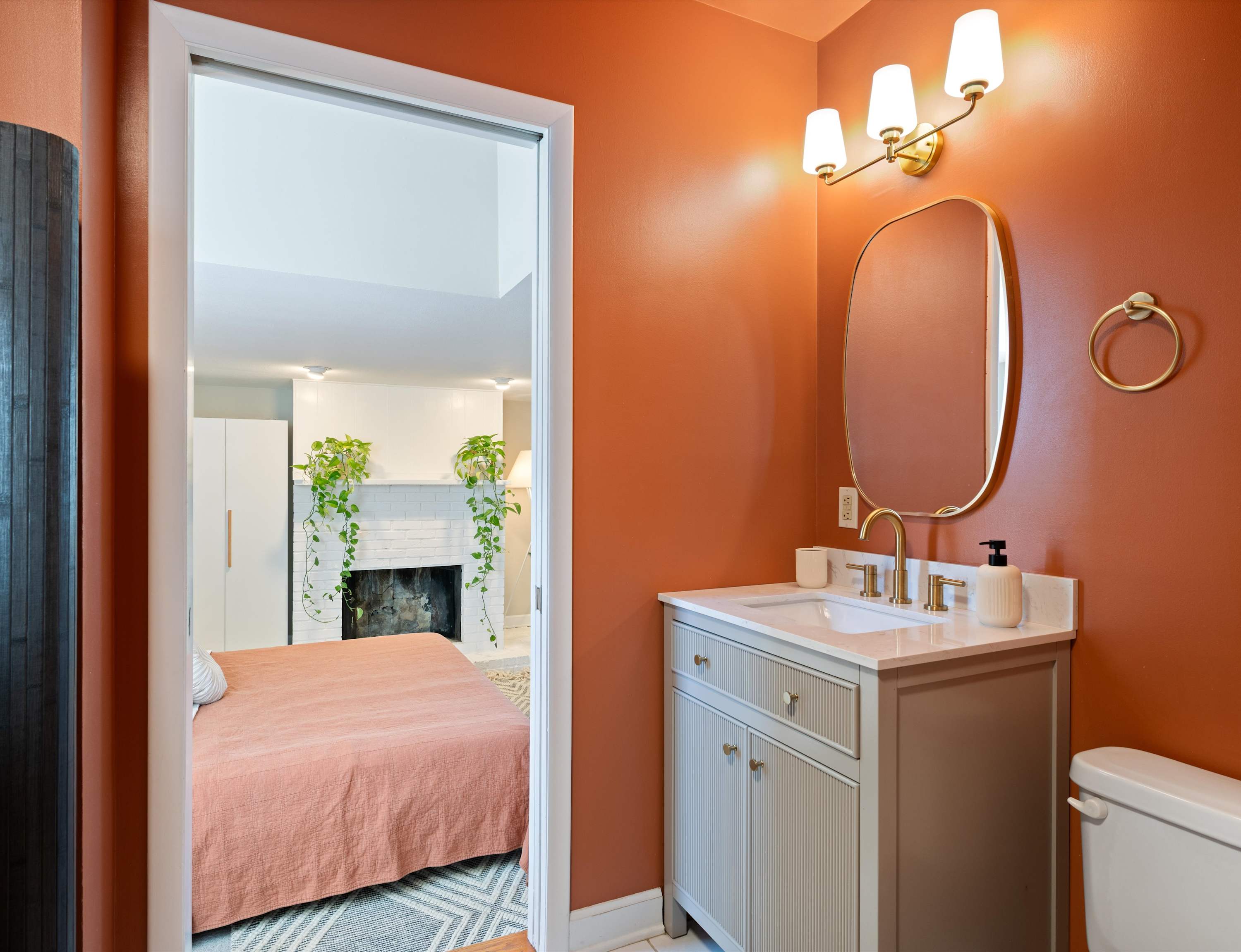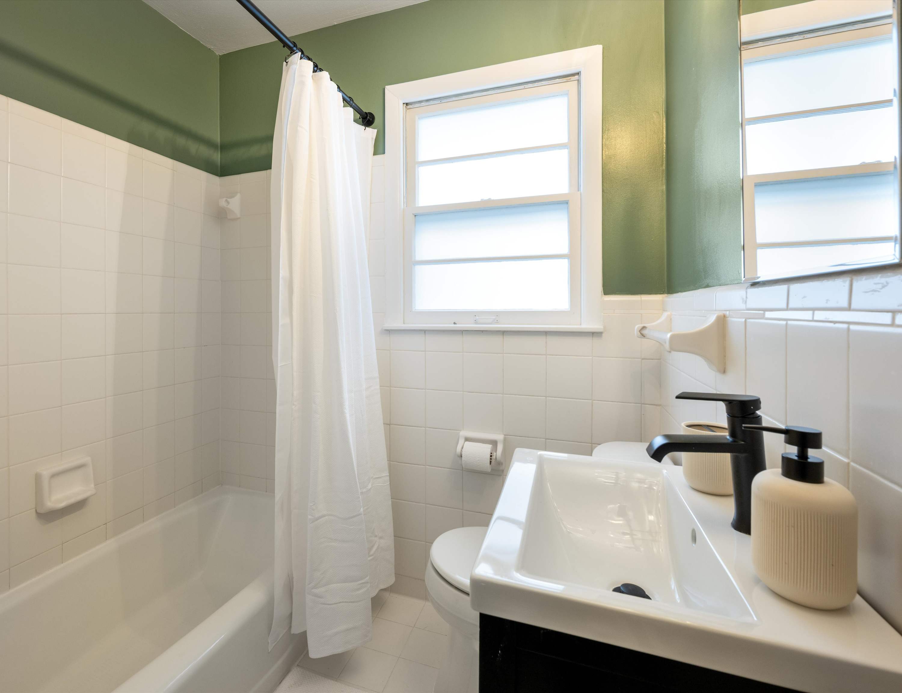 The home also includes a full guest bathroom with a single vanity and a shower/tub combo.