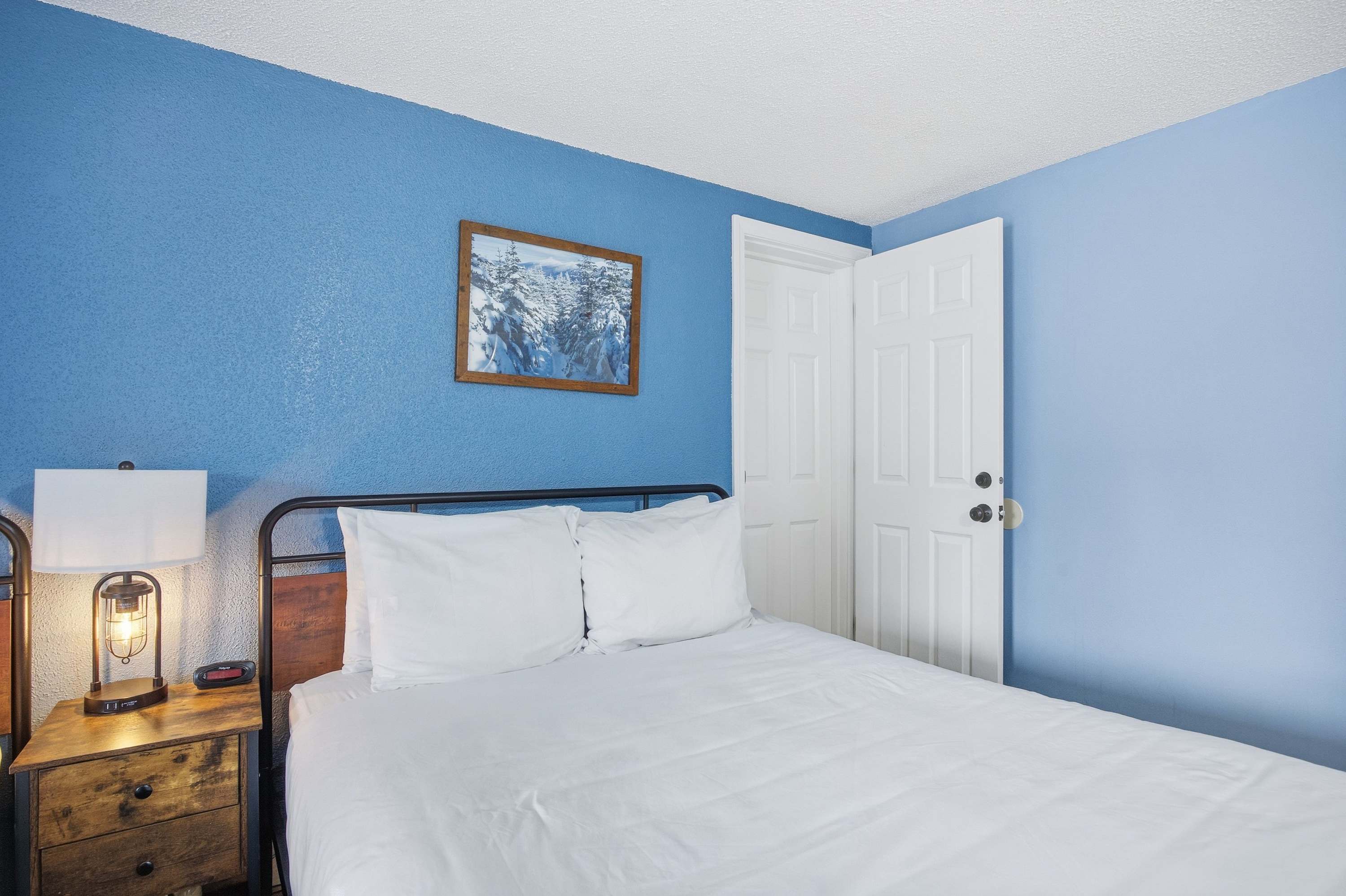This studio unit comfortably sleeps 4 guests between 2 queen size beds.