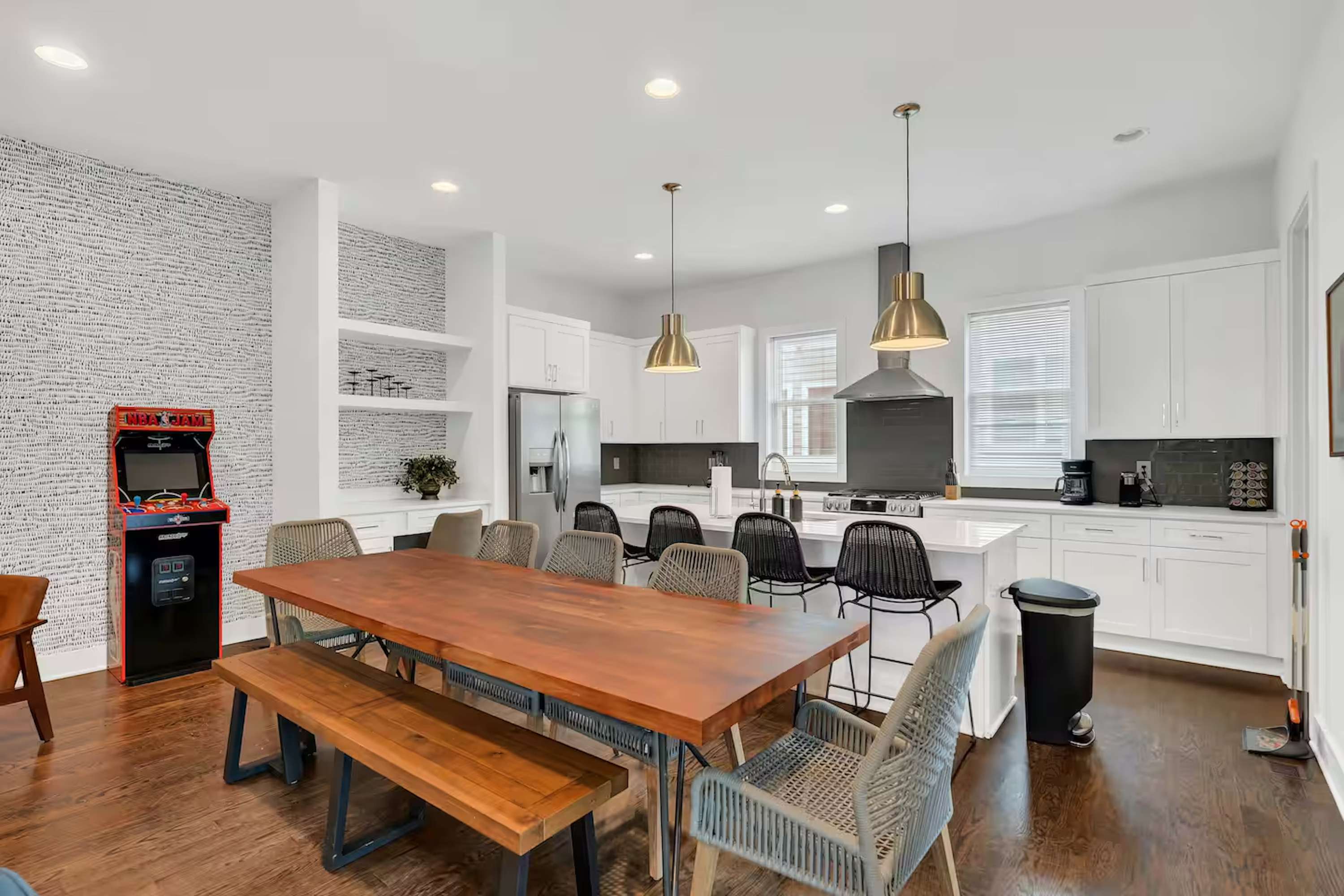 Whether you're grilling on one of the three 800 sq ft rooftop patios, playing Mrs. Pac-Man, NBA Jam, or foosball, or lounging with cocktails under the stars, this trio is tailor-made for entertaining. Inside, enjoy spacious layouts, premium furnishings, fully stocked kitchens, and smart TVs & fast WiFi throughout.