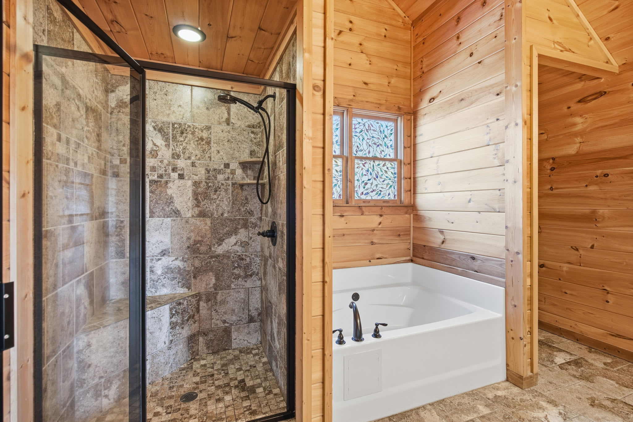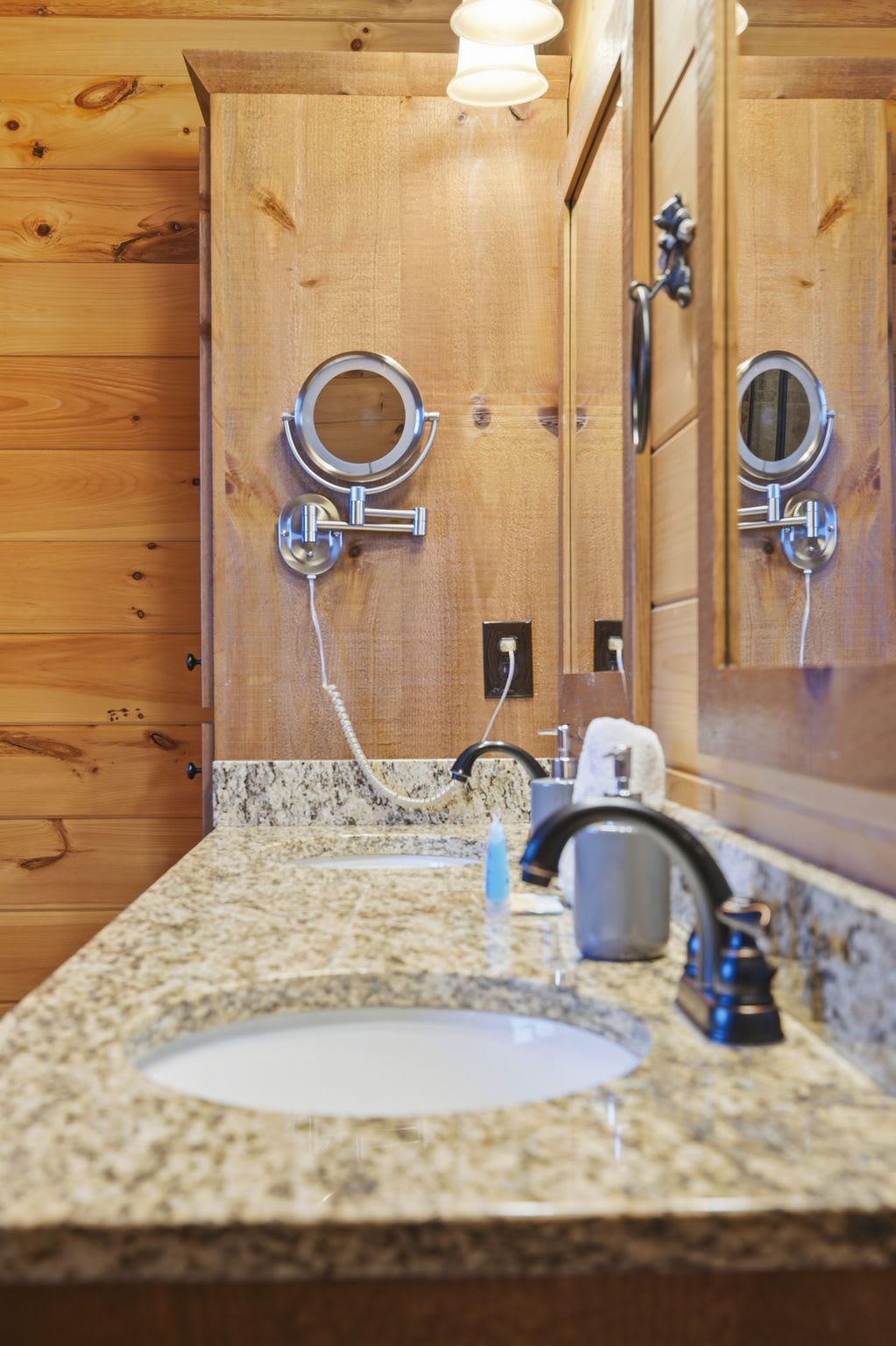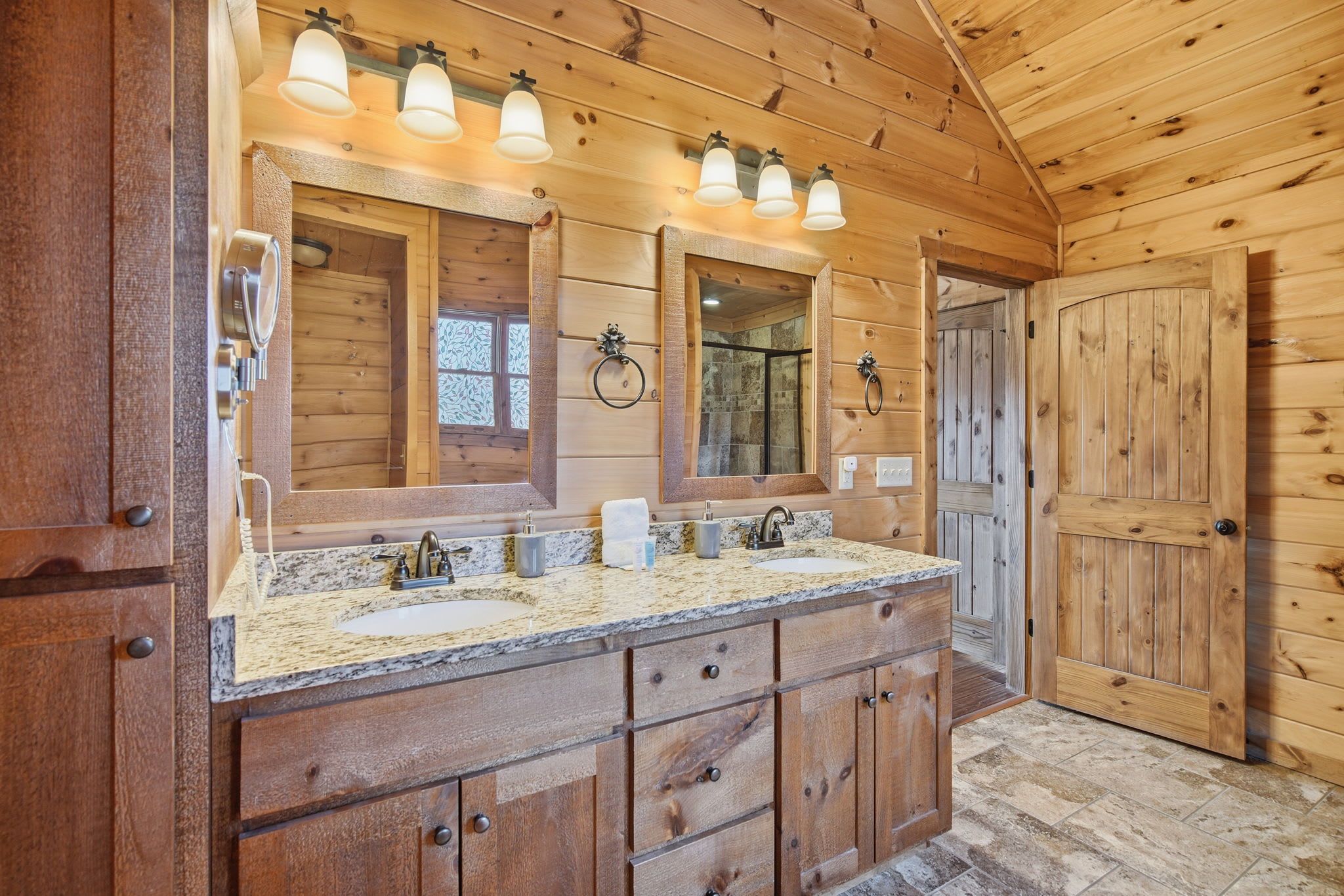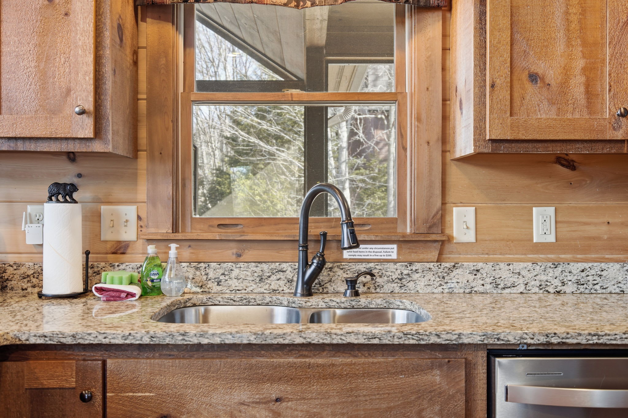 Warm, welcoming, and richly detailed with its all-wood interior and exterior, this stunning three-story cabin accommodates up to eight guests with plenty of space. The main level features a fully equipped kitchen with granite countertops, stainless steel appliances, a crockpot, island seating for four, and all the essentials for cooking at home. Gather for meals in the dining space that seats eight, then relax in the great room—complete with a gas stone fireplace, flat-screen TV, and towering windows framing evening mountain sunsets.