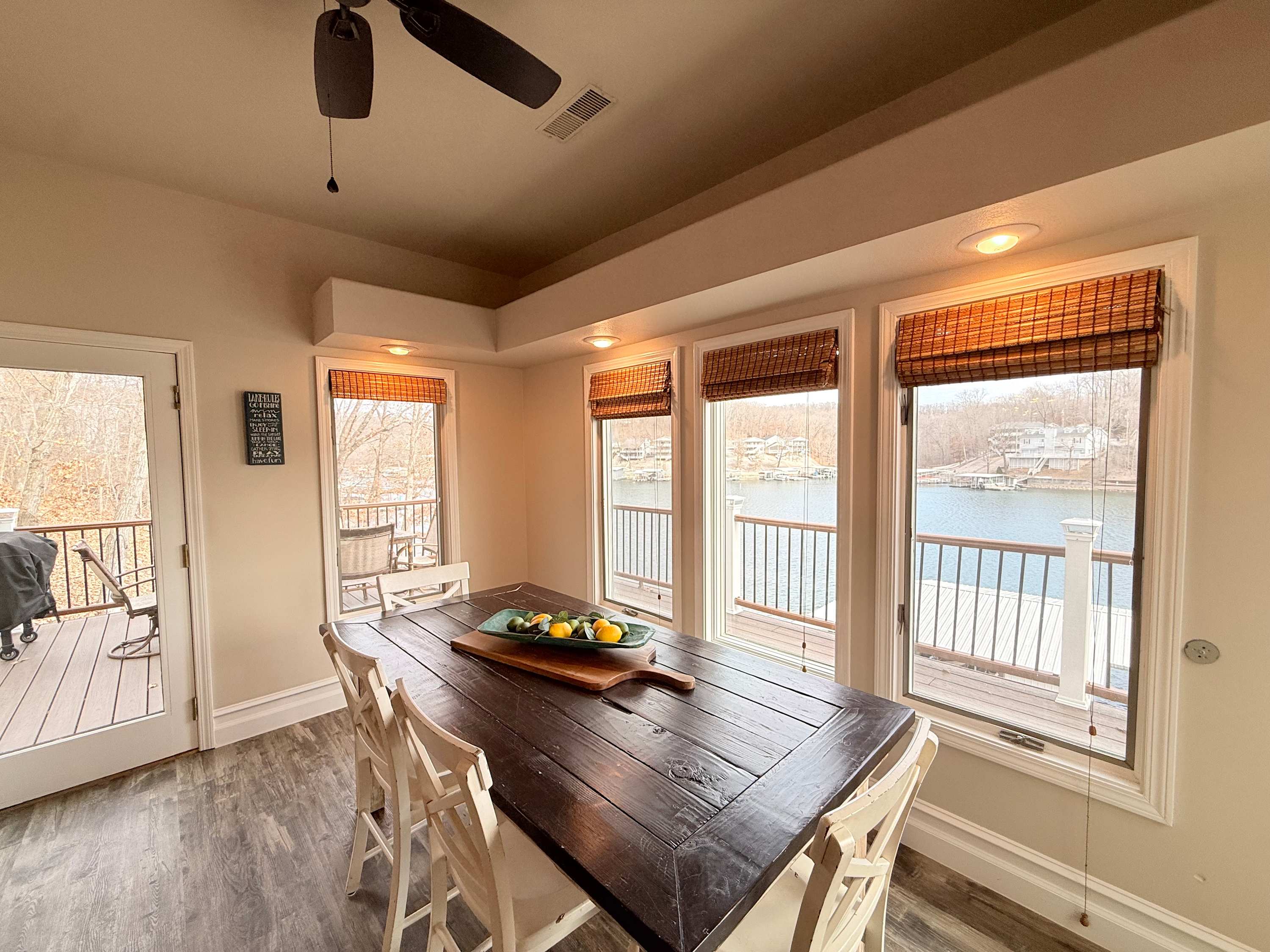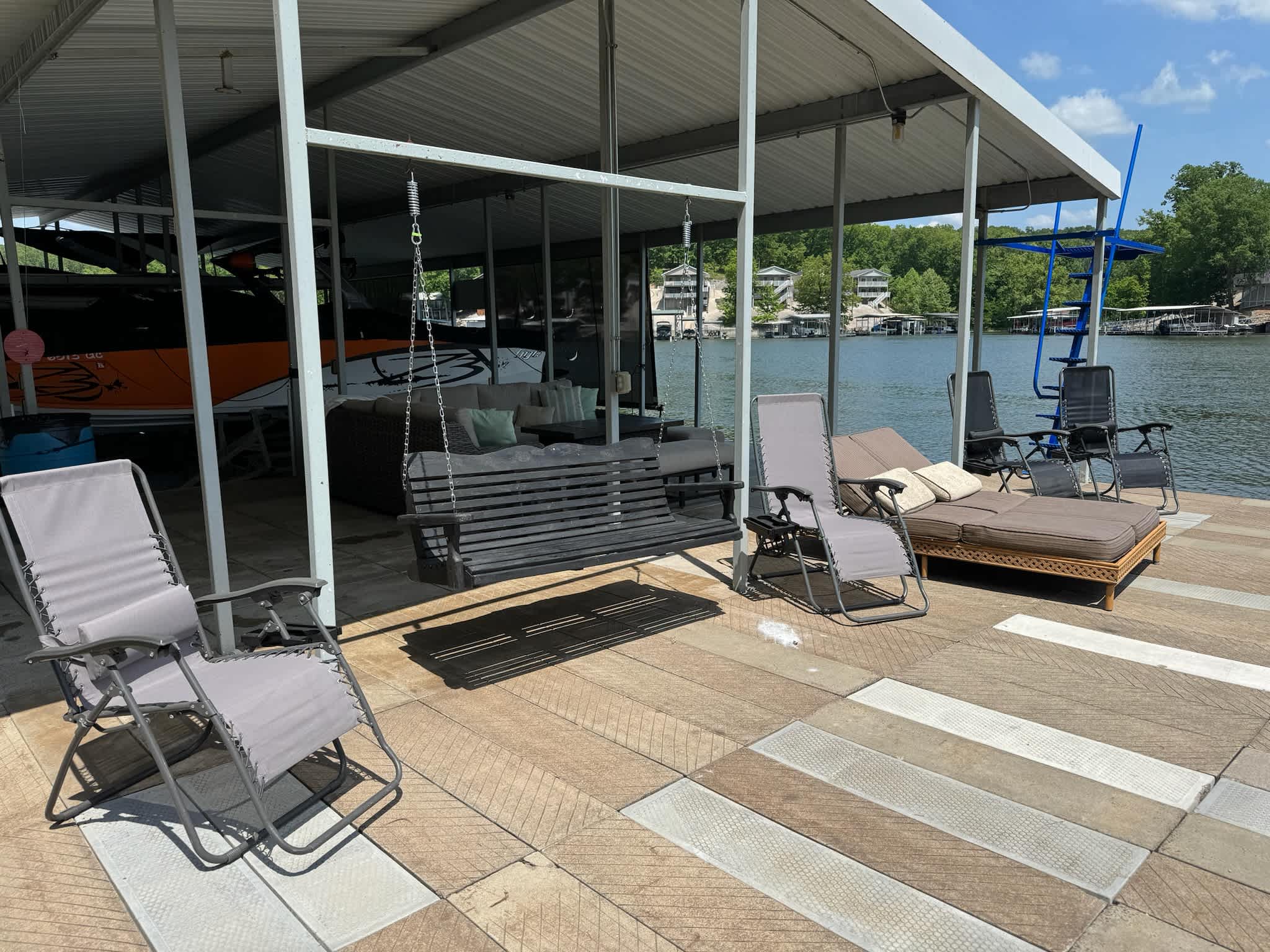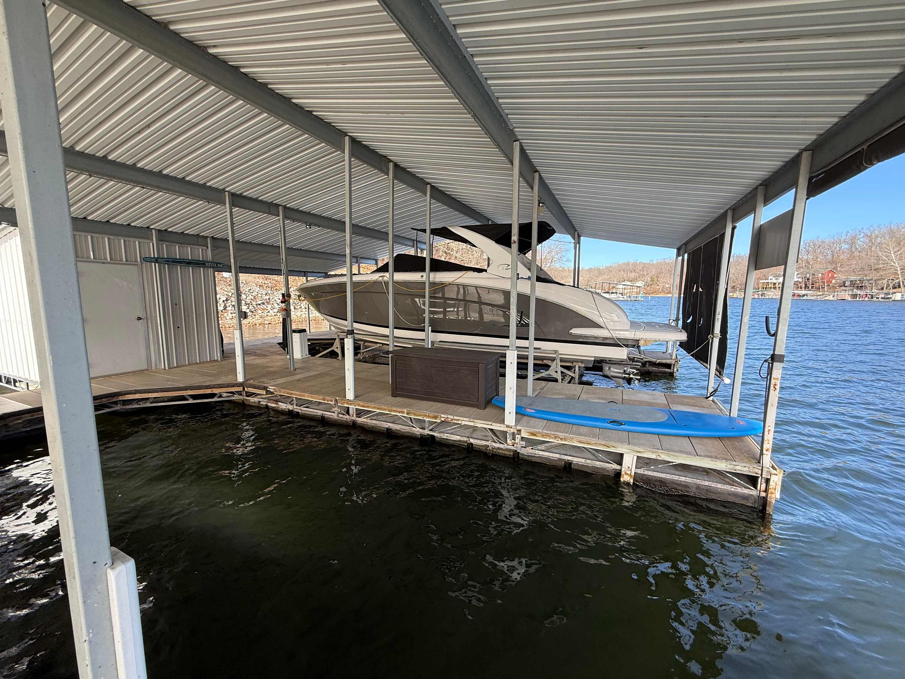 Wander down to the private dock, where you’ll find additional comfortable seating, an open boat slip ready for your lake adventures, and a dedicated fish cleaning station for your day’s catch. Whether you’re here for sunrise coffee overlooking the lake, afternoons on the boat, or fireside conversations after sunset, Mimosa Mornings delivers an authentic Lake of the Ozarks getaway designed for slowing down and savoring every moment.