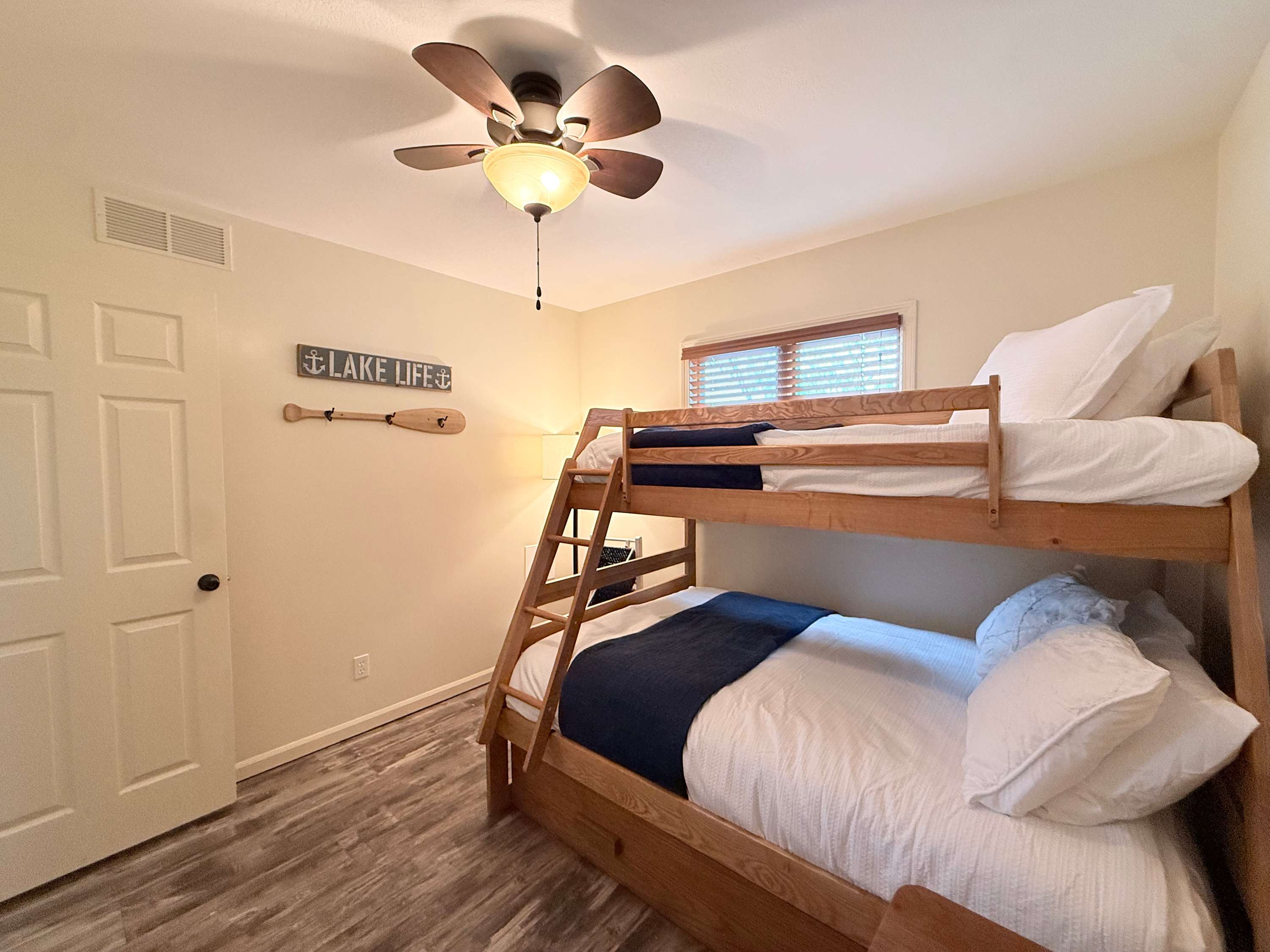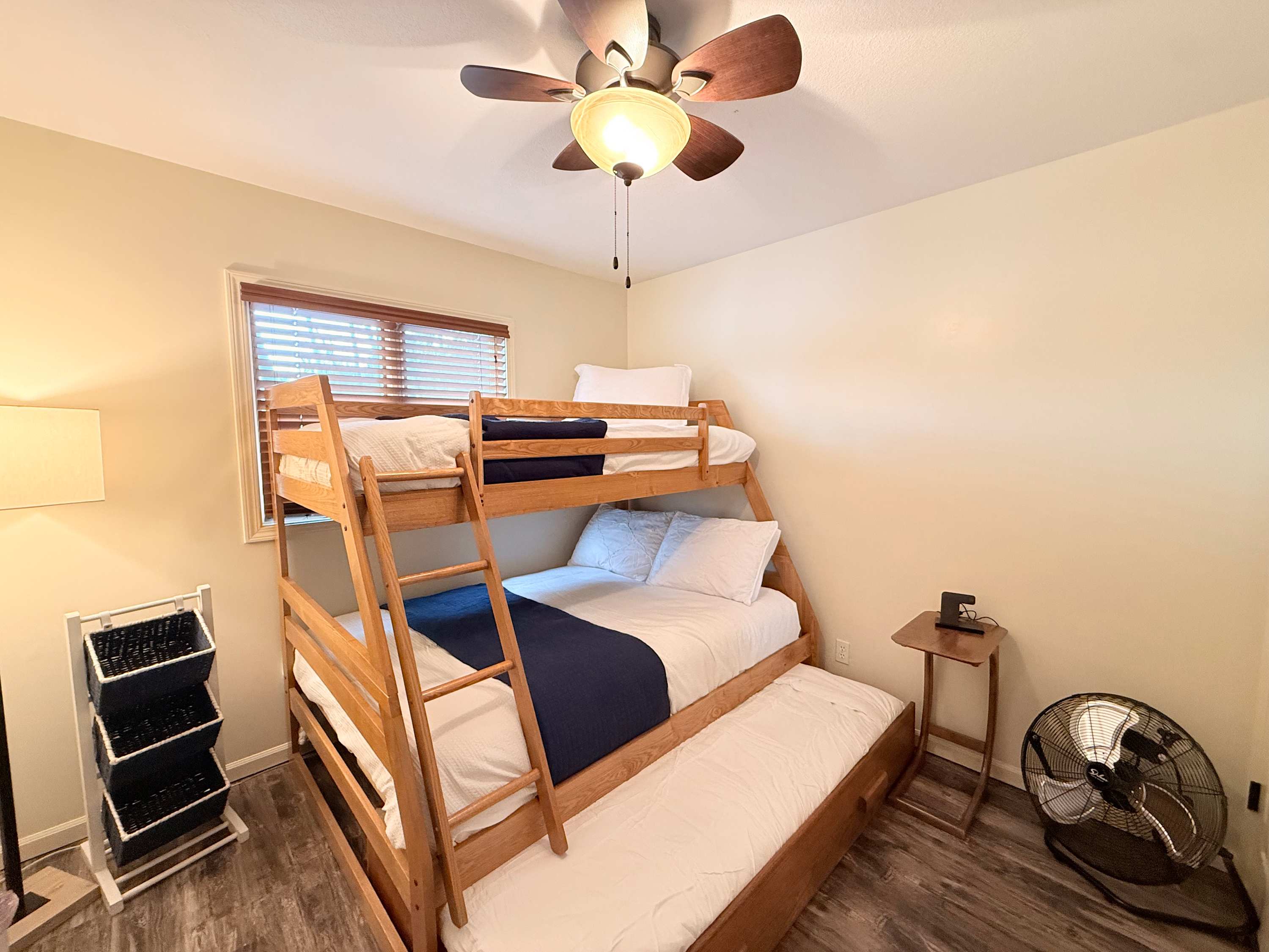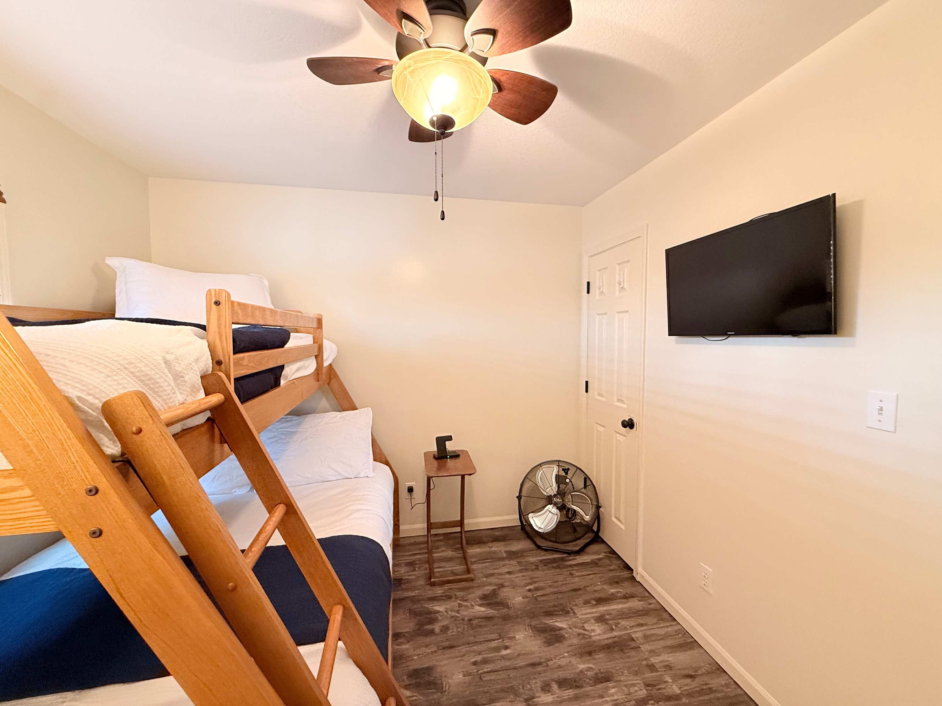 Bedroom #3 includes a set of twin-over-full bunk beds, a twin size trundle bed, and a smart TV.