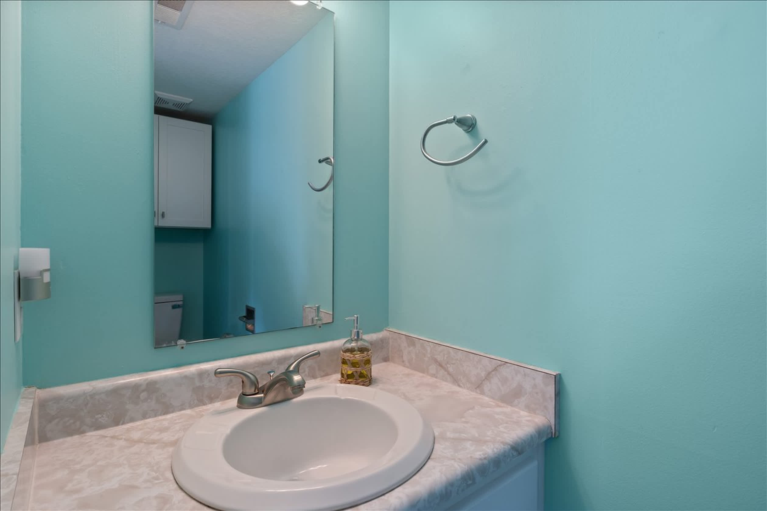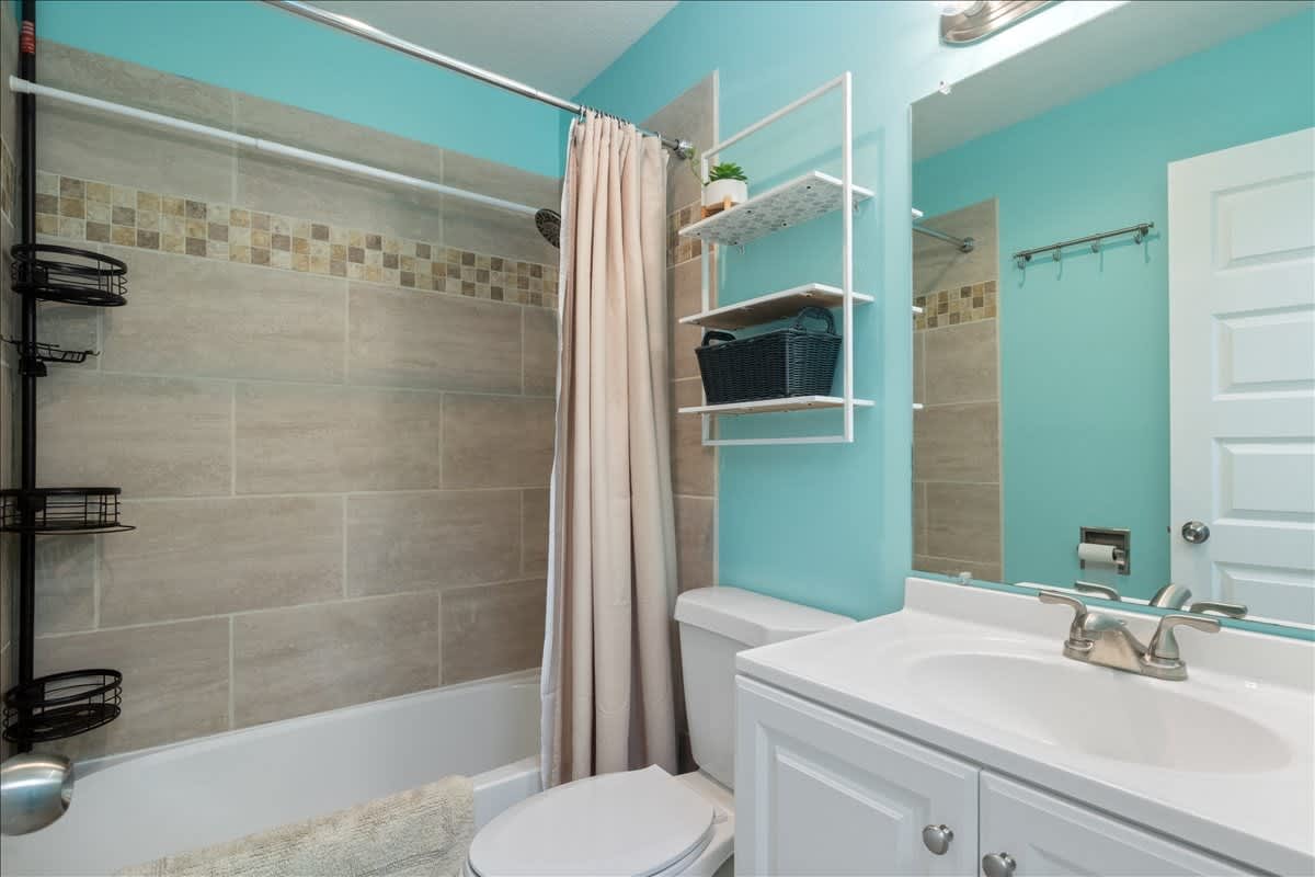 This home also includes a half bathroom and an additional full guest bathroom with a single vanity and a shower/tub combo.