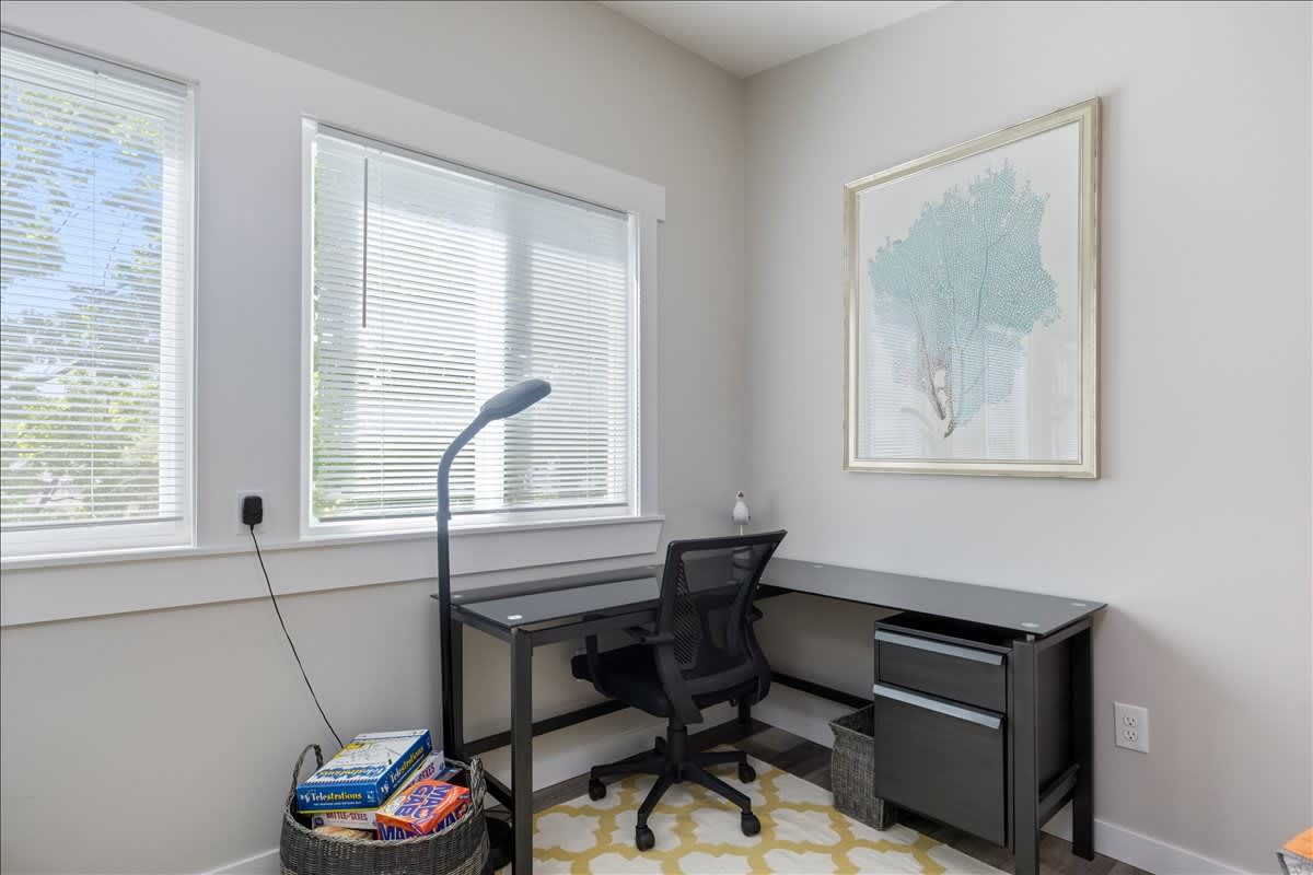 - The main entrance and parking are located near the bedroom level, with the main living area just one flight down—accessible by either the interior stairs or an exterior staircase.
