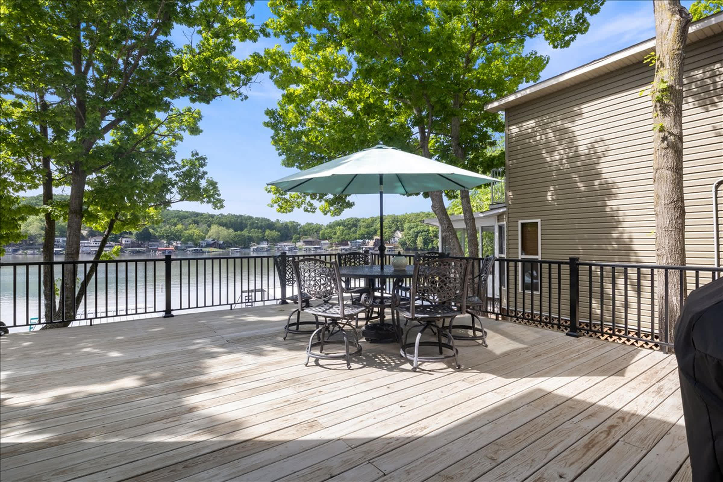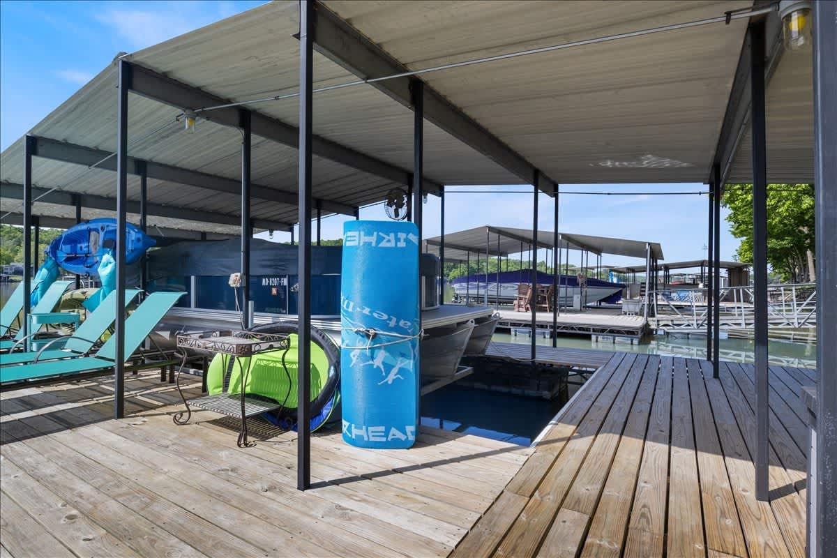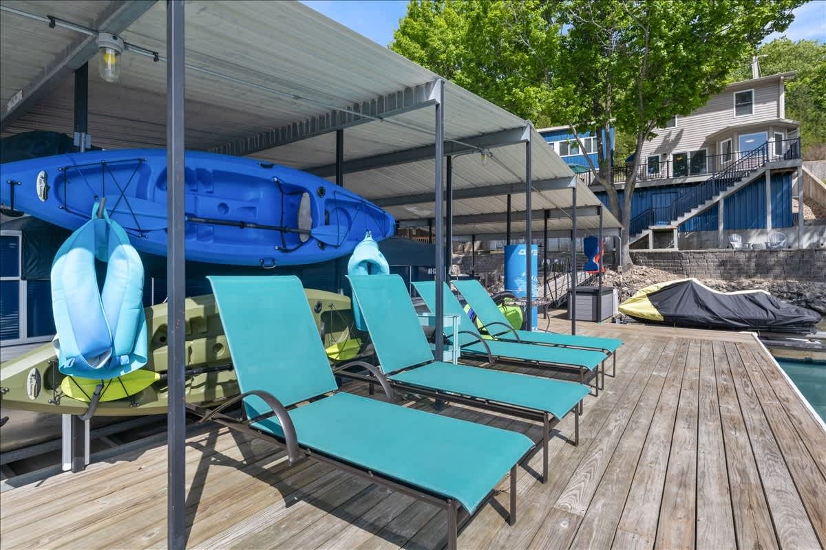 Step outside first and you’ll see why this home lives up to its name. The lakeside deck is set up for effortless outdoor living, complete with a table for al fresco meals, a grill ready for sunset cookouts, and easy lake access for spontaneous swims or paddles. Kayaks waits for morning adventures, while the private dock invites you to cast a line, dangle your feet in the water, or sink into the lounge seating and watch the lake drift by. From morning coffee on the deck to evenings by the gas fire pit and dock, every outdoor space invites long, unhurried days on the water.