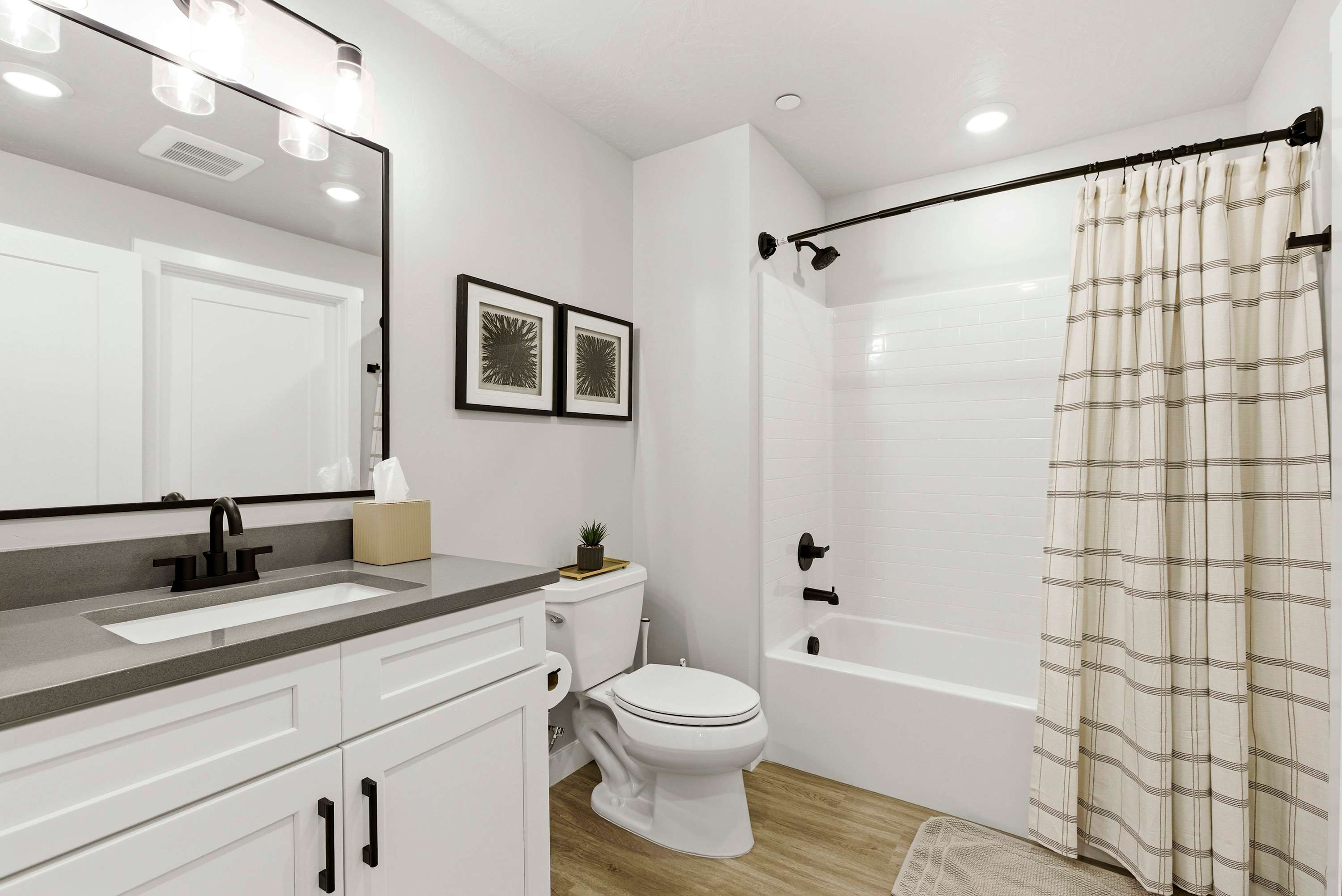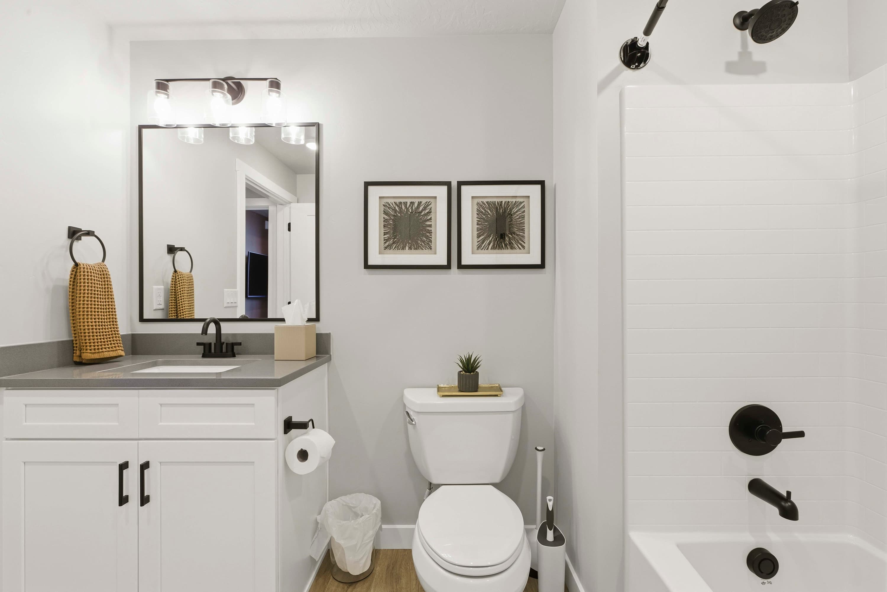 This home also includes a full guest bathroom with a single vanity and a shower/tub combo.