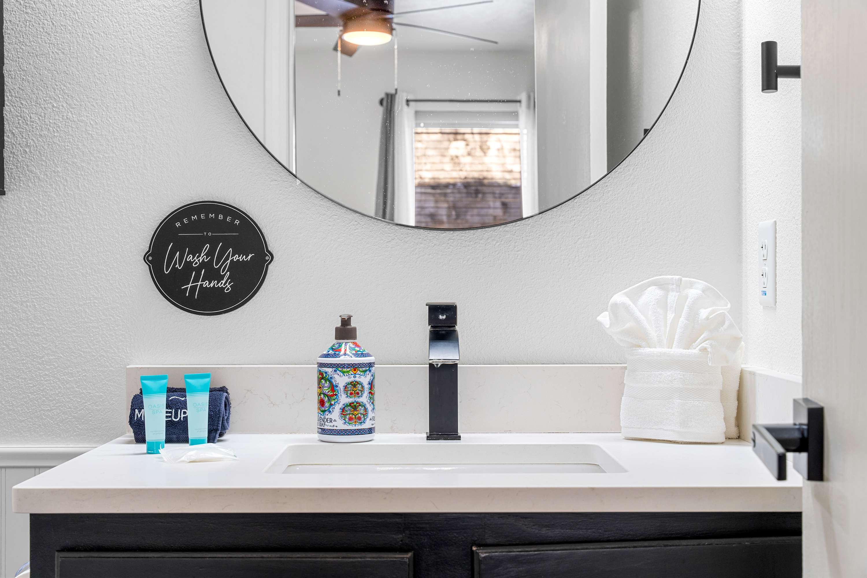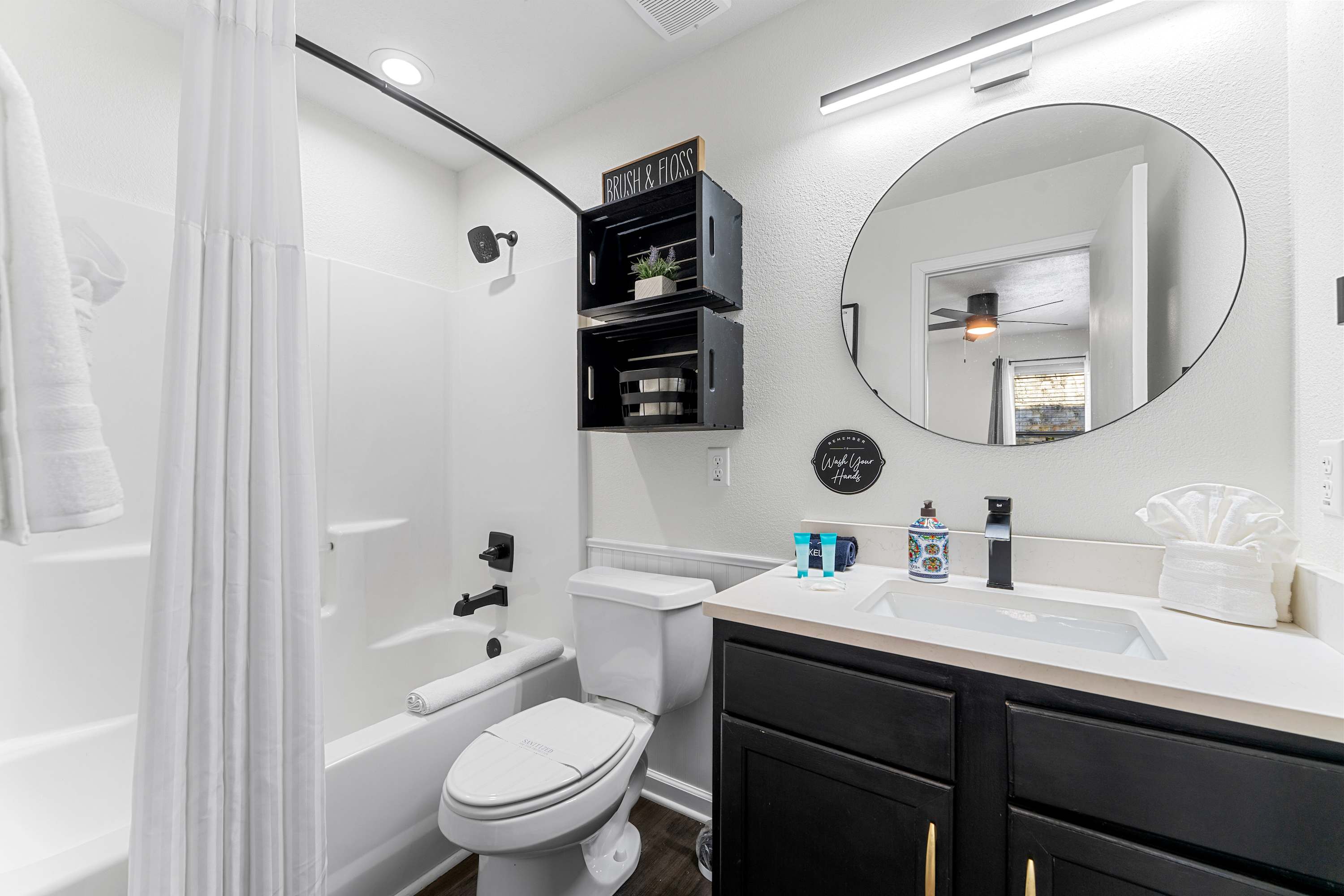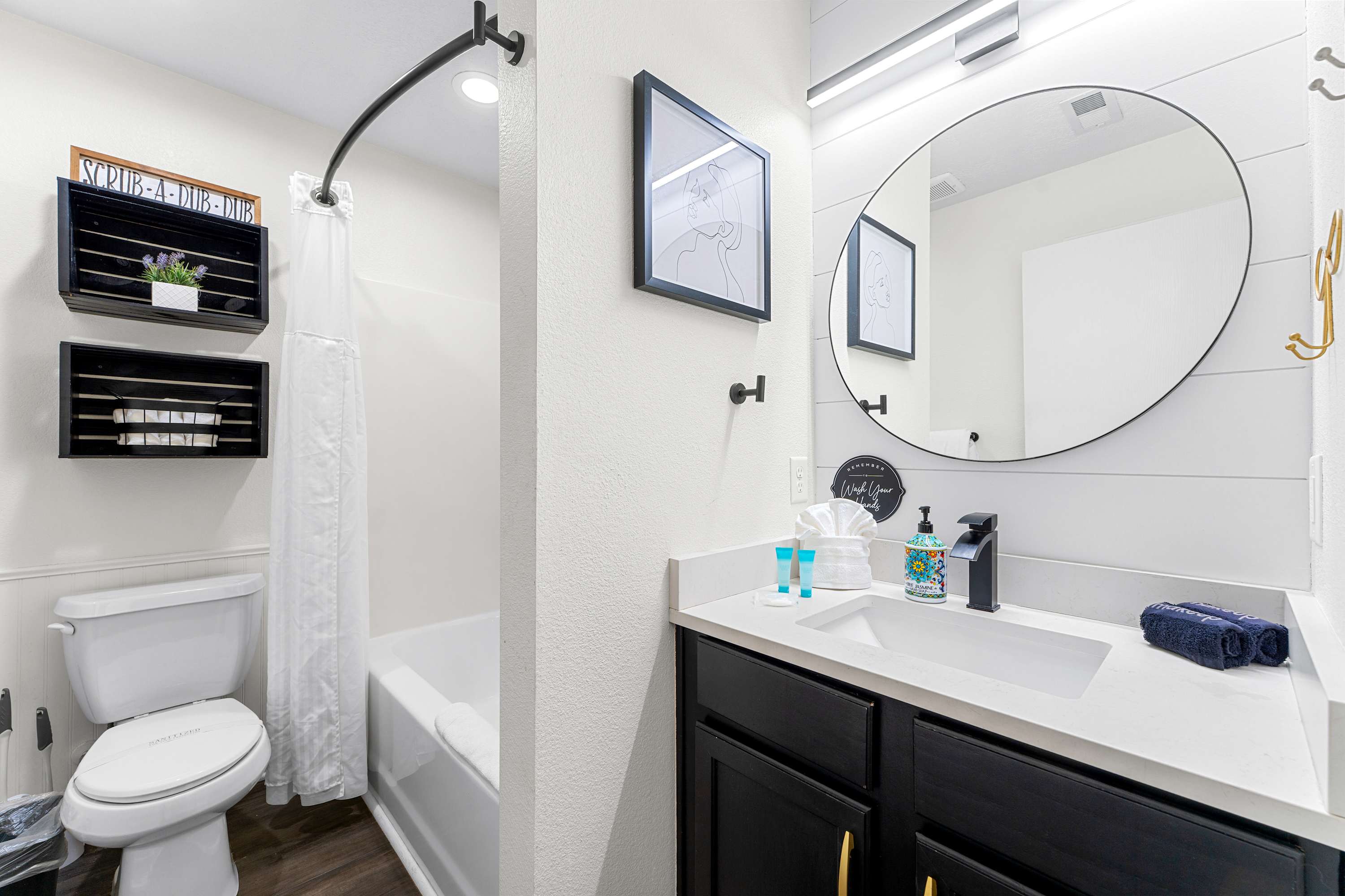 This home also includes an additional full guest bathroom with a single vanity and a shower/tub combo.