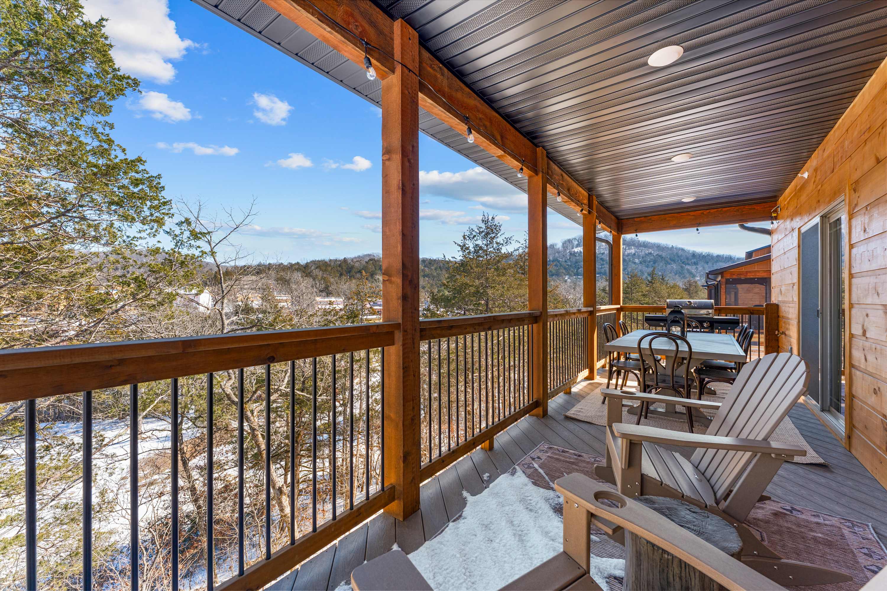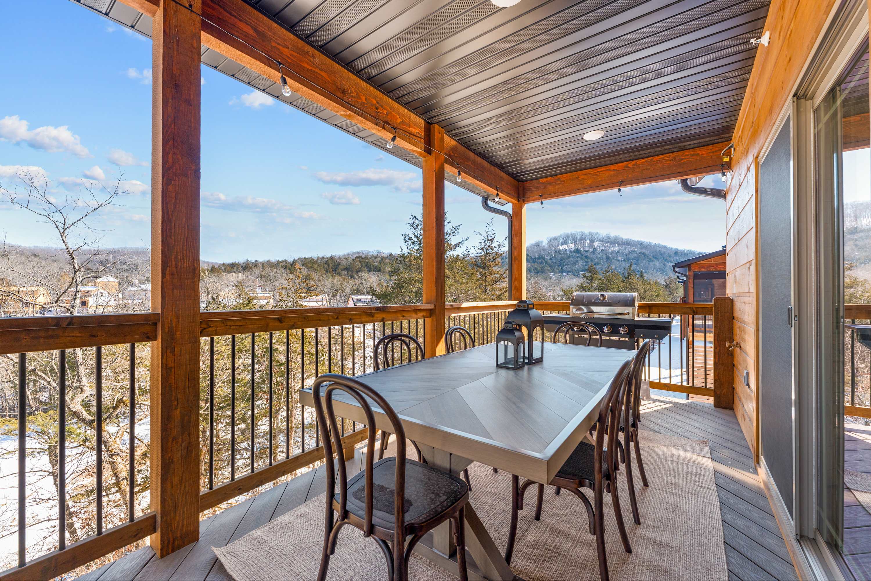 Timberline Hideaway is your mountain-style escape in Tall Timbers within Hollister. Known for its resort-style amenities and peaceful surroundings, guests can enjoy access to shared features like pools, outdoor recreation areas, and scenic trails, all while being just minutes from Table Rock Lake, Lake Taneycomo, and Downtown Branson. It’s the perfect blend of wooded seclusion and convenient access—ideal for guests who want both adventure and downtime wrapped into one unforgettable stay.