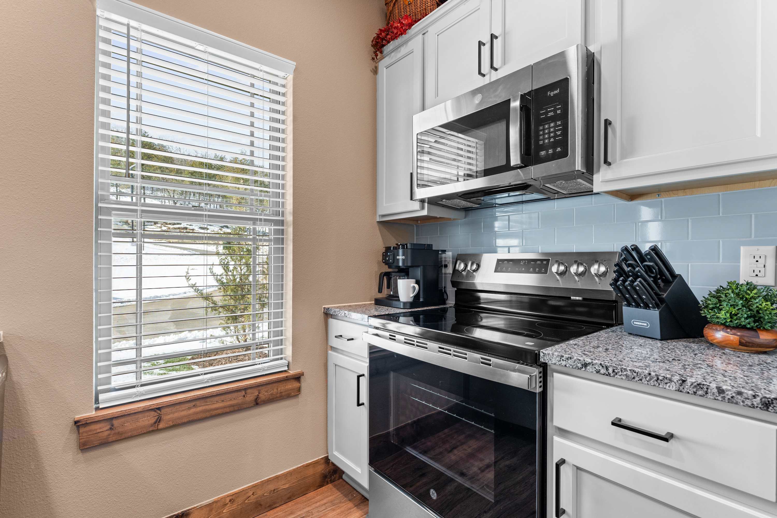 Inside, the home unfolds into warm, welcoming spaces designed for connection and comfort. The updated kitchen shines with stone countertops, a drip/Keurig coffee combo, and counter seating for four, while the dining table for six sets the stage for shared meals. The main living room is filled with natural light and invites relaxation with a cozy couch and two armchairs. Downstairs, the basement living room becomes an entertainment hub featuring a wraparound sofa, air hockey table, and an arcade game loaded with over 3,000 games, along with a smart TV—perfect for movie nights or friendly competition. Unwind on the lower patio, where a private hot tub and ample seating create the ultimate spot to relax under the stars, or head up to the upper-level deck for al fresco dining with mountain views. Timberline Hideaway is where cozy interiors, outdoor living, and scenic surroundings come together effortlessly.