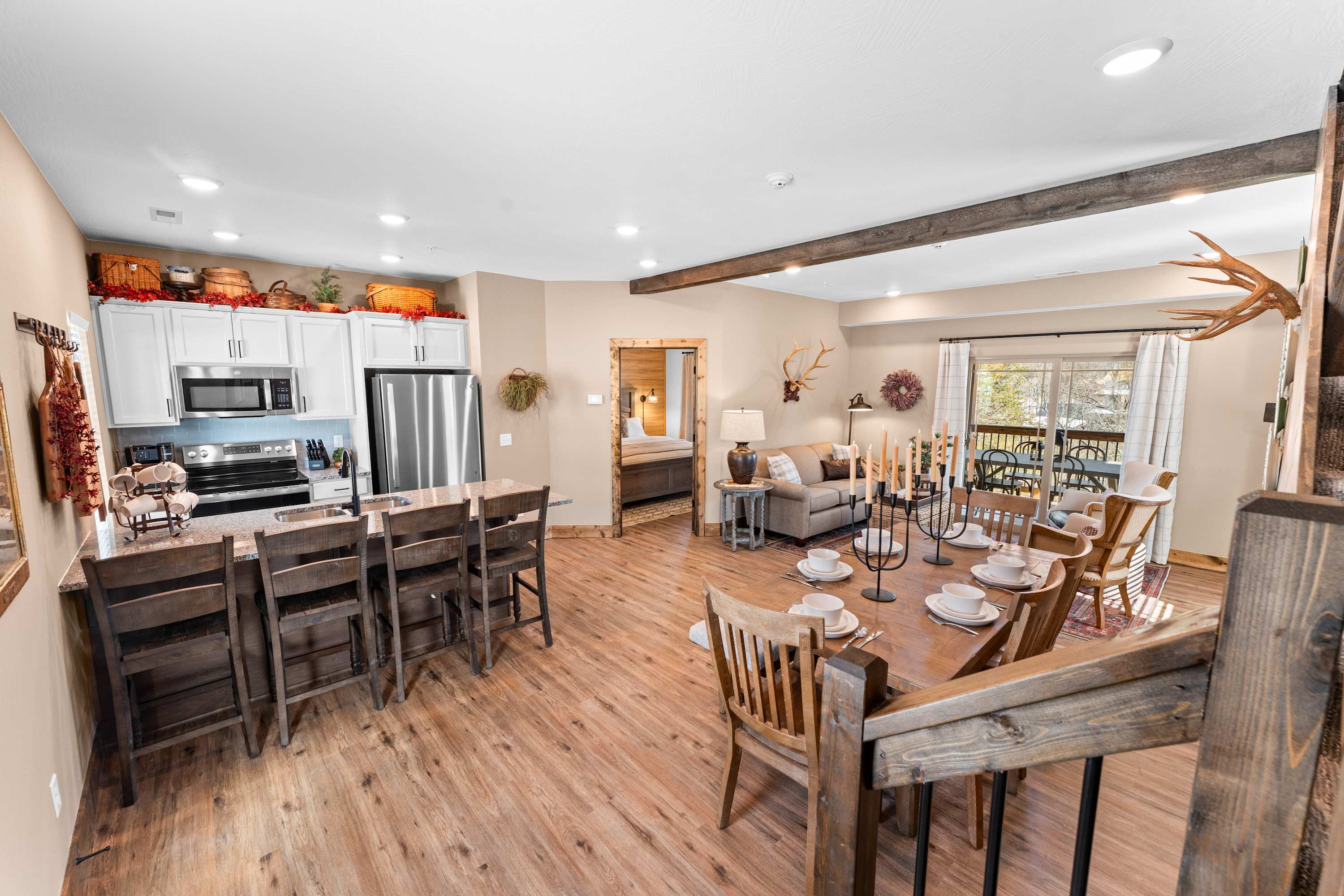 This enviable location also puts you within 15 minutes of downtown Branson where you are likely to stumble onto a live music festival, eclectic eateries, trendy boutiques, and local wineries among the more famed attractions of Branson like Silver Dollar City amusement park, Dolly Parton’s Stampede, Pirate Cove Adventure Golf, Bigfoot Fun Park, and the Titanic Museum. It’s no surprise that Branson has been dubbed the “Live Entertainment Capital of the World” considering there is truly something for everyone to enjoy. We recommend taking plenty of time to explore the area by walking, hopping on a bike, or using the free downtown trolley.