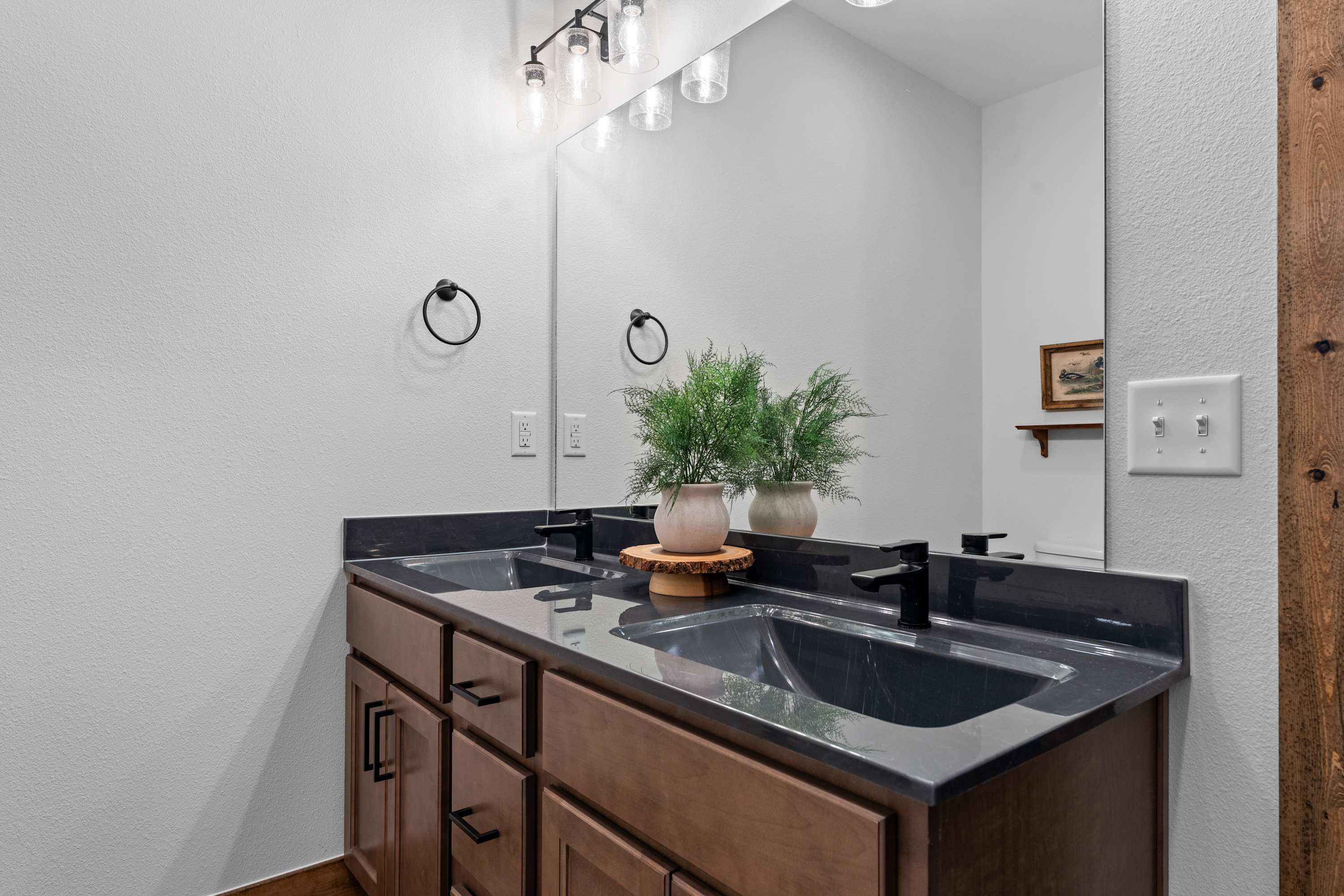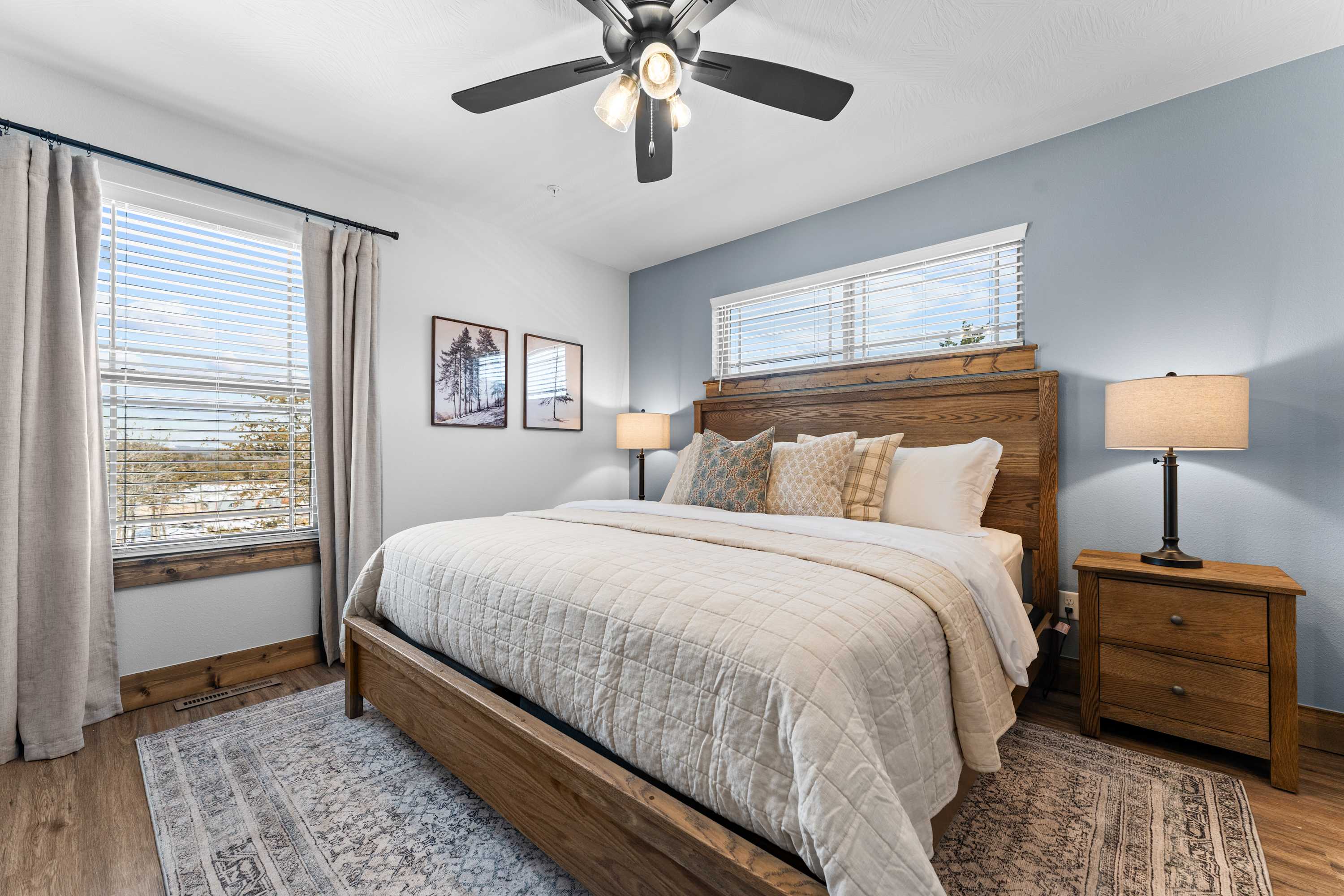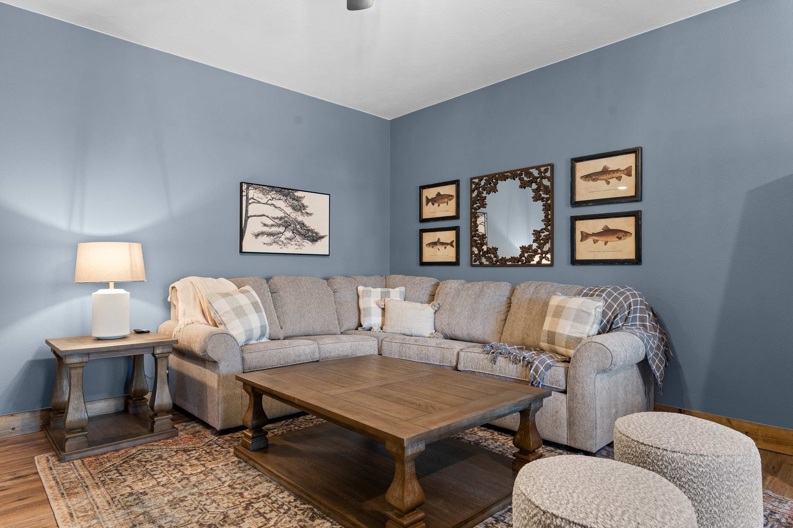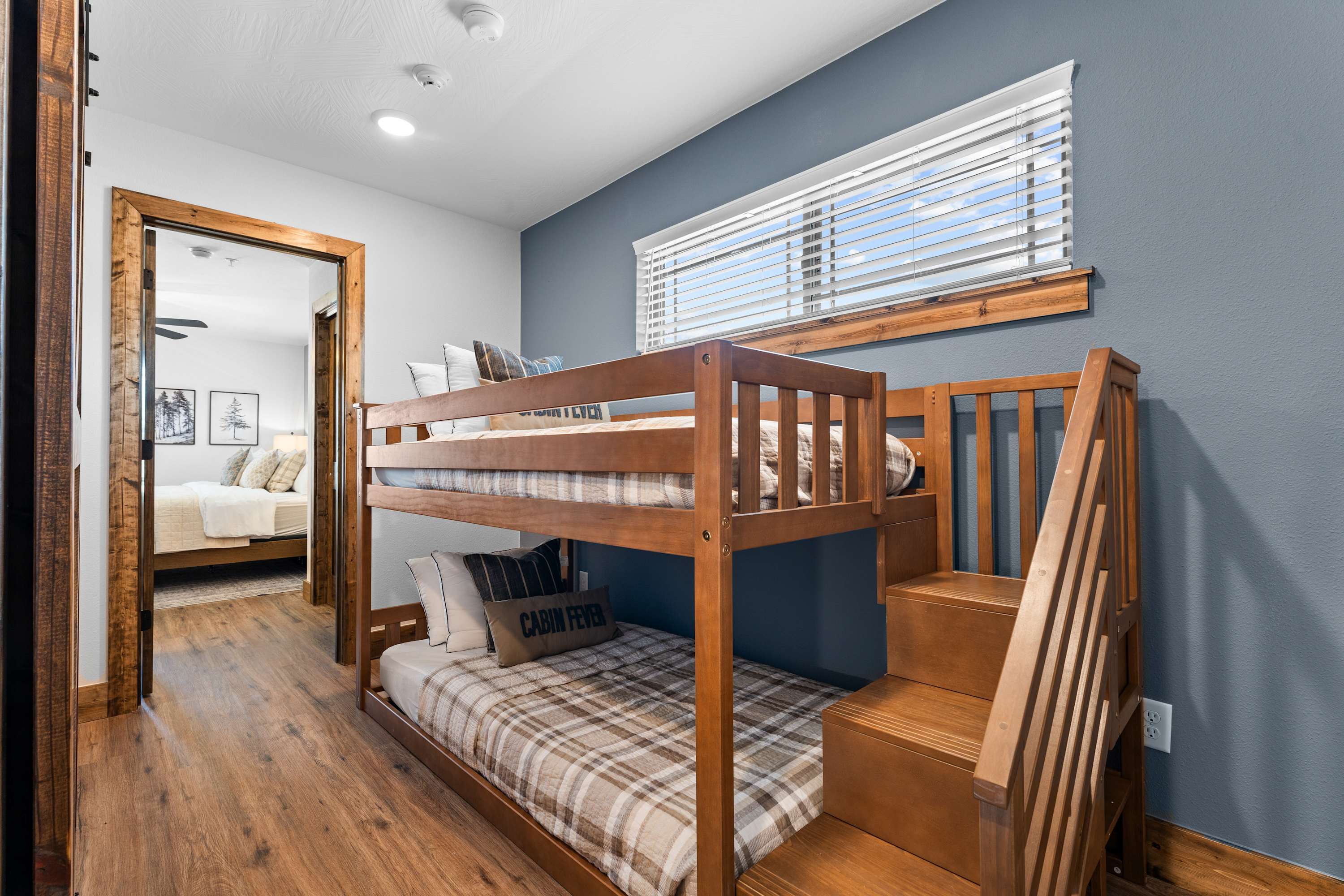 This home comfortably sleeps 10 guests between 3 private bedrooms, a queen size sleeper sofa in the basement living room, and a twin-over-twin bunkbed in the upstairs hall.