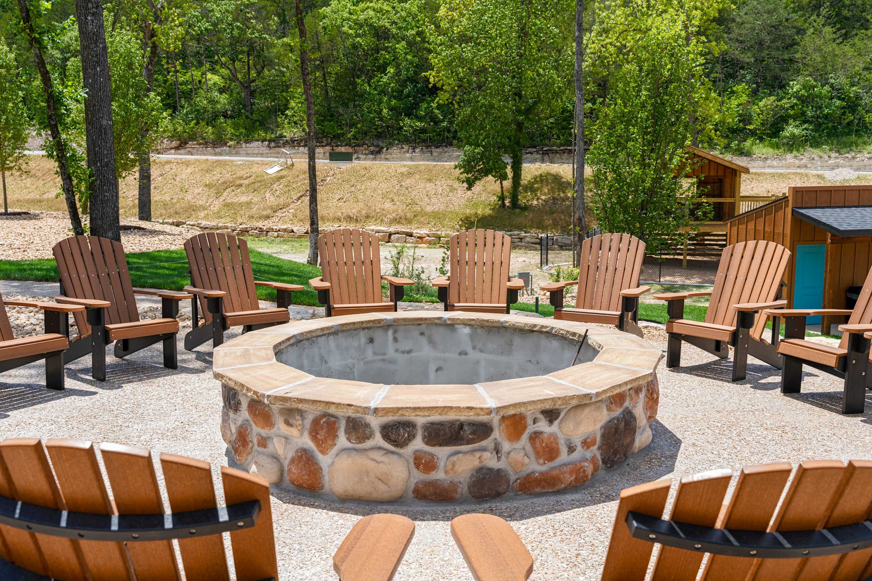 A resort-style experience families love awaits just beyond your door. Spend your days enjoying the peaceful wooded surroundings or exploring everything Tall Timbers Camp has to offer, including an indoor pool with a water slide, an expansive zero-entry outdoor pool with cabanas, live music, scenic hiking trails, multiple recreational ponds, sports courts, a playground, seasonal food trucks, a general store, and golf cart rentals.