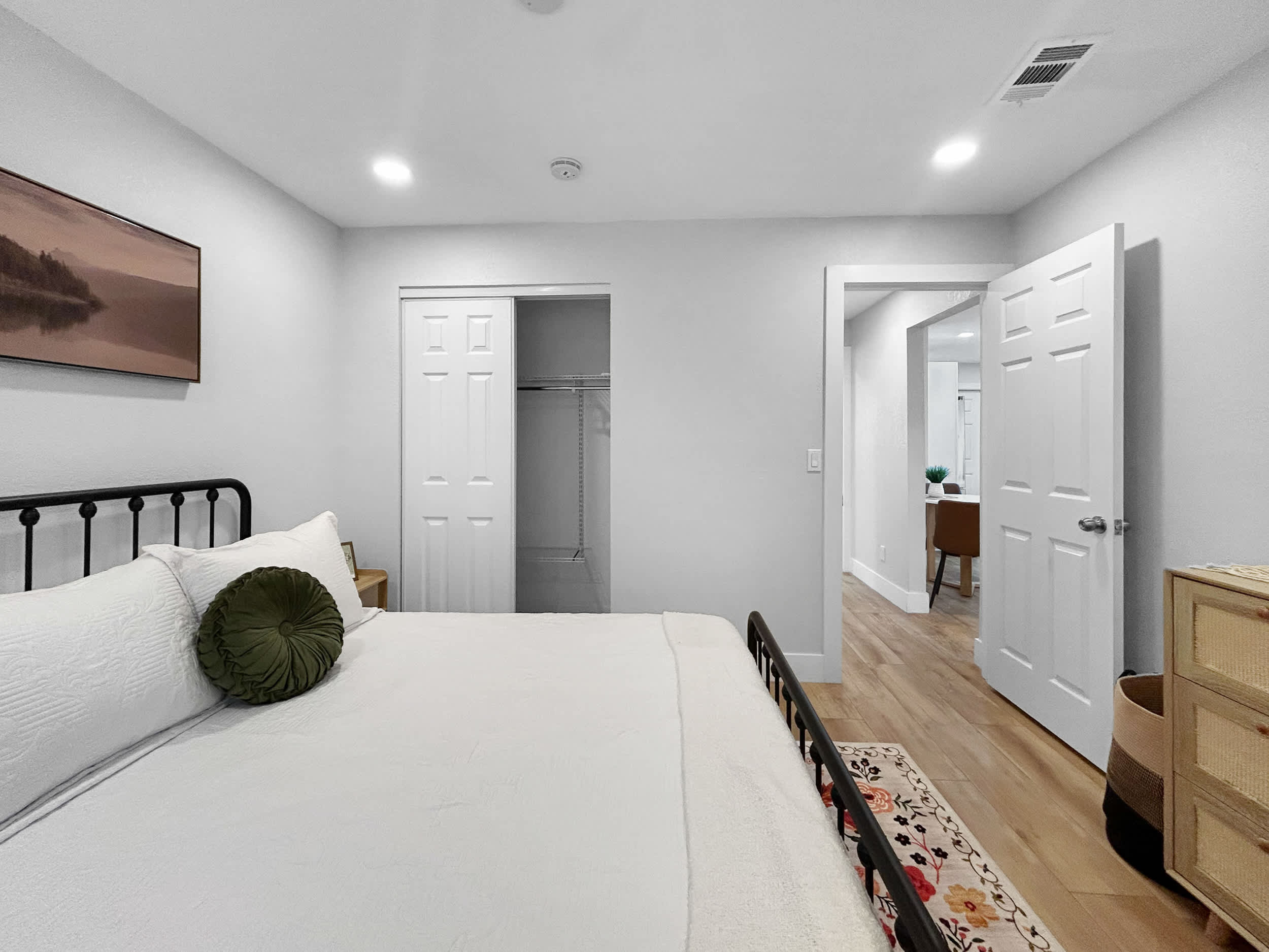 Unit A comfortably sleeps 3 guests between 2 private bedrooms.