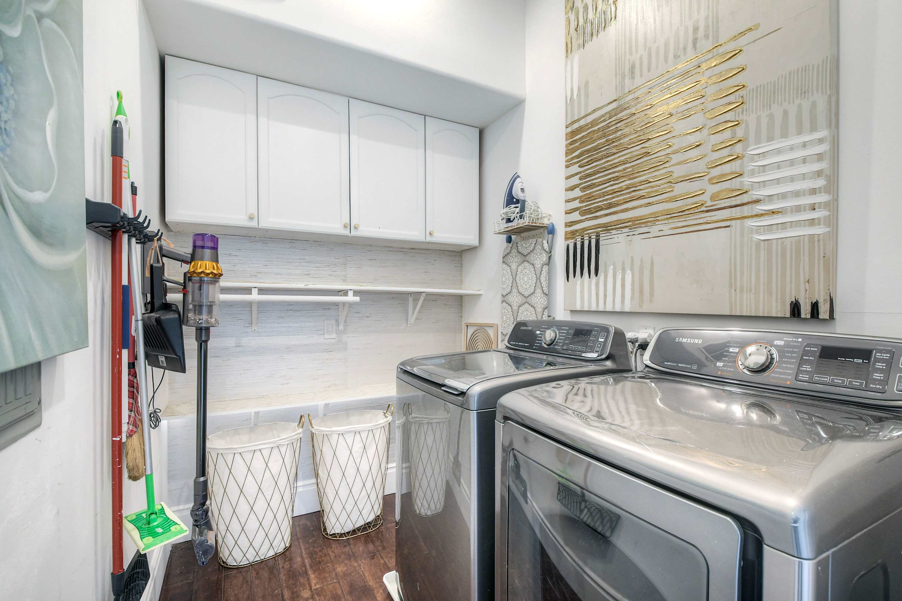 • Washer and dryer in home.