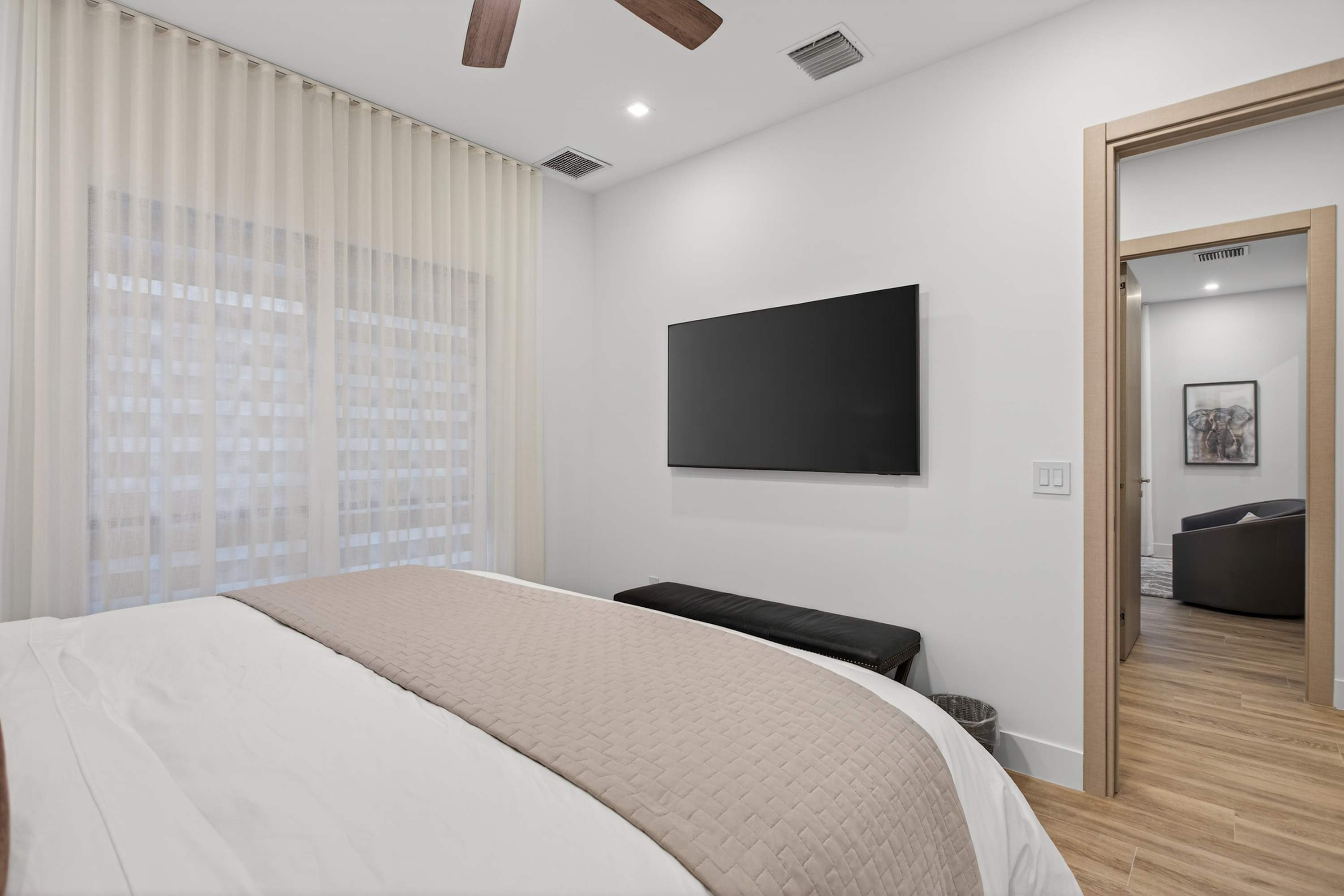Bedroom #5 includes a queen size bed and a smart TV.