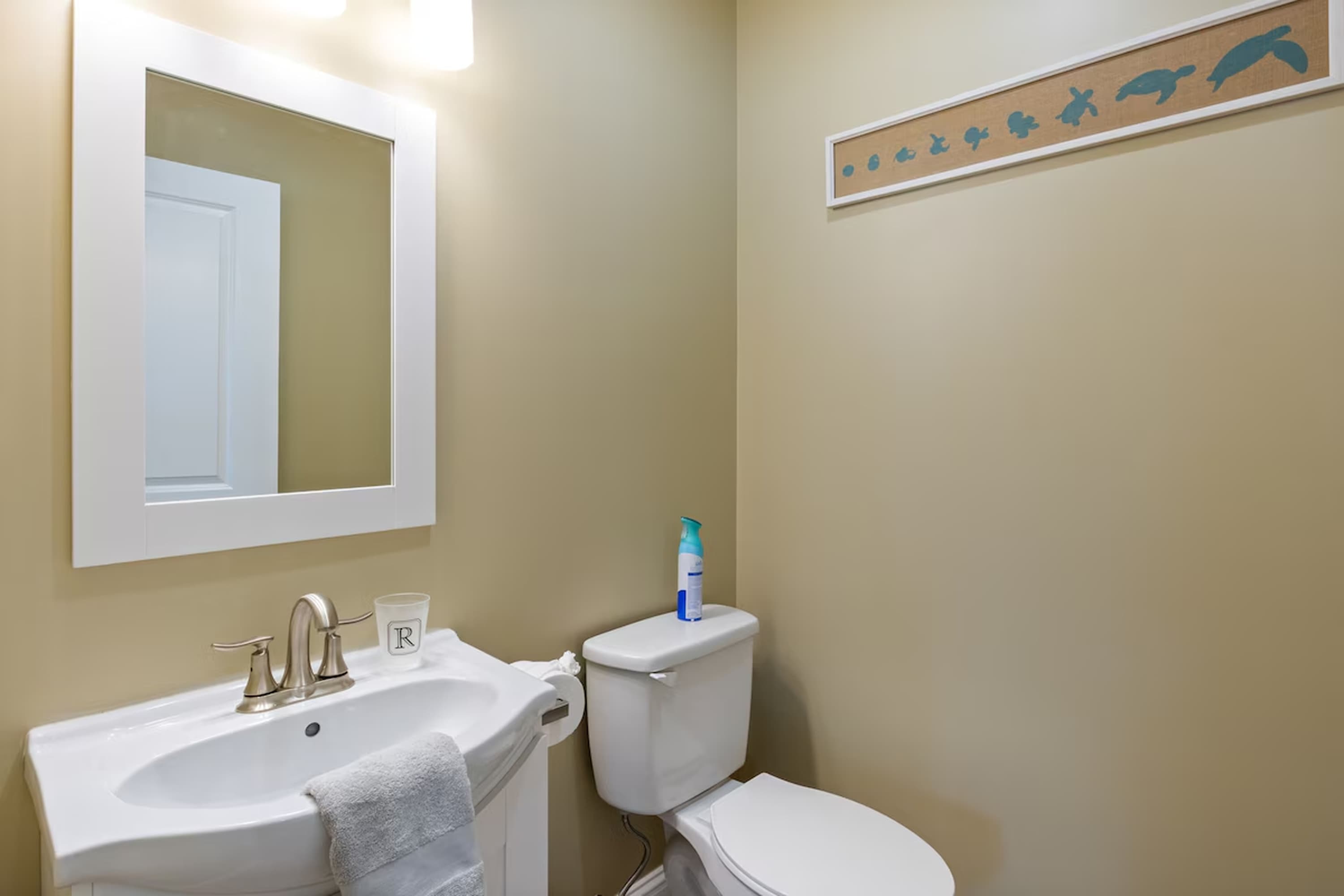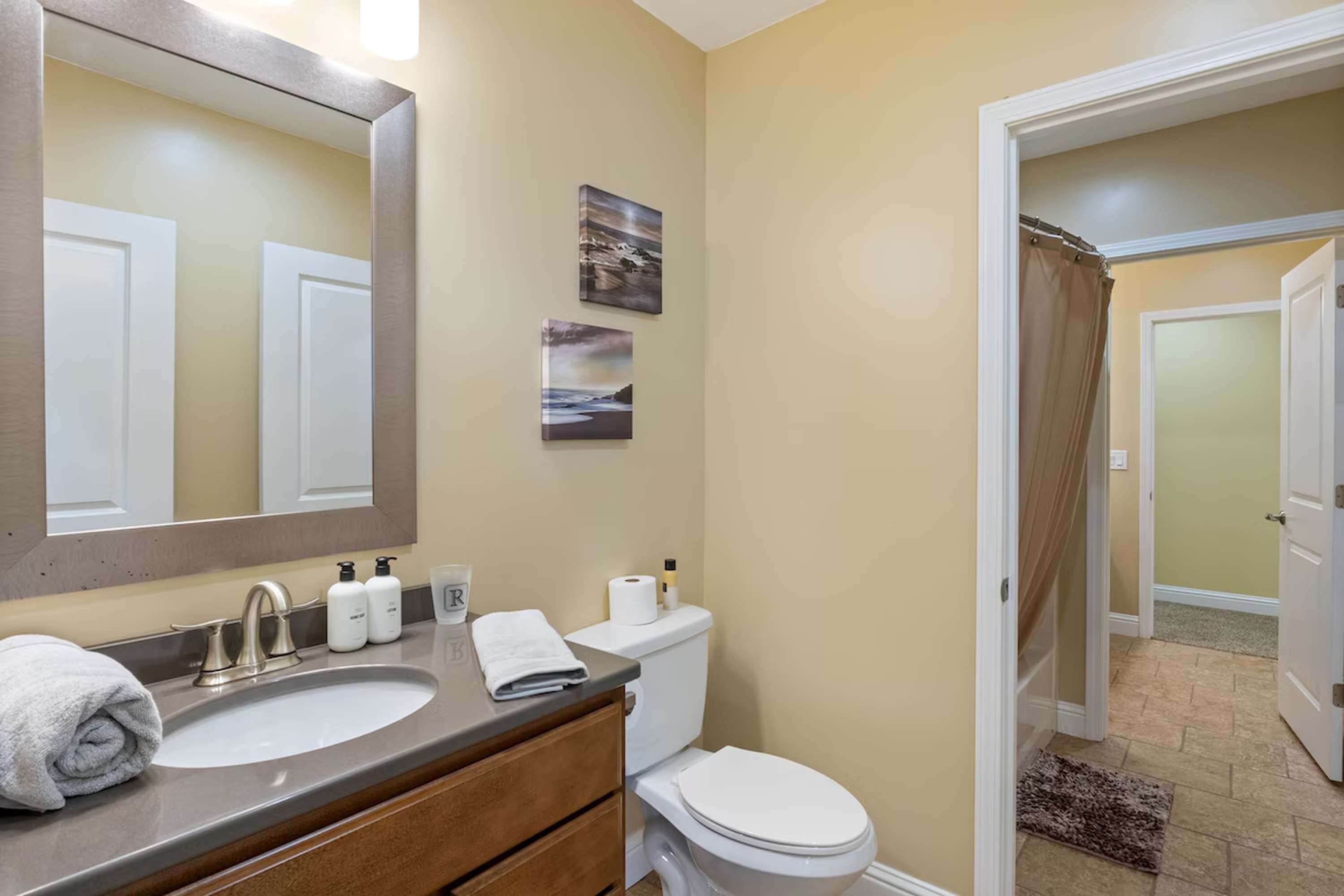 This home also includes a half bathroom and an additional full bathroom with a single vanity and a shower/tub combo.
