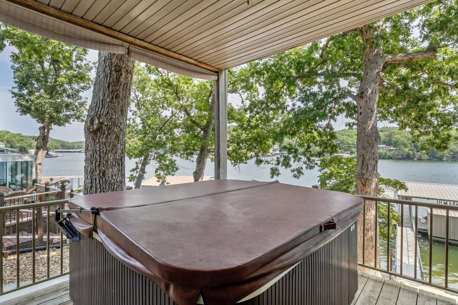 Entertainment continues with a dedicated game room featuring Blitz Arcade, Ms. Pac-Man, and an Infinity Game Table with 40+ digital games , plus a separate media/movie room for immersive movie nights. Outdoors is where Eagle Ridge truly shines, offering multiple spaces to enjoy the lake views. Dine on the covered deck with a table for al fresco meals, gather around the raised patio fire pit while soaking in sweeping lake vistas, or head to the lower patio to relax in the hot tub, fire up the BBQ grill, or launch the provided kayaks. Whether you’re boating, fishing the great crappie beds around the dock, relaxing, or entertaining, Eagle Ridge delivers an unforgettable Lake of the Ozarks escape.