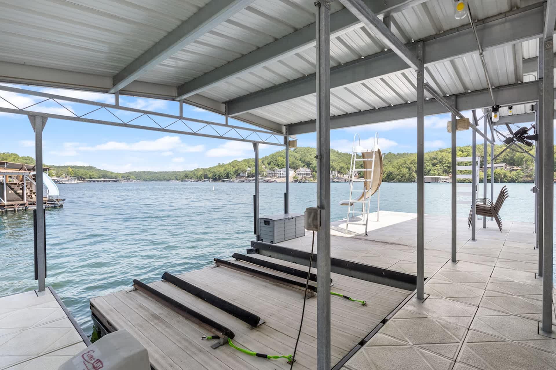 • This home has a private dock with one 12x26 boat slip for guest use and two PWC lifts. The other boat slip will not be available for guest use and will be occupied by the owners' boat during all guest visits.