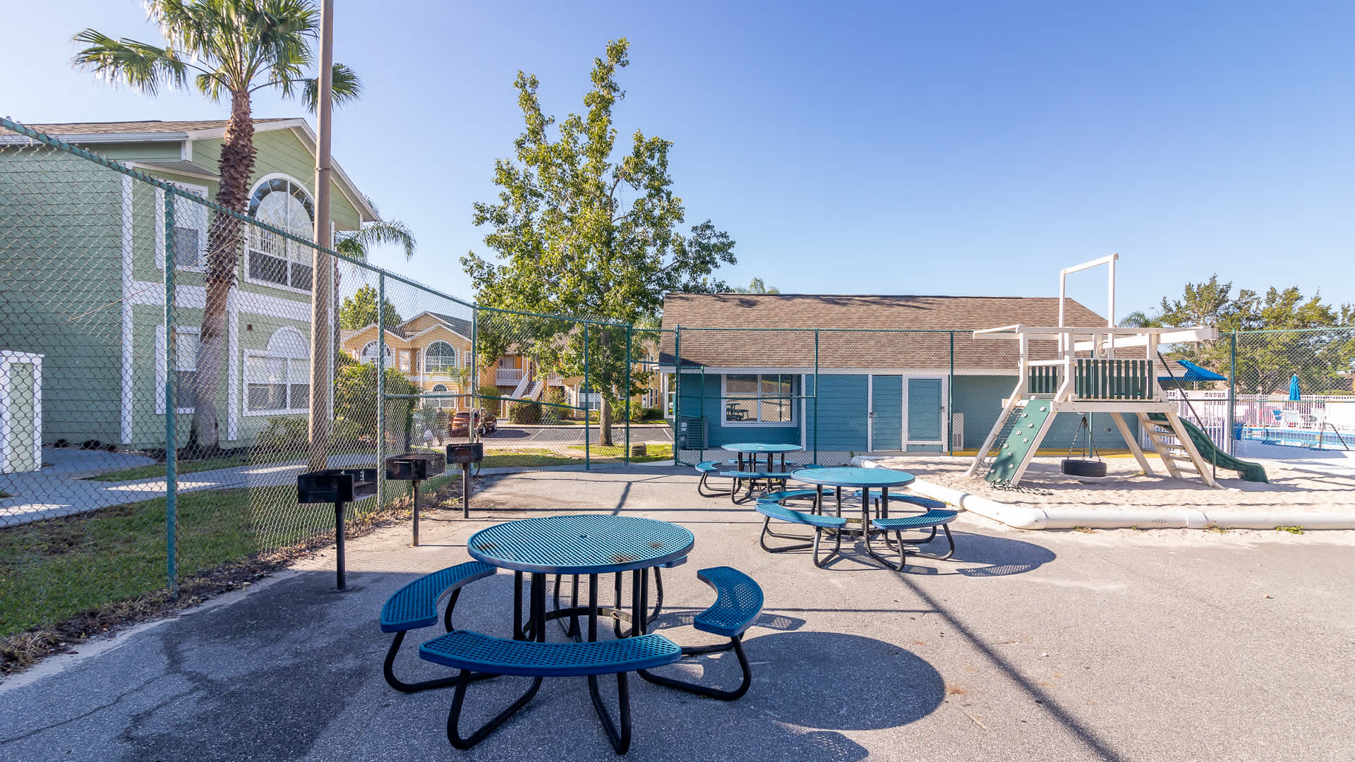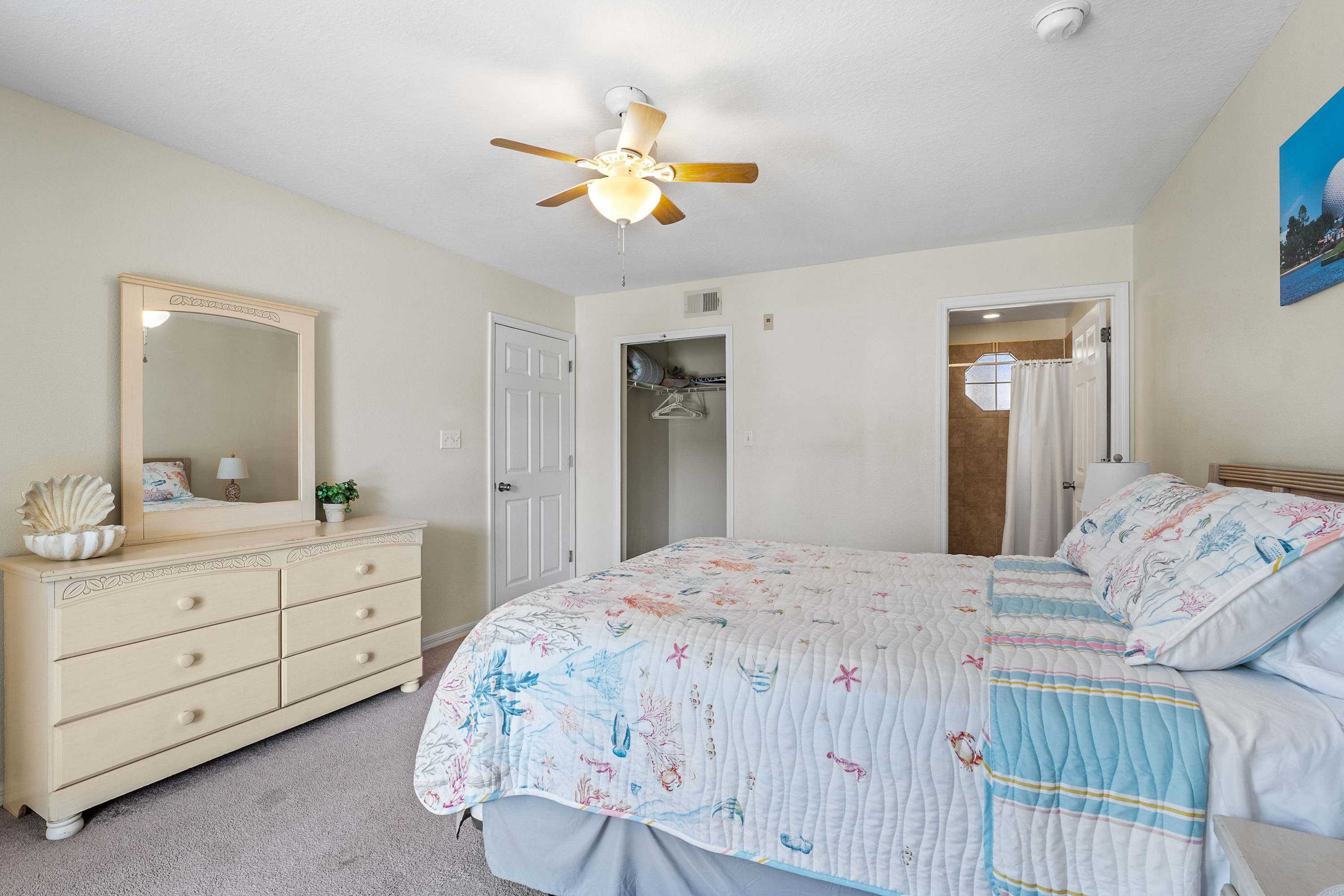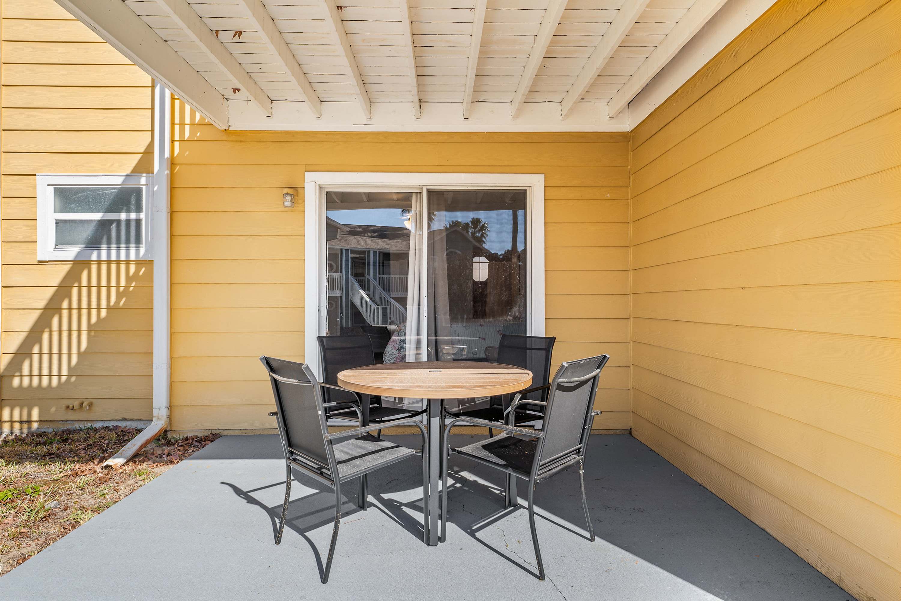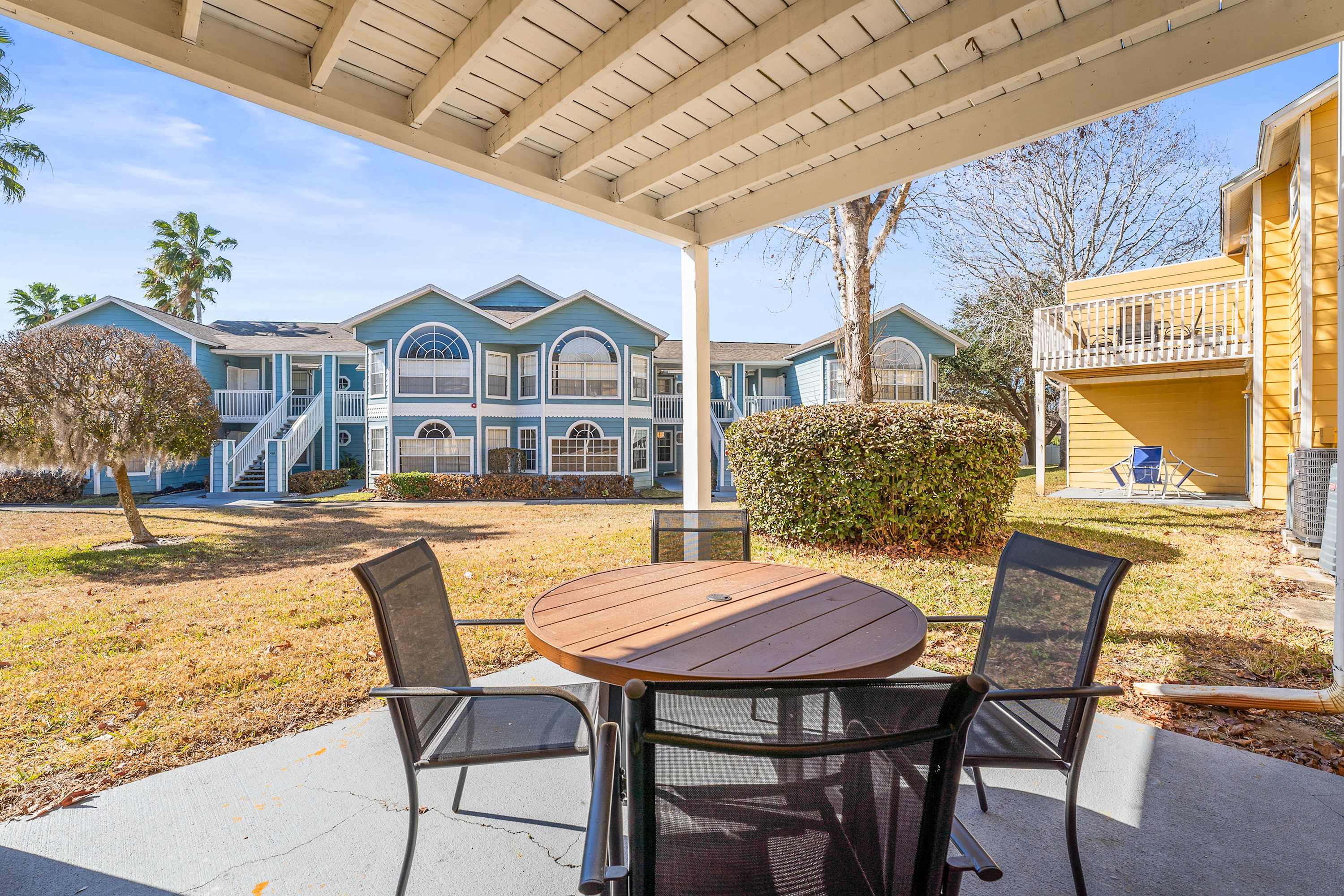 Step outside to your private patio, where a large shaded overhang creates a cool, relaxing retreat. With a table seating four, it’s the perfect spot for morning coffee, al fresco meals, or winding down after a day of adventure. Offering comfort, privacy, and prime access to Orlando’s top attractions, Easy Days At Club Island truly feels like your home-away-from-home near the magic.
