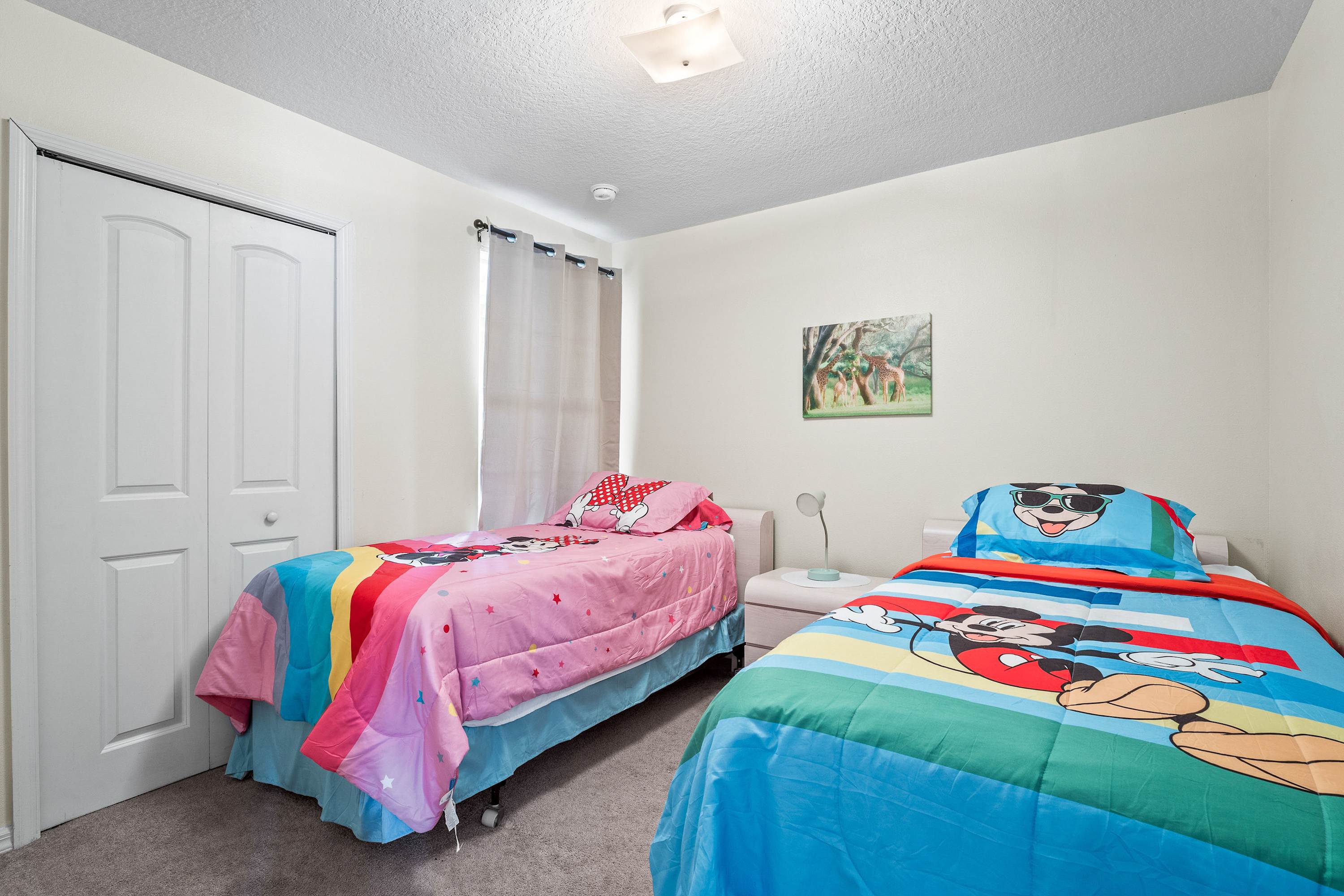 Bedroom #3 is Mickey & Minnie Mouse themed and includes 2 twin size beds.