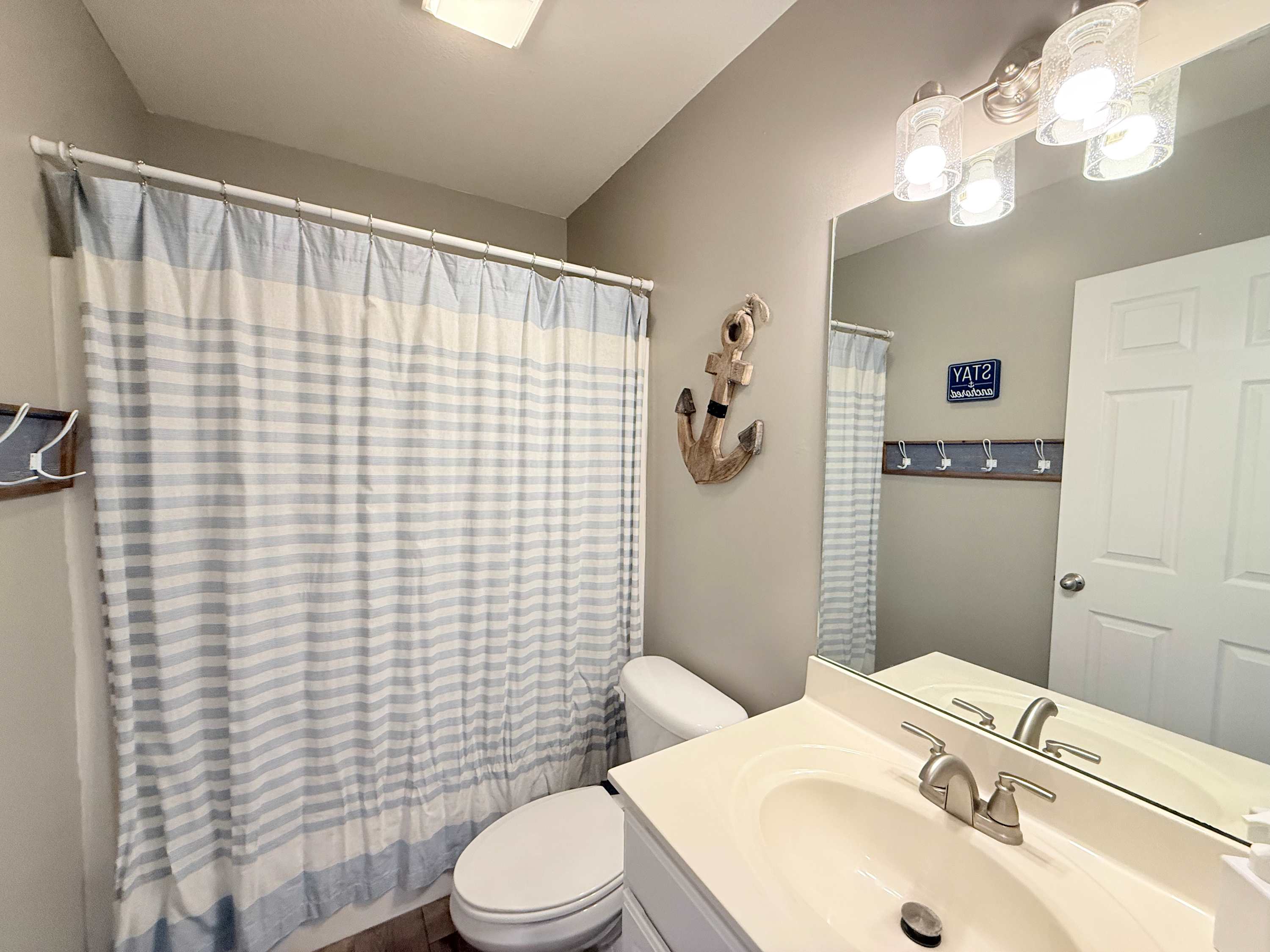 This home also includes an additional full guest bathroom with a single vanity and a shower/tub combo.