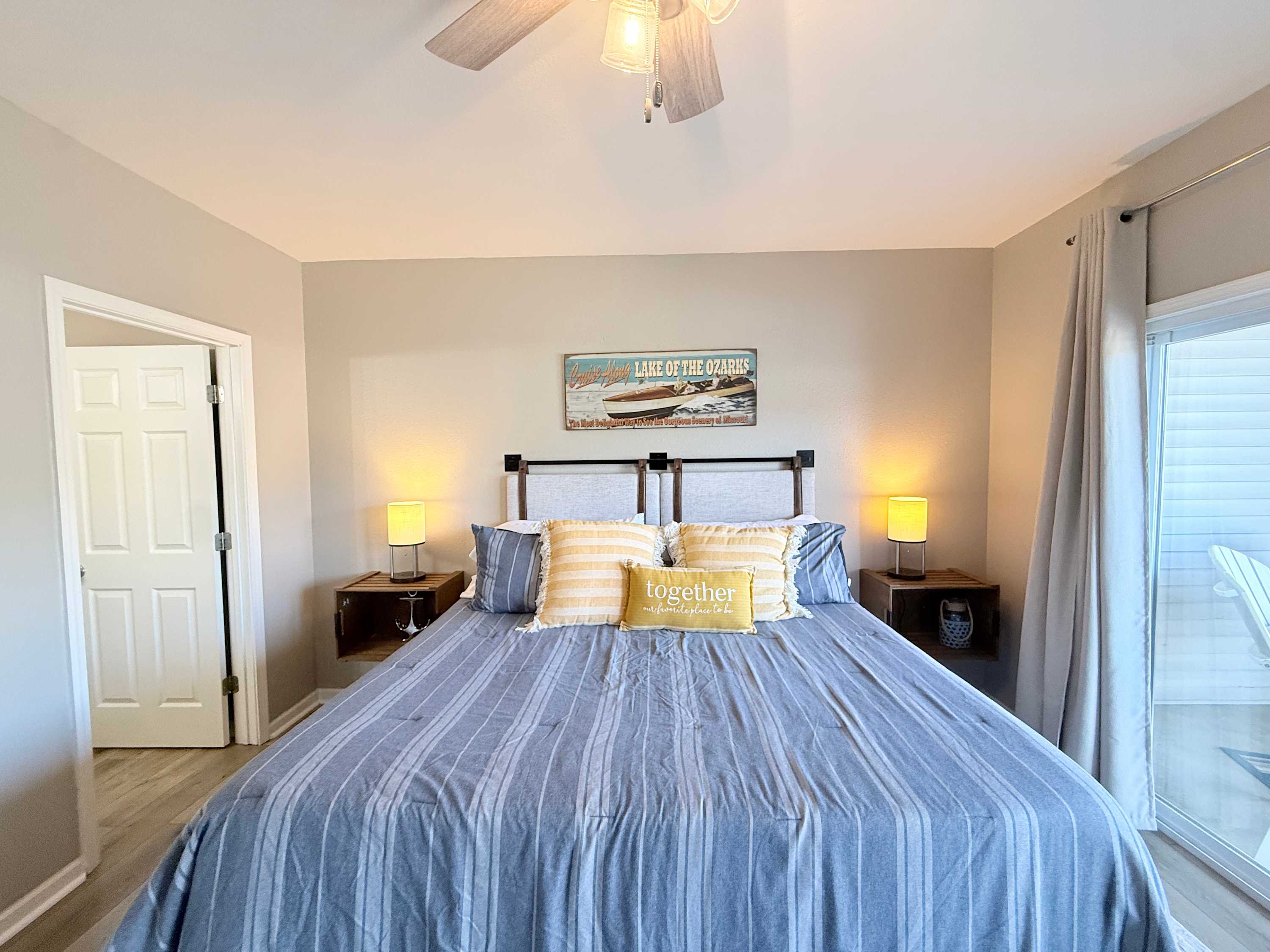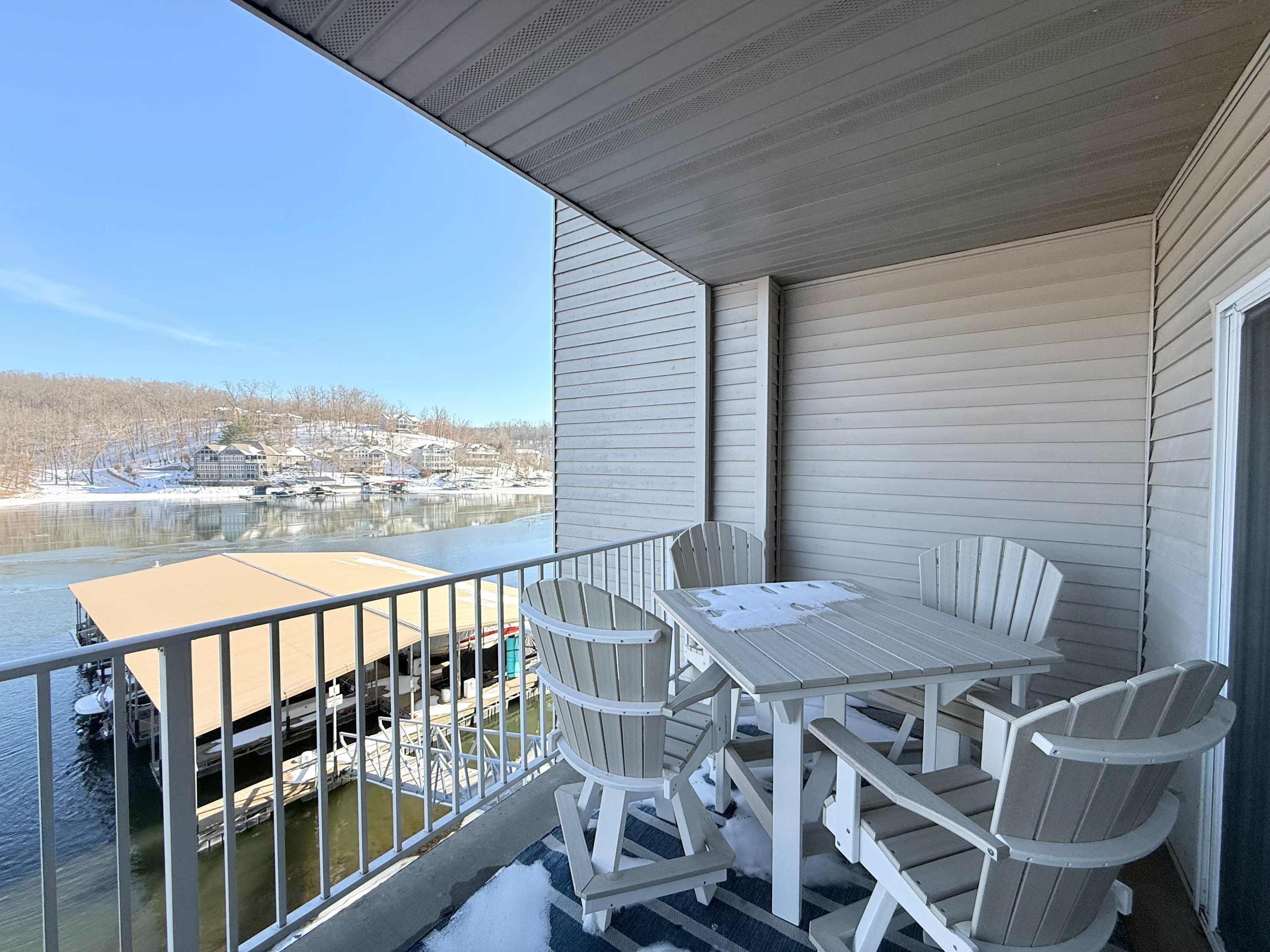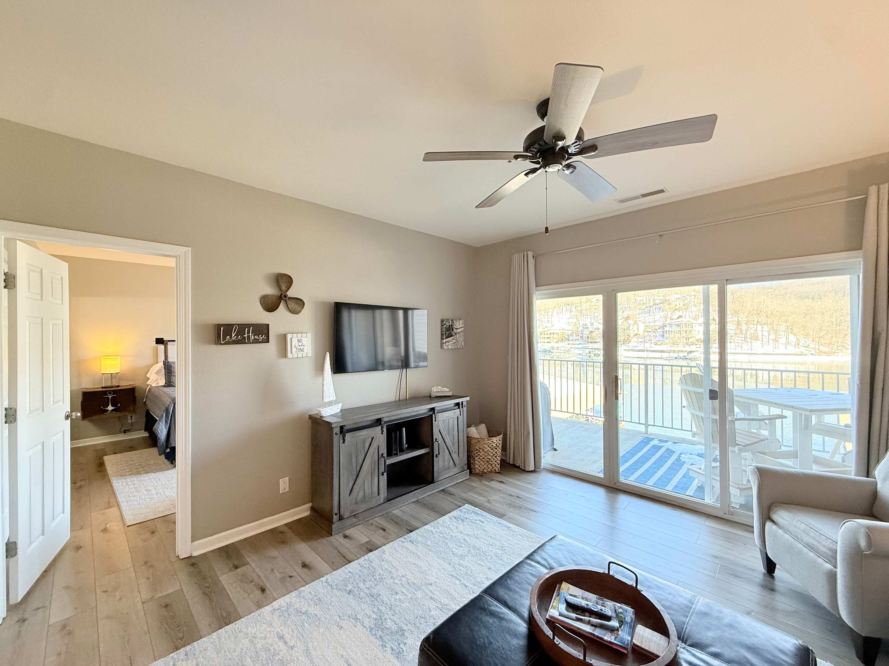 Large sliding glass doors lead you straight to the private lakefront balcony, where a table for four sets the stage for al fresco meals with direct water views. Sip your morning coffee as the sun rises over the lake or enjoy dinner as the water reflects the evening sky. With comfort inside and unforgettable views outside, Lakeside Sunrise is a relaxing retreat you’ll want to return to year after year.