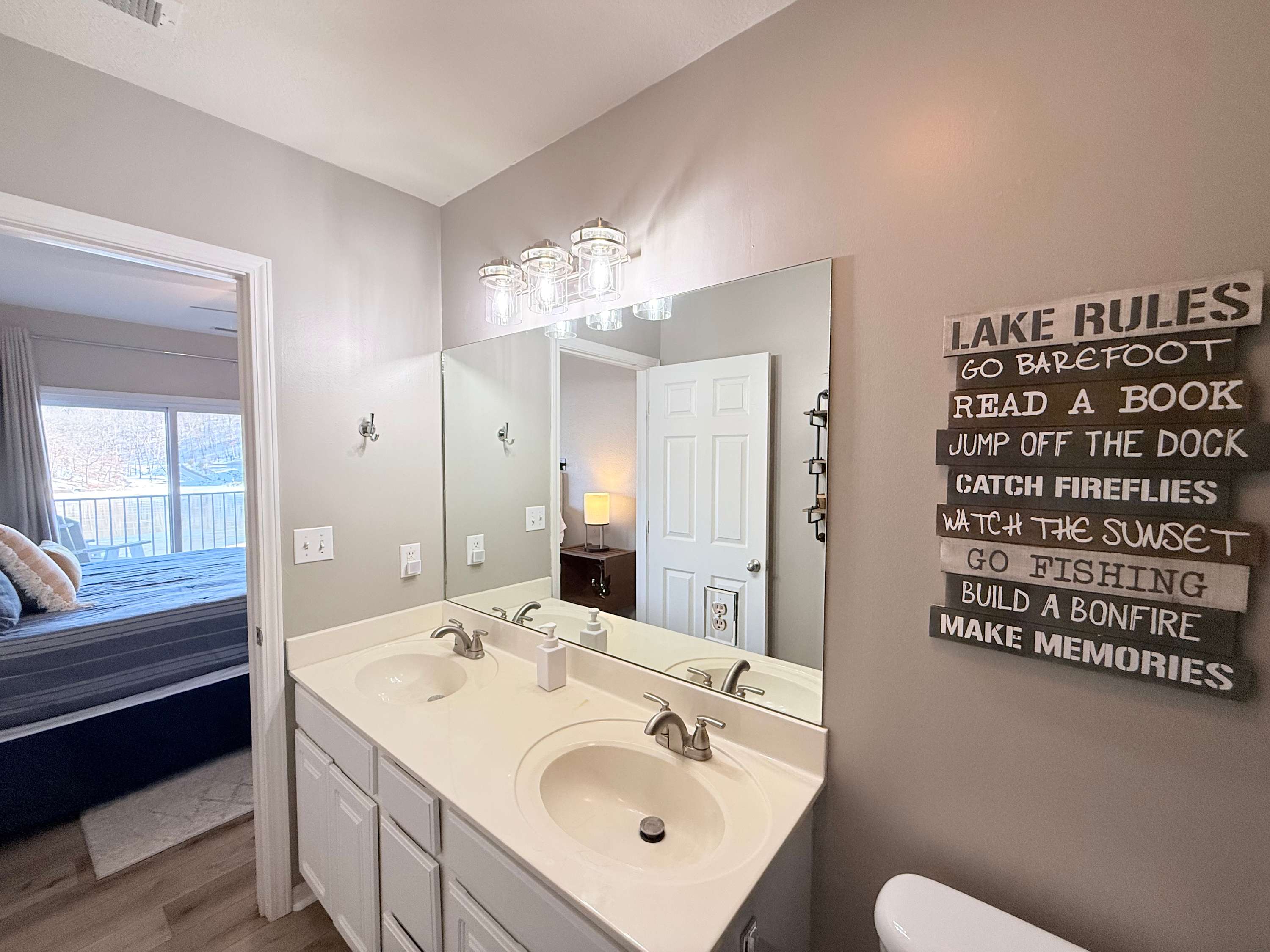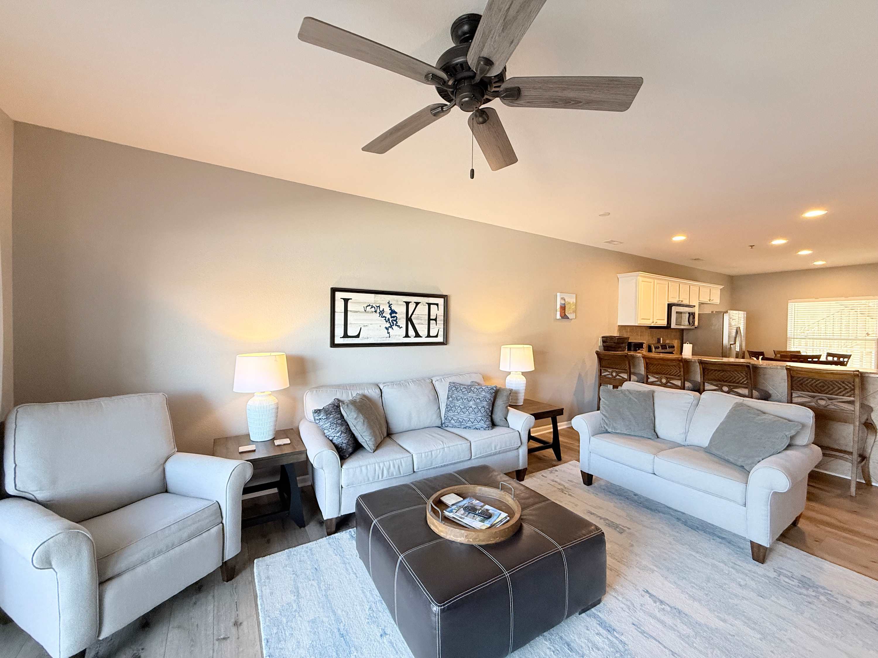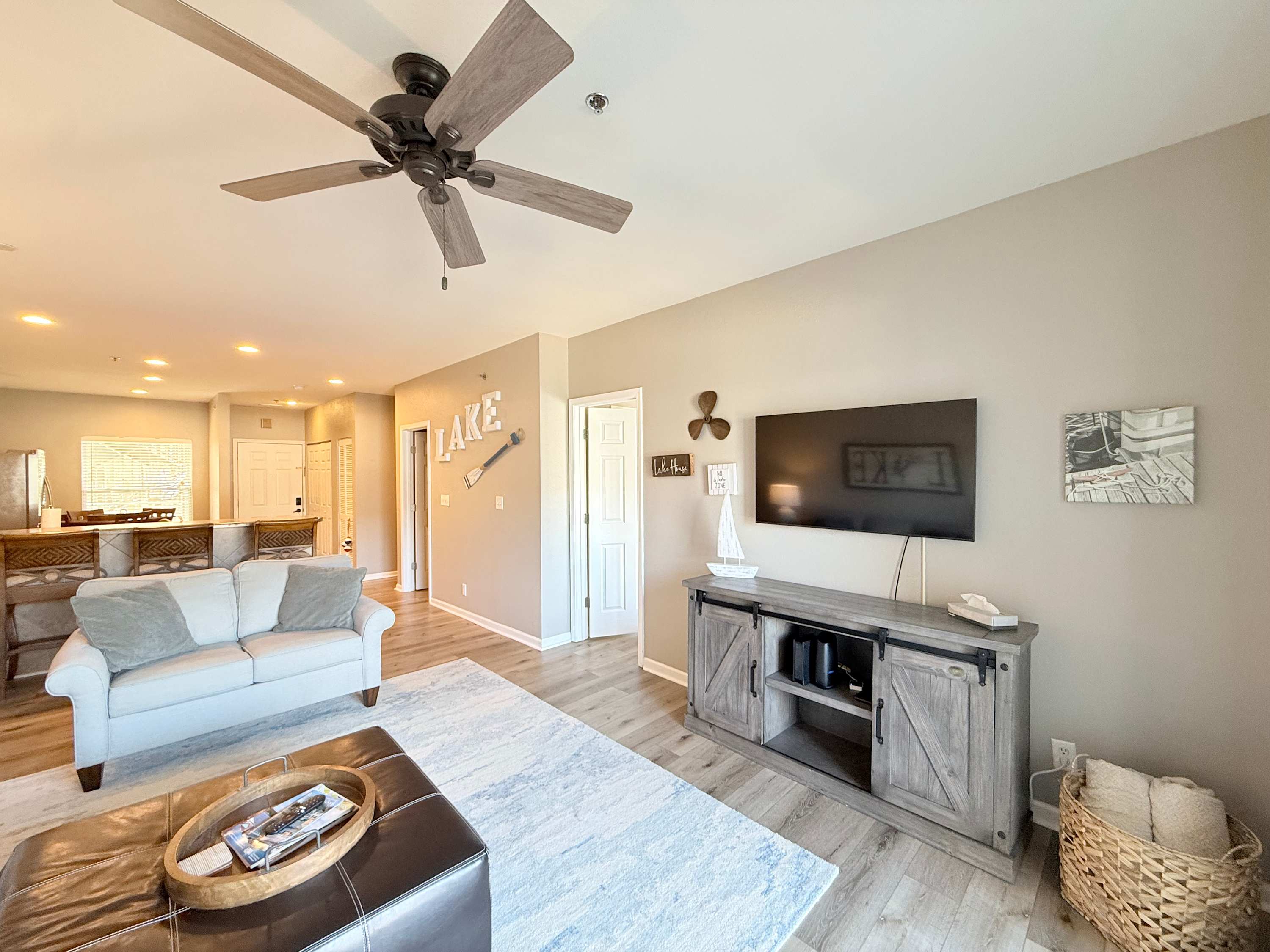 Large sliding glass doors lead you straight to the private lakefront balcony, where a table for four sets the stage for al fresco meals with direct water views. Sip your morning coffee as the sun rises over the lake or enjoy dinner as the water reflects the evening sky. With comfort inside and unforgettable views outside, Lakeside Sunrise is a relaxing retreat you’ll want to return to year after year.