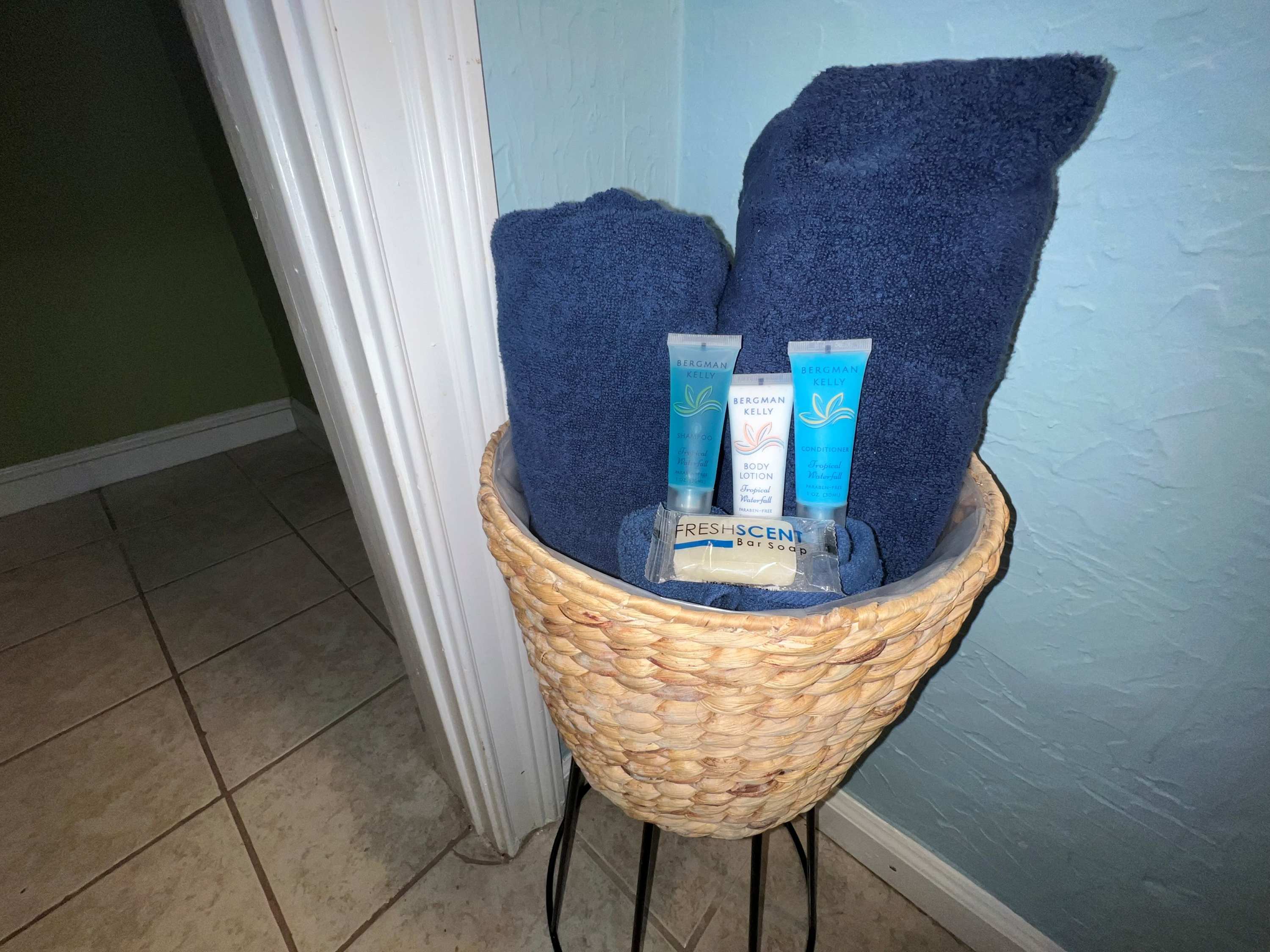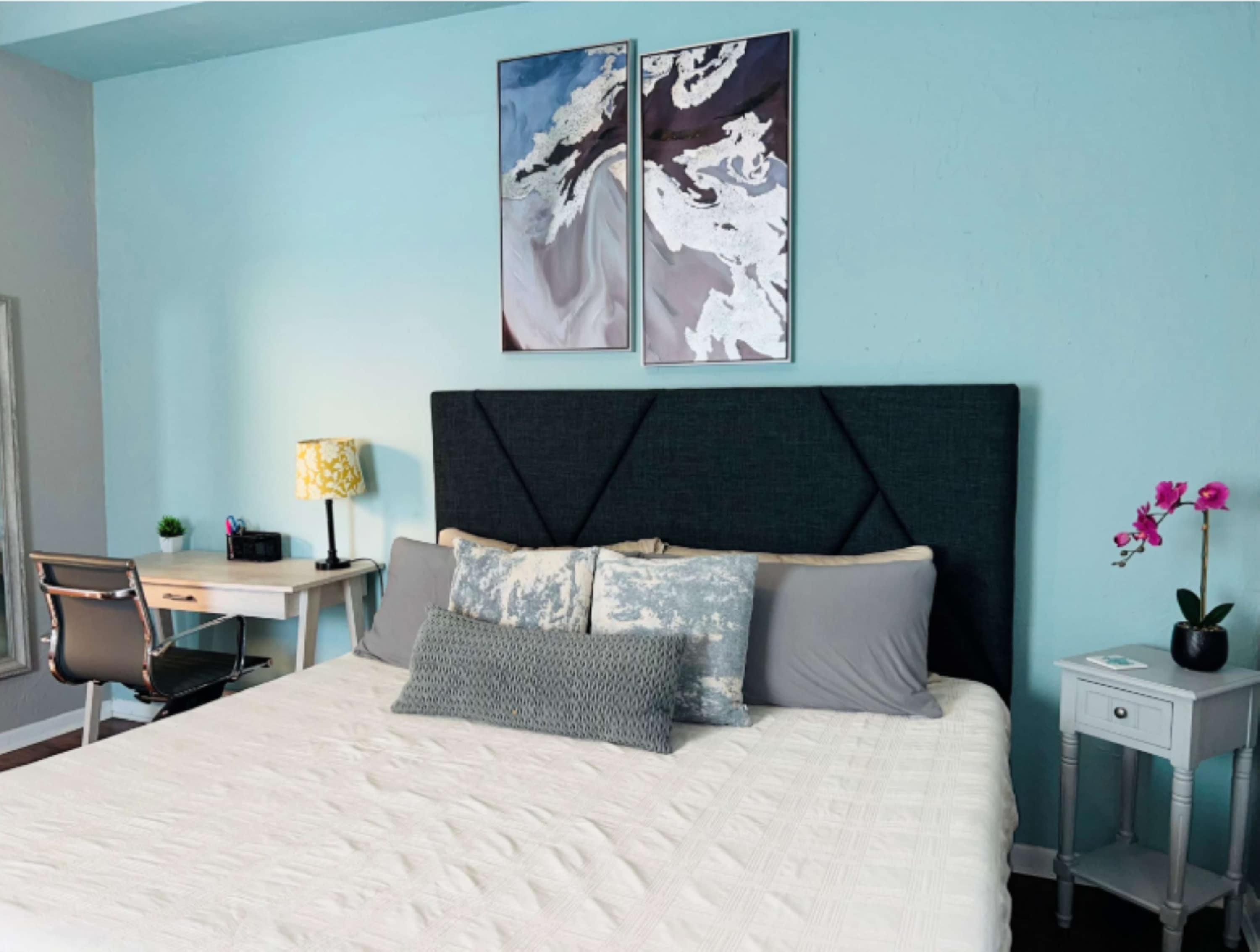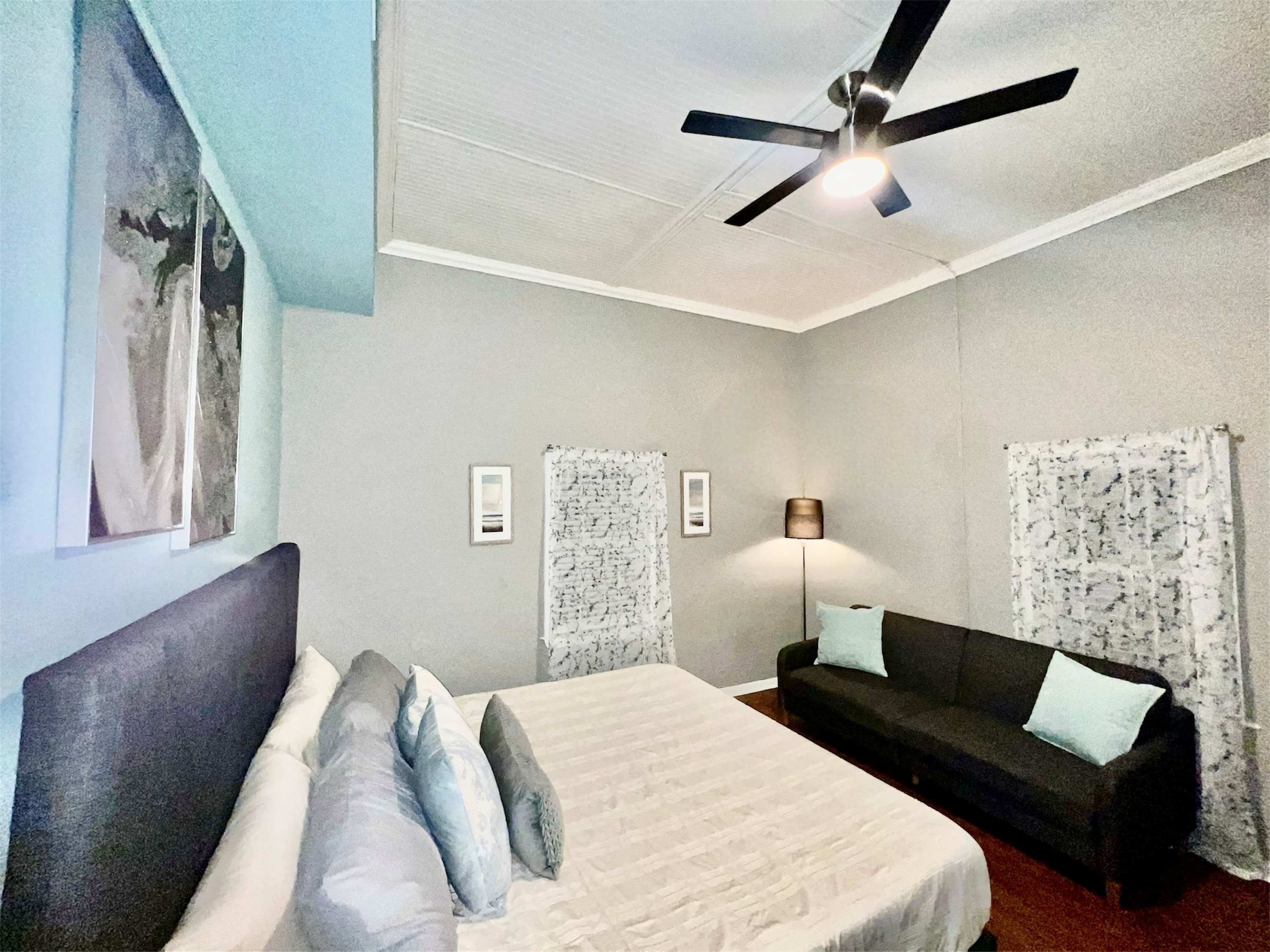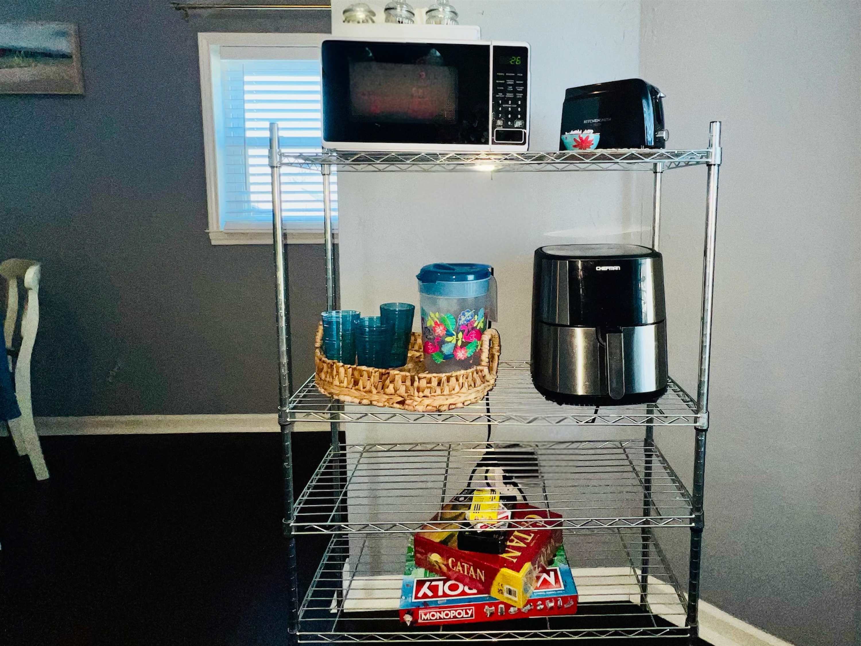 Upstairs, Unit B offers a comfortable studio-style hideaway—perfect for additional guests or couples who want a bit more independence. Unwind on the couch with a favorite show on the smart TV, enjoy a game night, or prepare casual meals and snacks in the convenient kitchenette with a fridge, microwave, air fryer, and toaster. A dining table for four makes it easy to gather and plan the next day’s adventures.